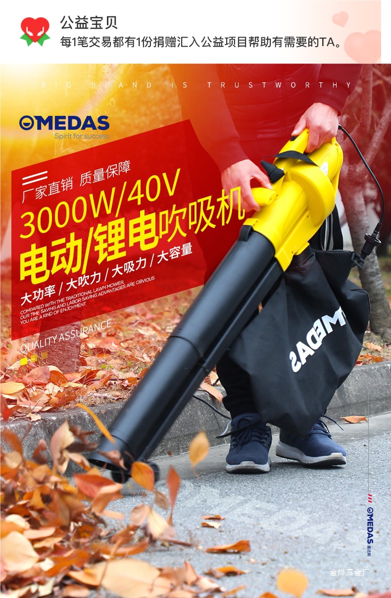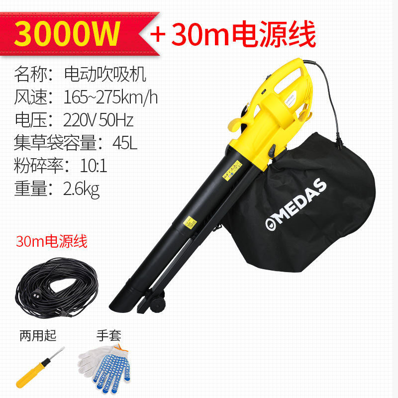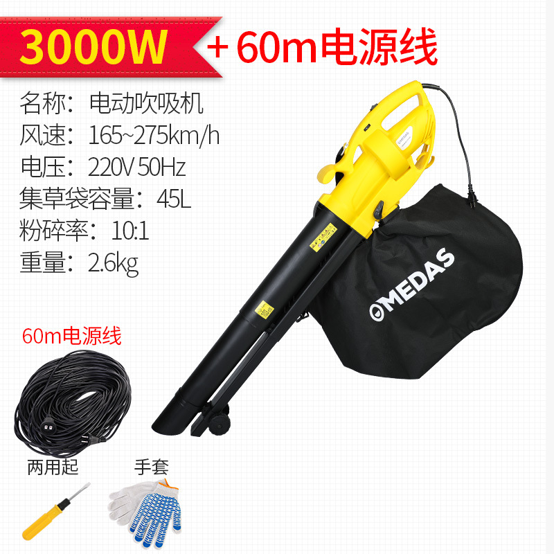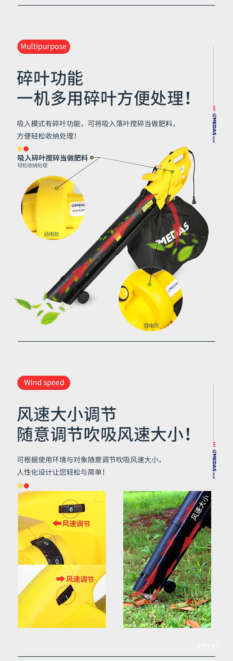 Электрический вентилятор и всасывающая машина MEDAS. Измельчитель листьев. Дует и всасывает травяные листья и листья, которые падают. Дует и всасывает измельченные листья. Высокомощное удаление пыли. Jinye.