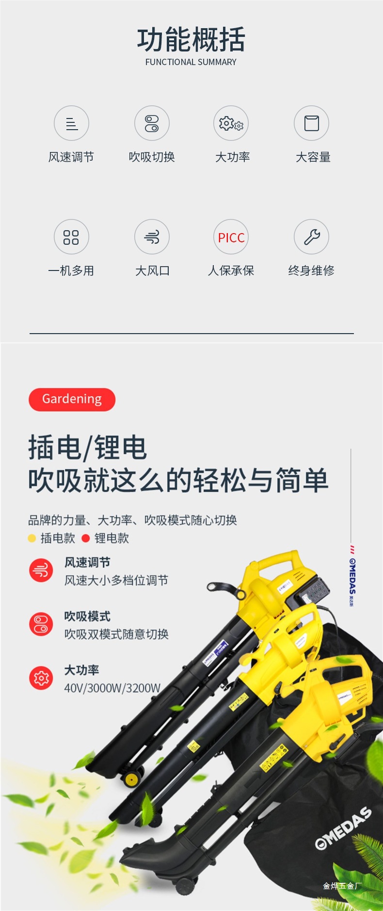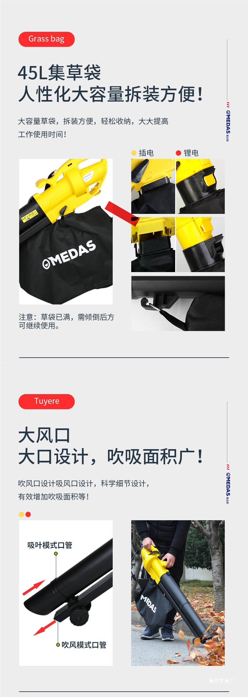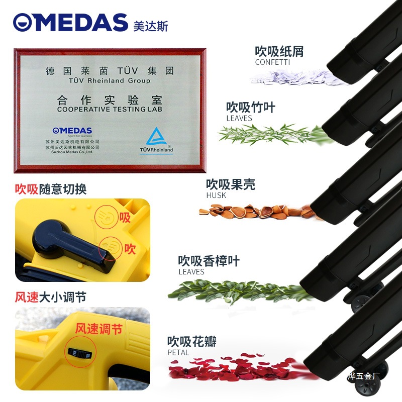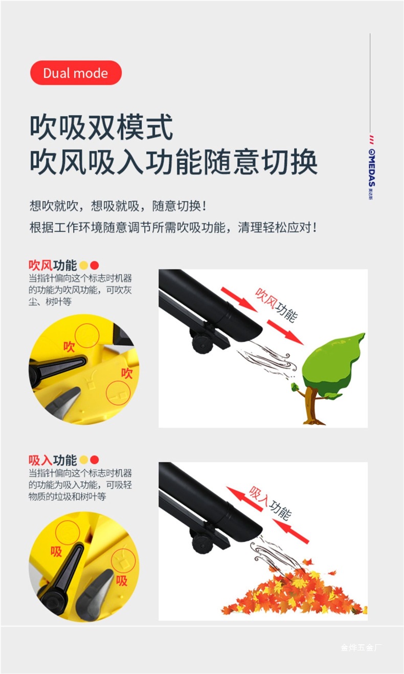 Электрический вентилятор и всасывающая машина MEDAS. Измельчитель листьев. Дует и всасывает травяные листья и листья, которые падают. Дует и всасывает измельченные листья. Высокомощное удаление пыли. Jinye.