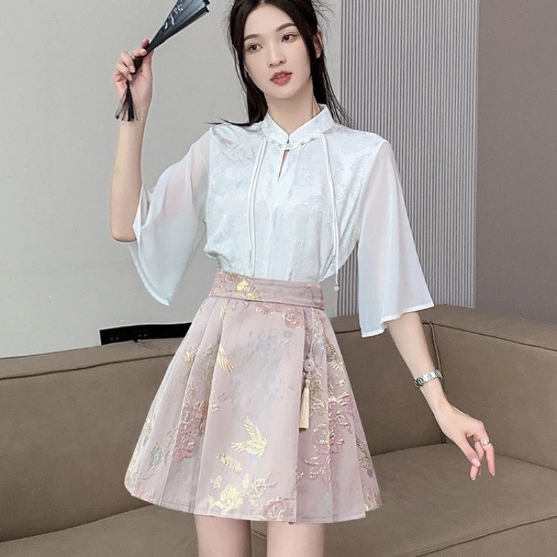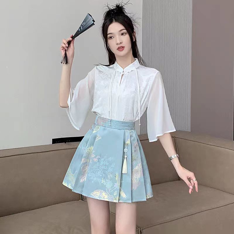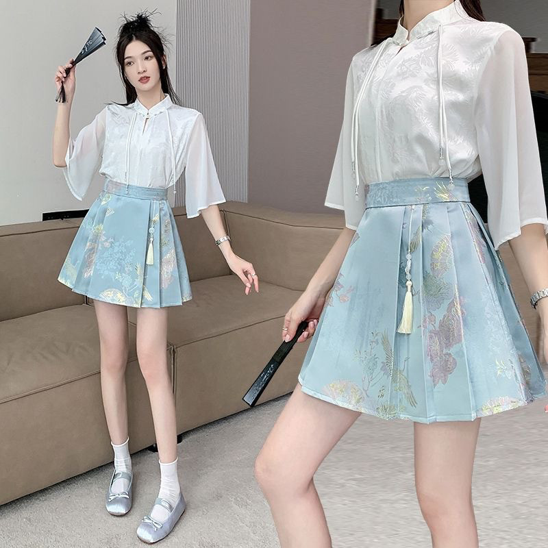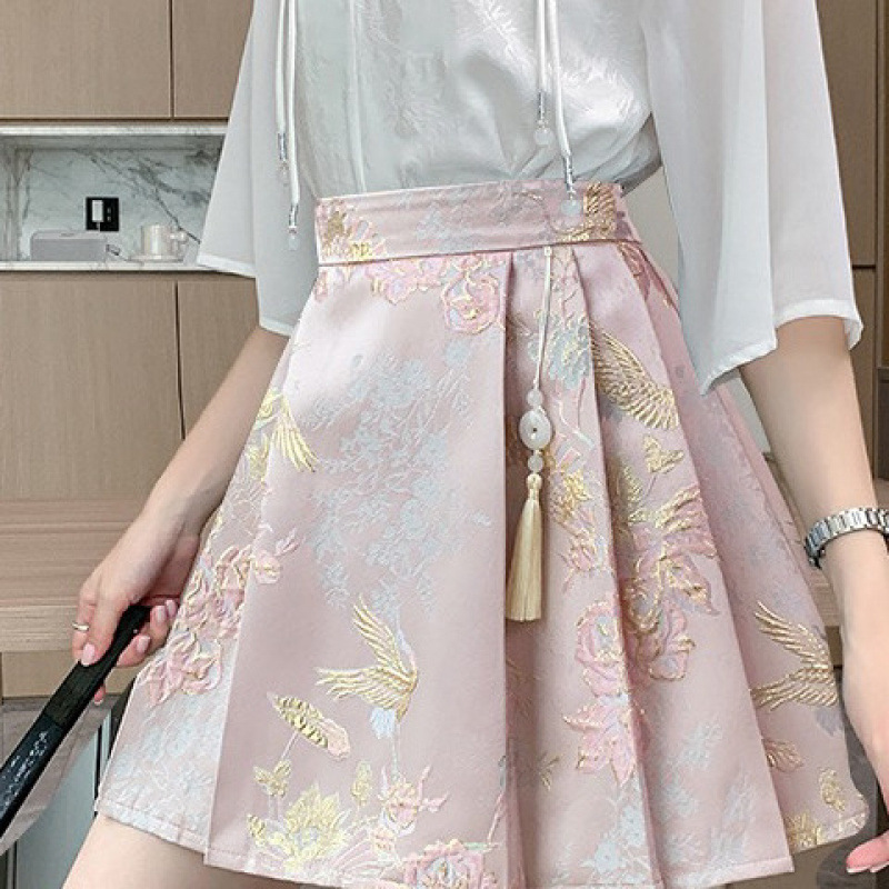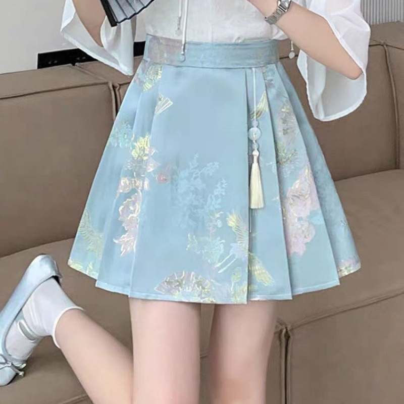 Новая юбка в древнем стиле в китайском стиле для женщин, утягивающая юбка с высокой талией в китайском стиле, весенне-летняя новая жаккардовая плиссированная юбка