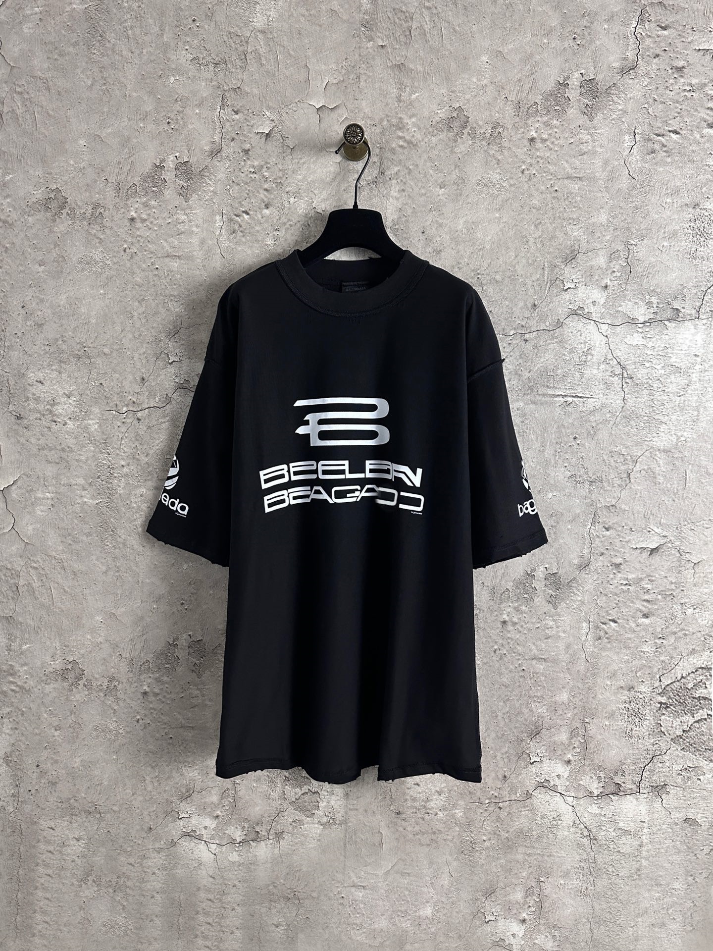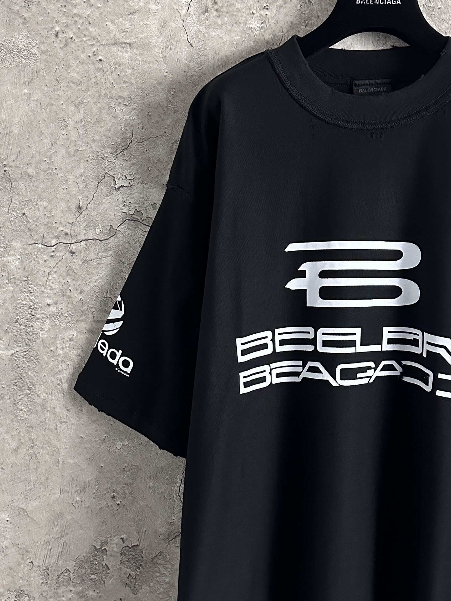 Правильная версия высококачественной футболки B бренда 25SS новой серии с обратной строчкой и принтом логотипа с короткими рукавами 2