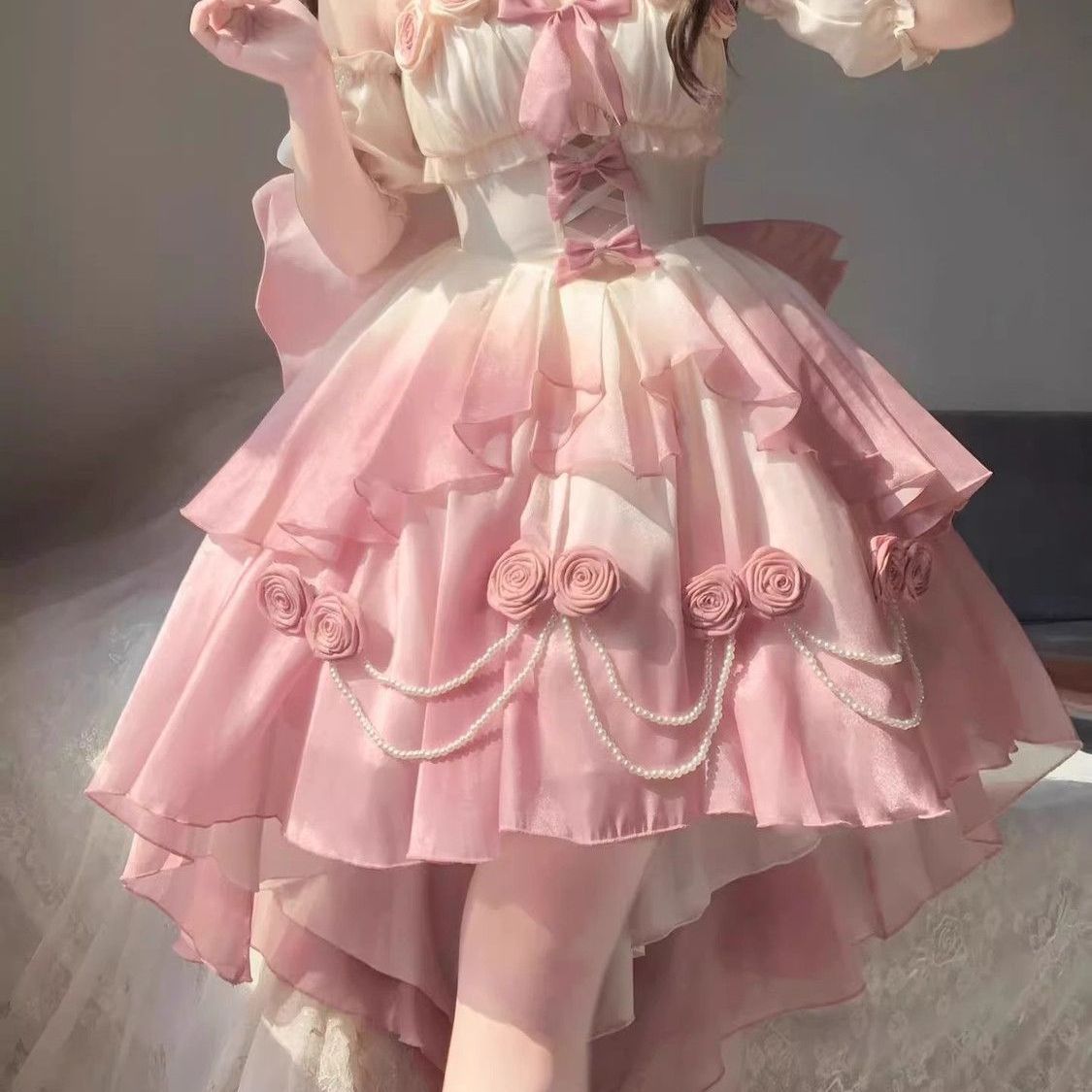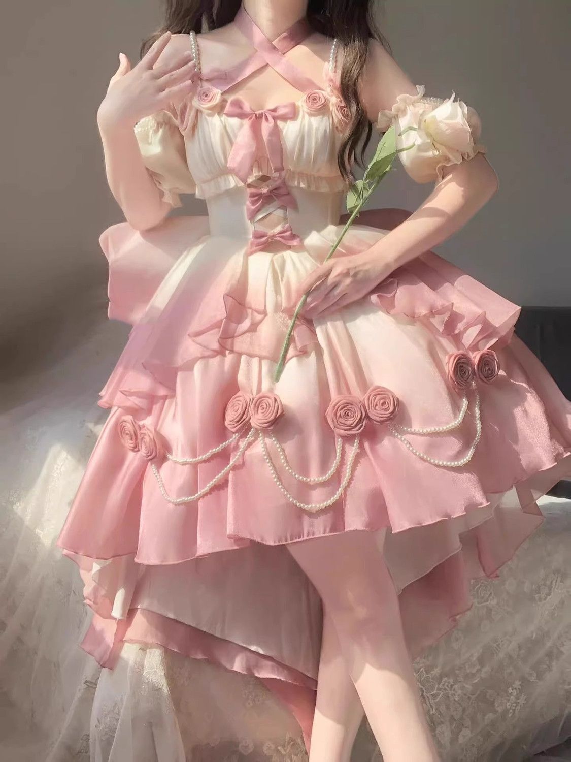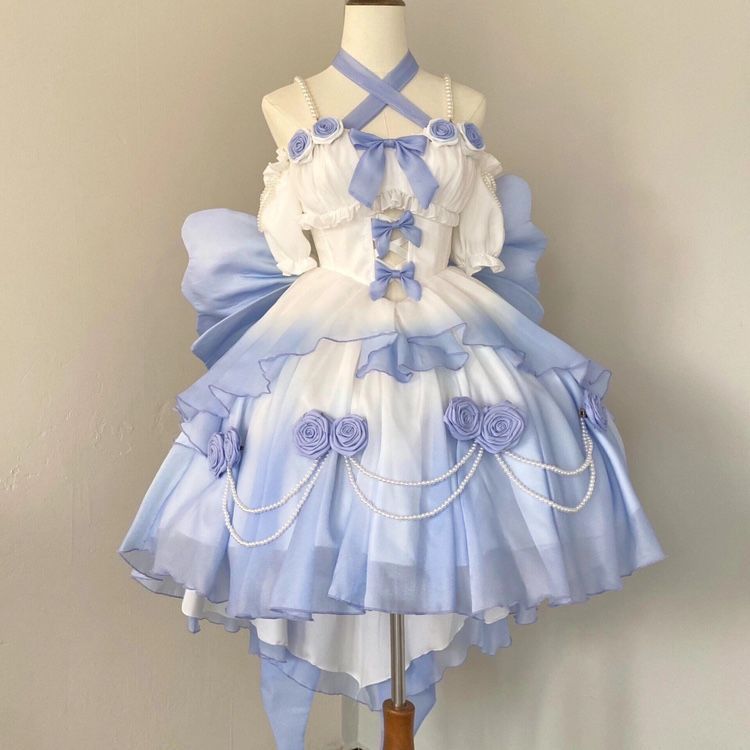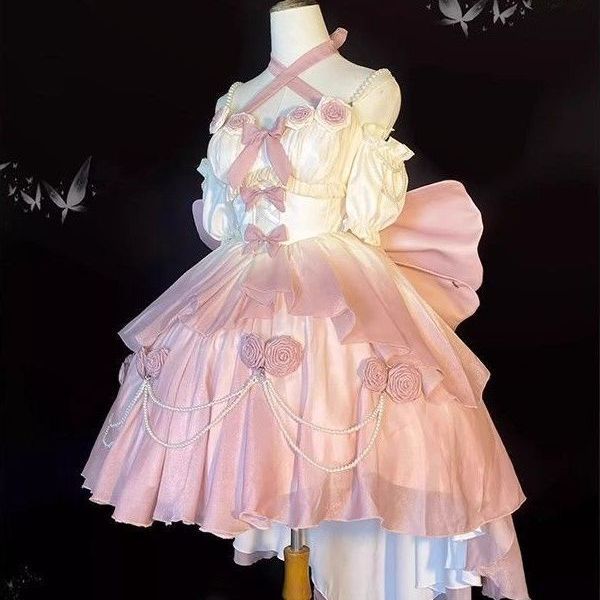 Аутентичное платье Лолиты [Бог любви] Великолепное и элегантное свадебное платье Лолиты, короткое спереди и длинное сзади.
