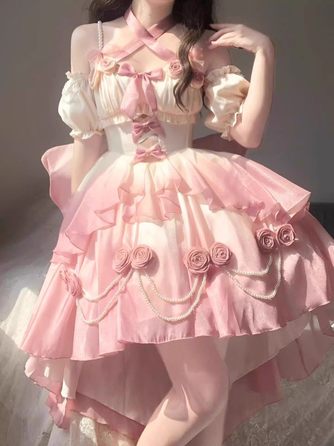 [Набор из семи предметов] Градиент розового цвета + плечевой ремень с цветочной таблеткой и рукавами-бабочками с цепочкой из жемчуга.; [Набор из семи предметов] Градиентный синий цвет + плечевой ремень, рукава-бабочки в виде таблеток с цветком и цепочкой из жемчуга.; телепатия