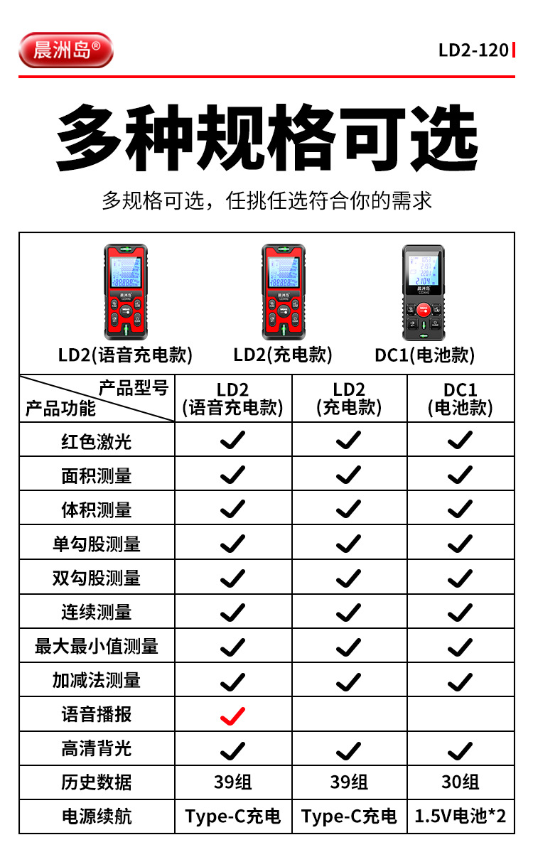 Дальномер DC1 китайский (модель с батарейкой); Дальномер DC1 Английский (модель с батареей); Дальномер LD2 китайский (перезаряжаемая модель); Дальномер LD2 английский (перезаряжаемая модель); Дальномер LD2 китайский голос (перезаряжаемая модель)
