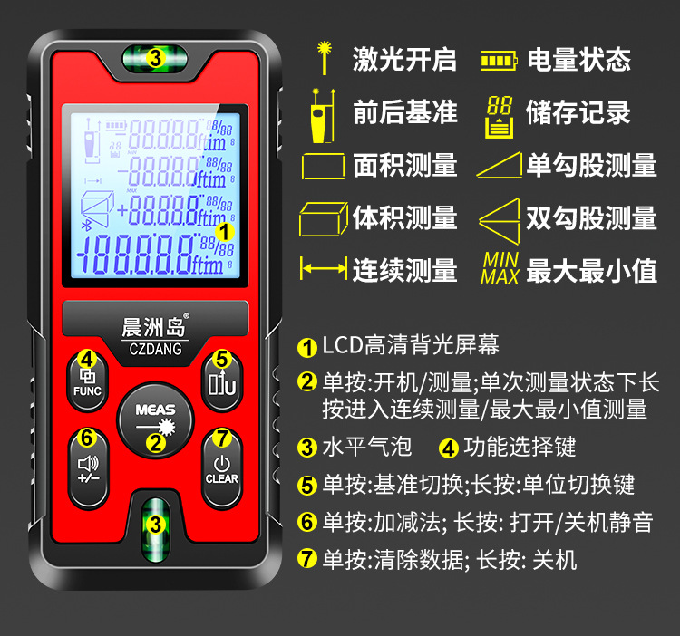 Ручной инфракрасный электронный дальномер для измерений внутри и снаружи помещений, лазерный дальномер для измерения уровня в помещении, перезаряжаемый лазерный дальномер для измерения больших расстояний