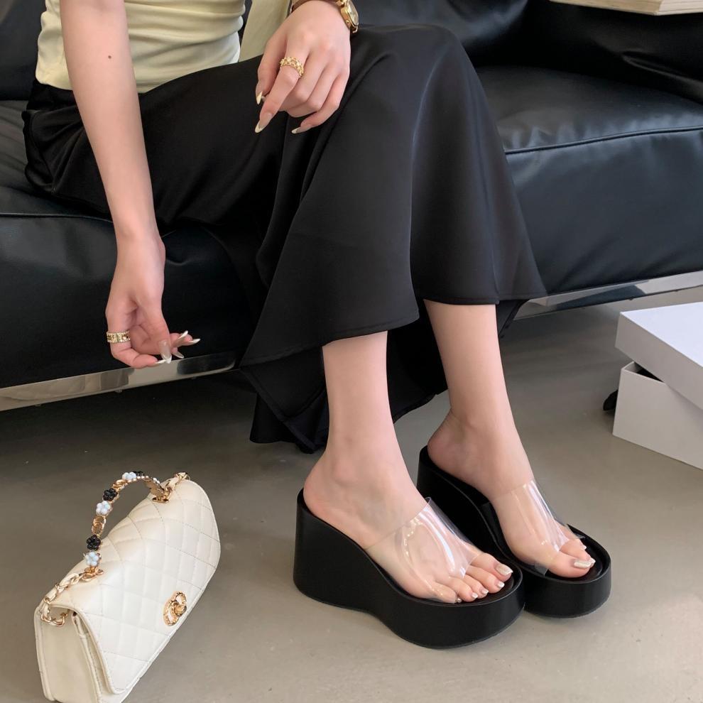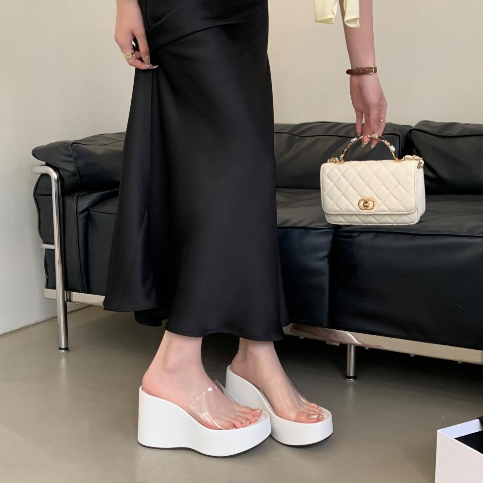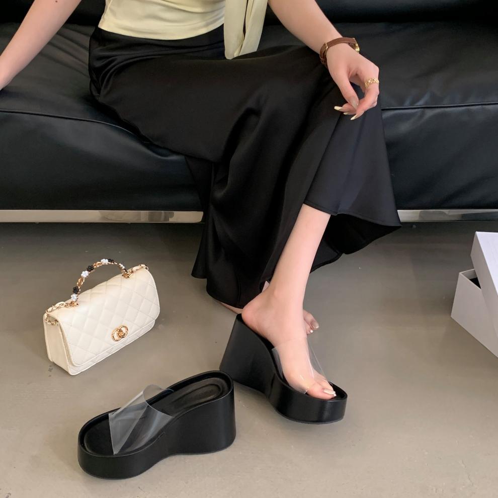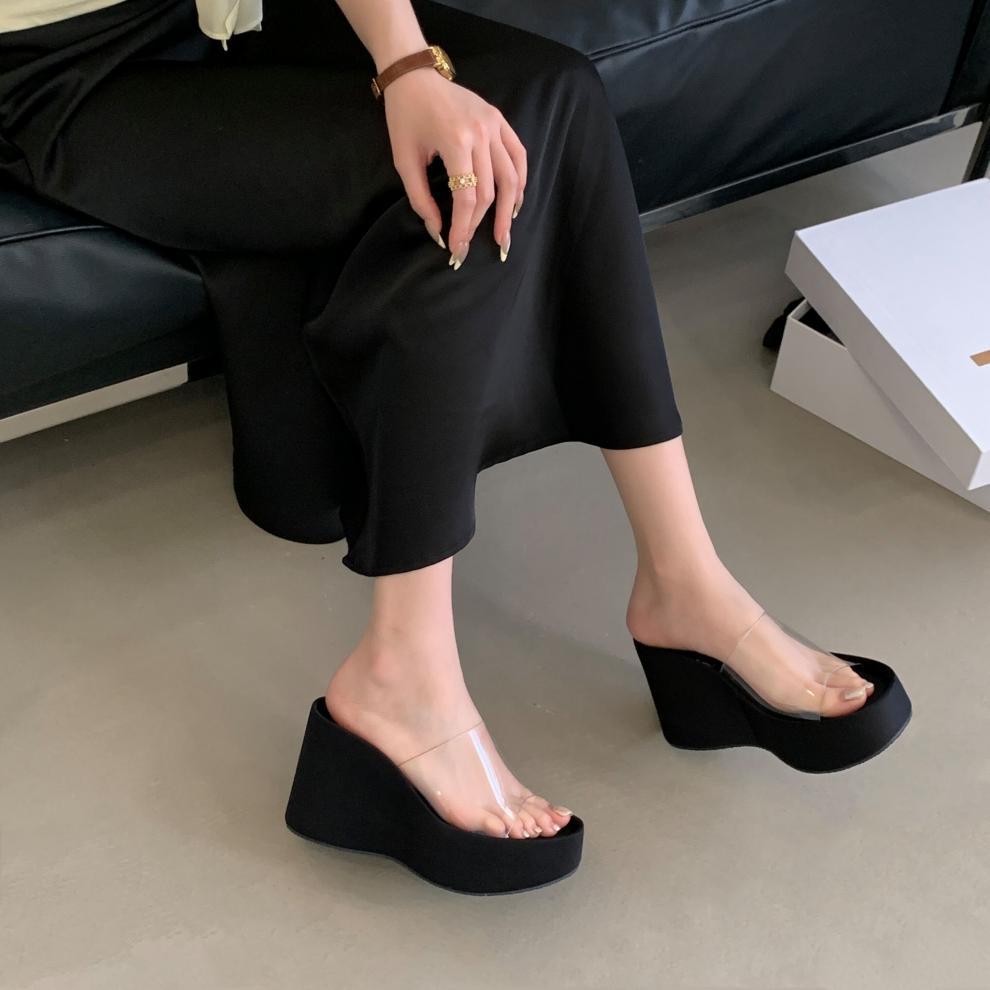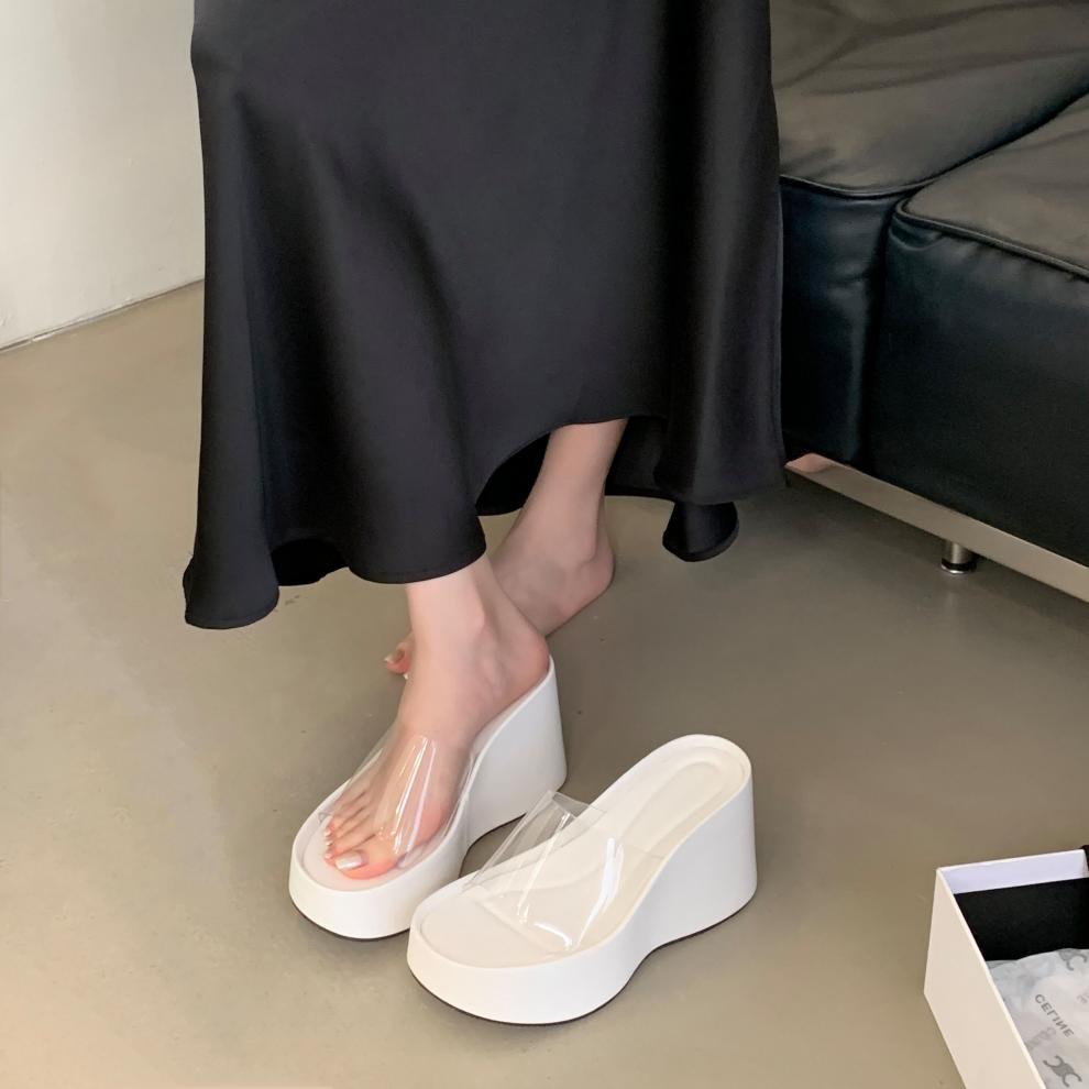 2025 модные женские тапочки, модная верхняя одежда, серебряные прозрачные шлепанцы, туфли на танкетке, свободные высокие сандалии на толстой подошве