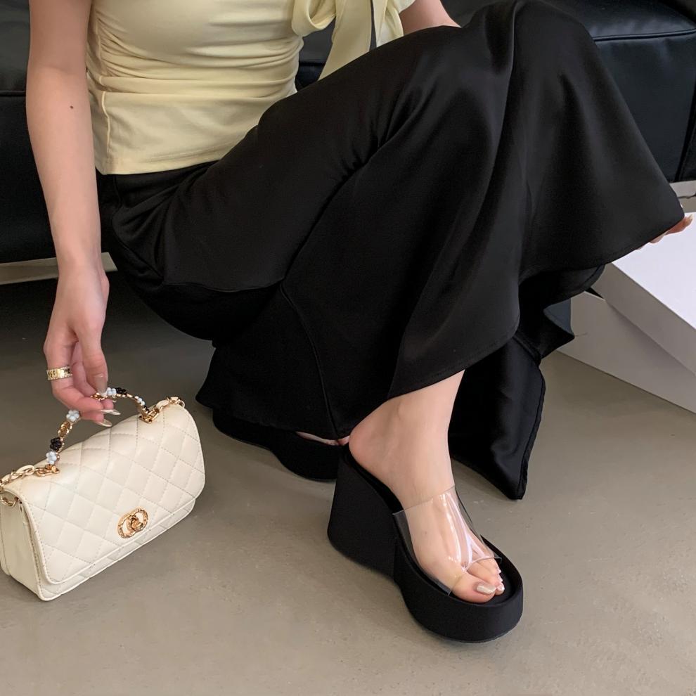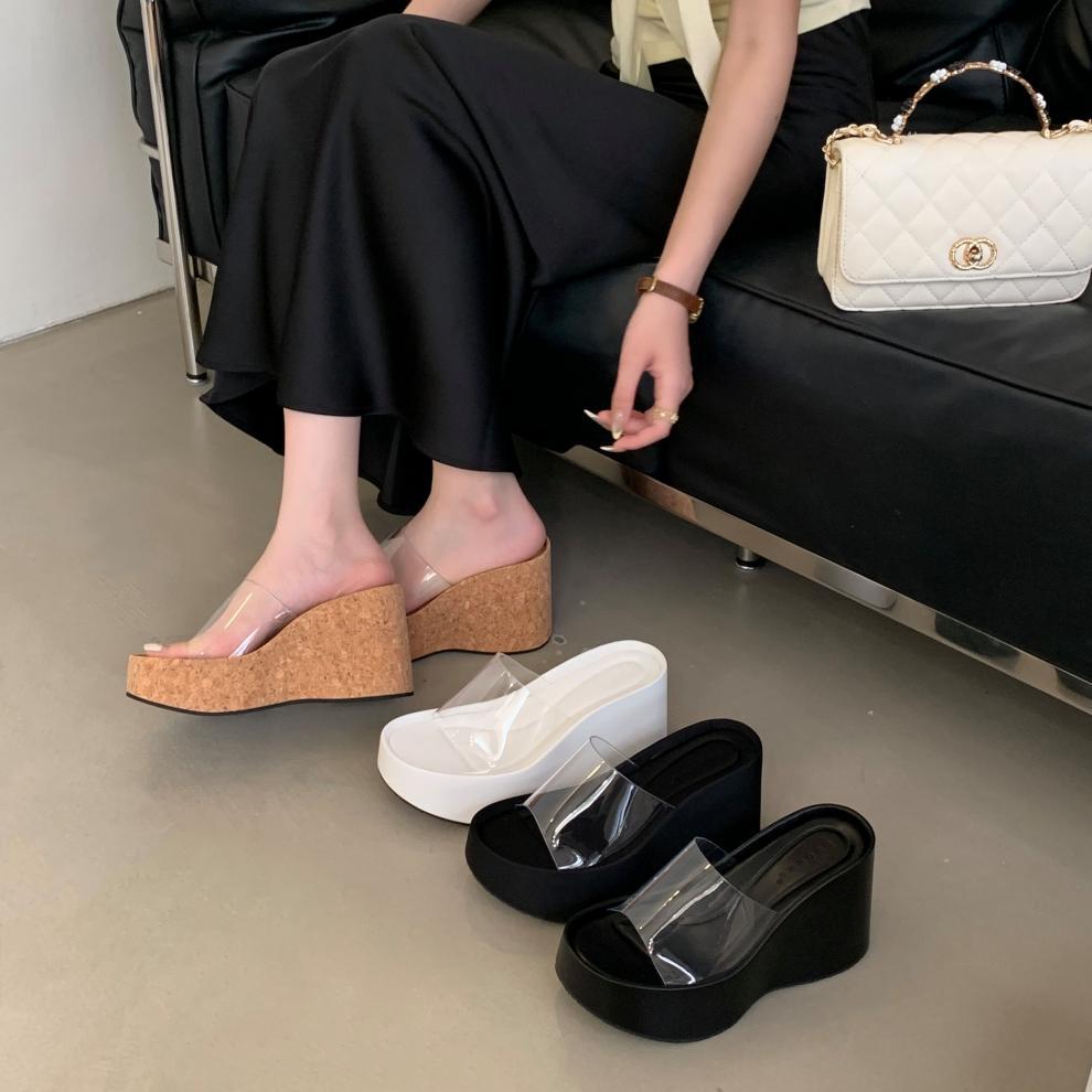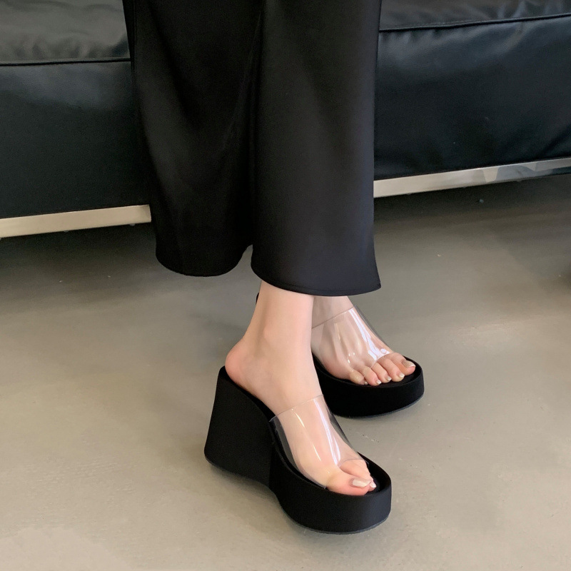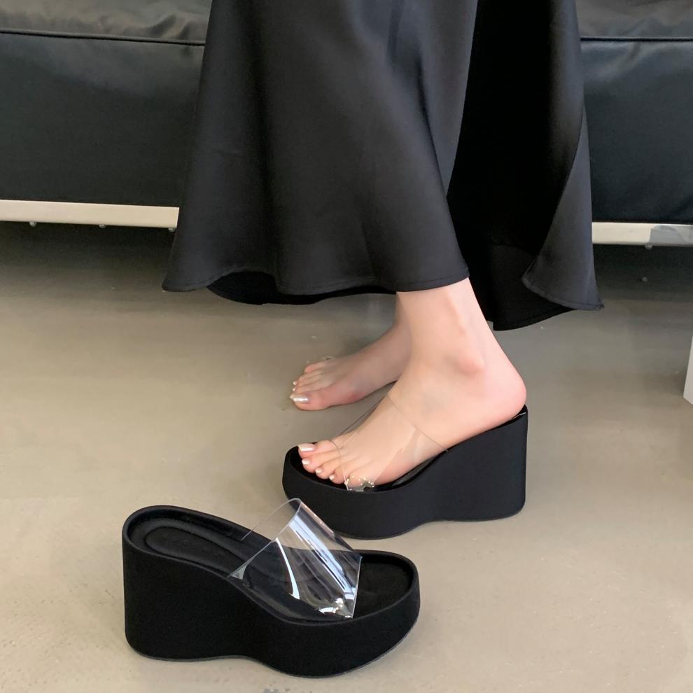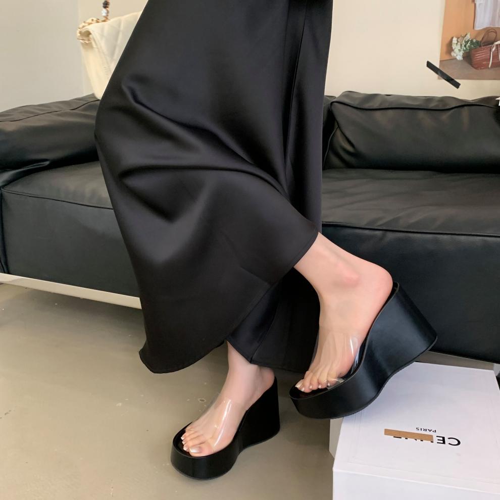 2025 модные женские тапочки, модная верхняя одежда, серебряные прозрачные шлепанцы, туфли на танкетке, свободные высокие сандалии на толстой подошве