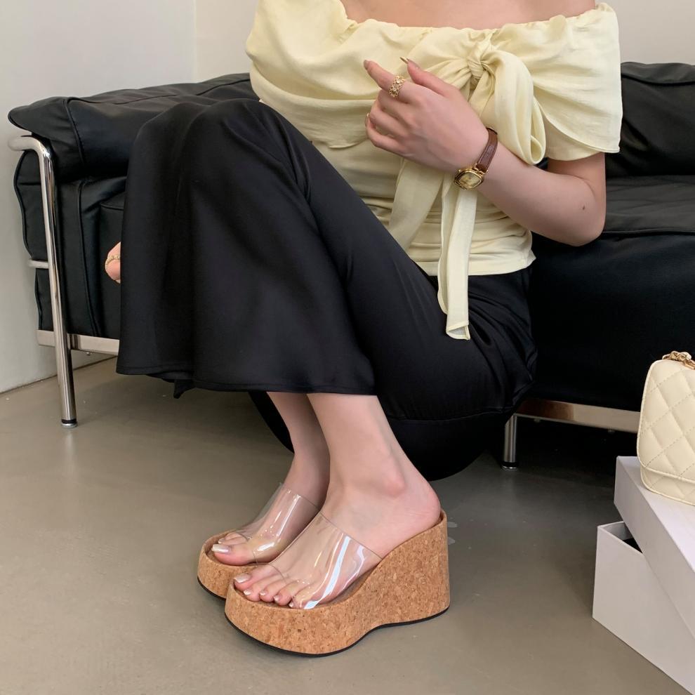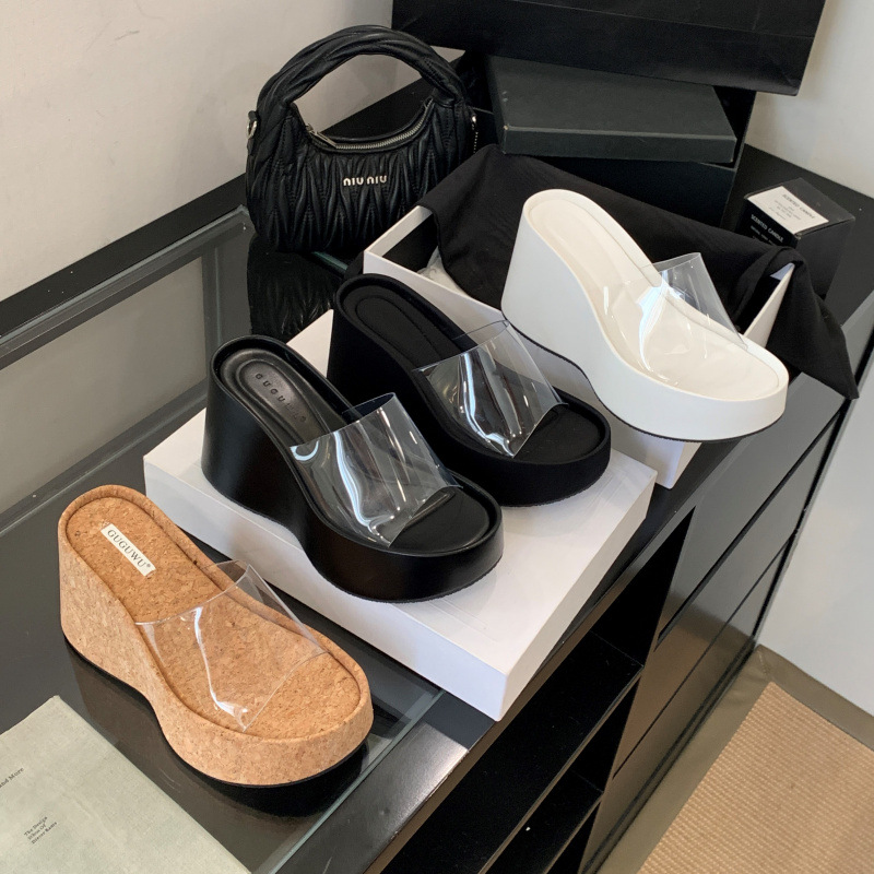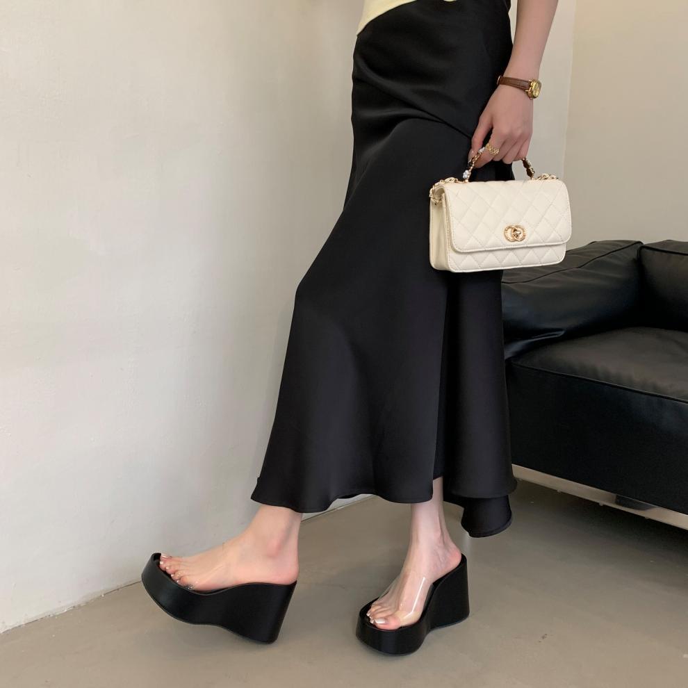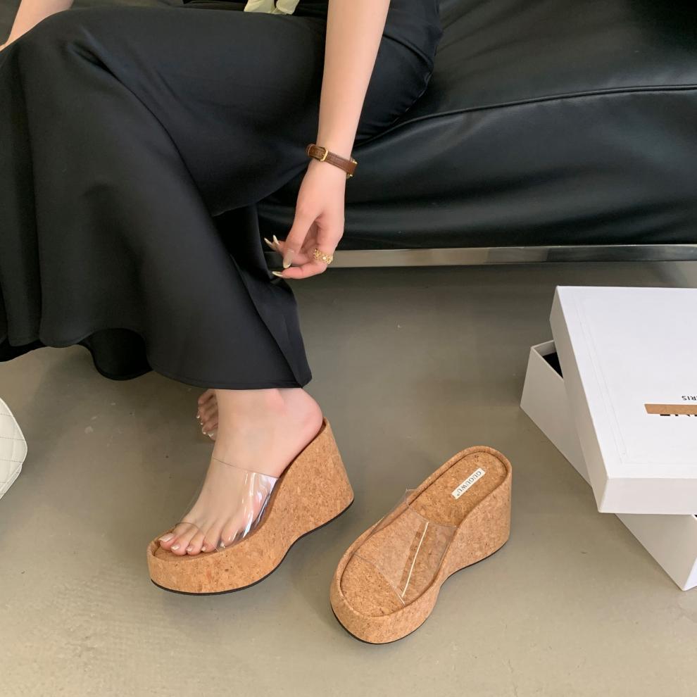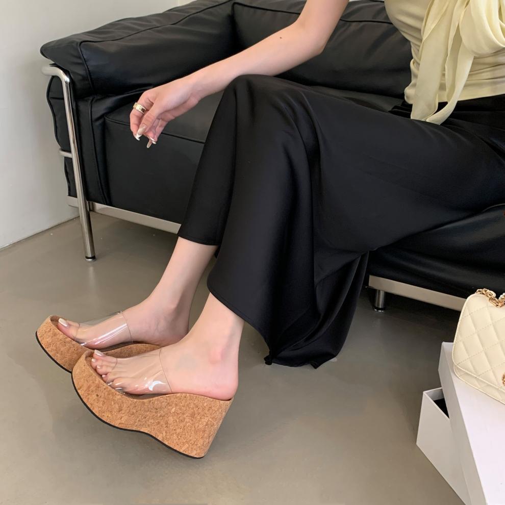 2025 модные женские тапочки, модная верхняя одежда, серебряные прозрачные шлепанцы, туфли на танкетке, свободные высокие сандалии на толстой подошве