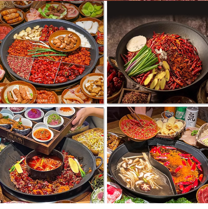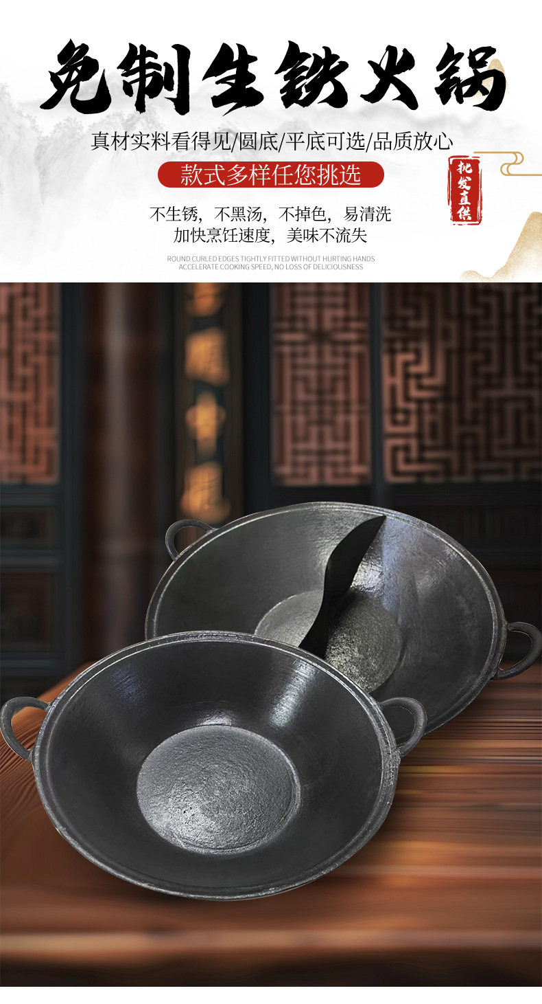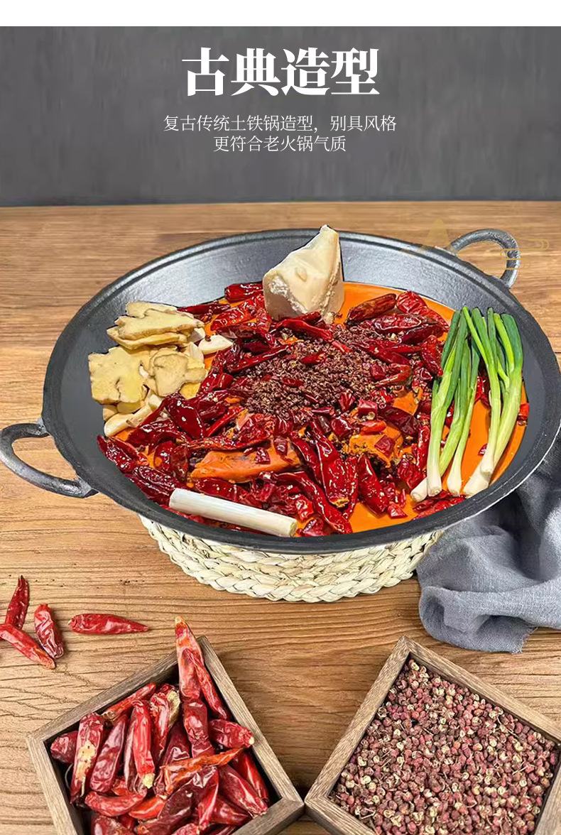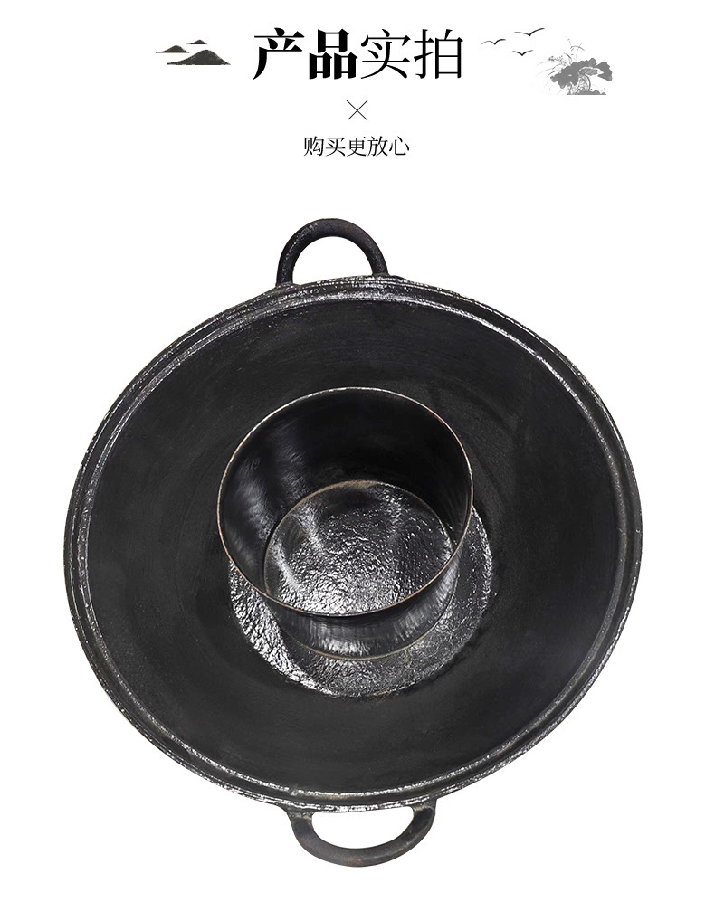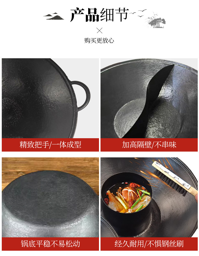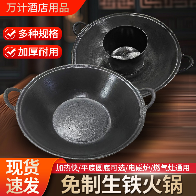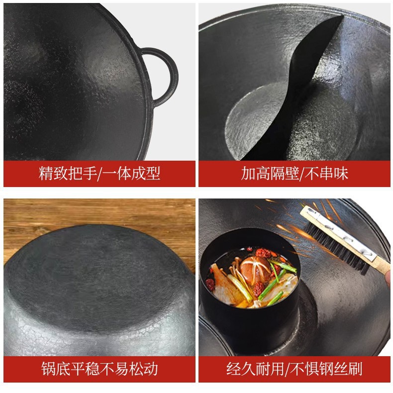 Коммерческая кастрюля с девятью сетками, плоское дно, круглое дно, с двумя ручками, уличный киоск Чунцин, старый ресторан-горшок, чаша Инь-Ян, чугунная кастрюля без приготовления пищи