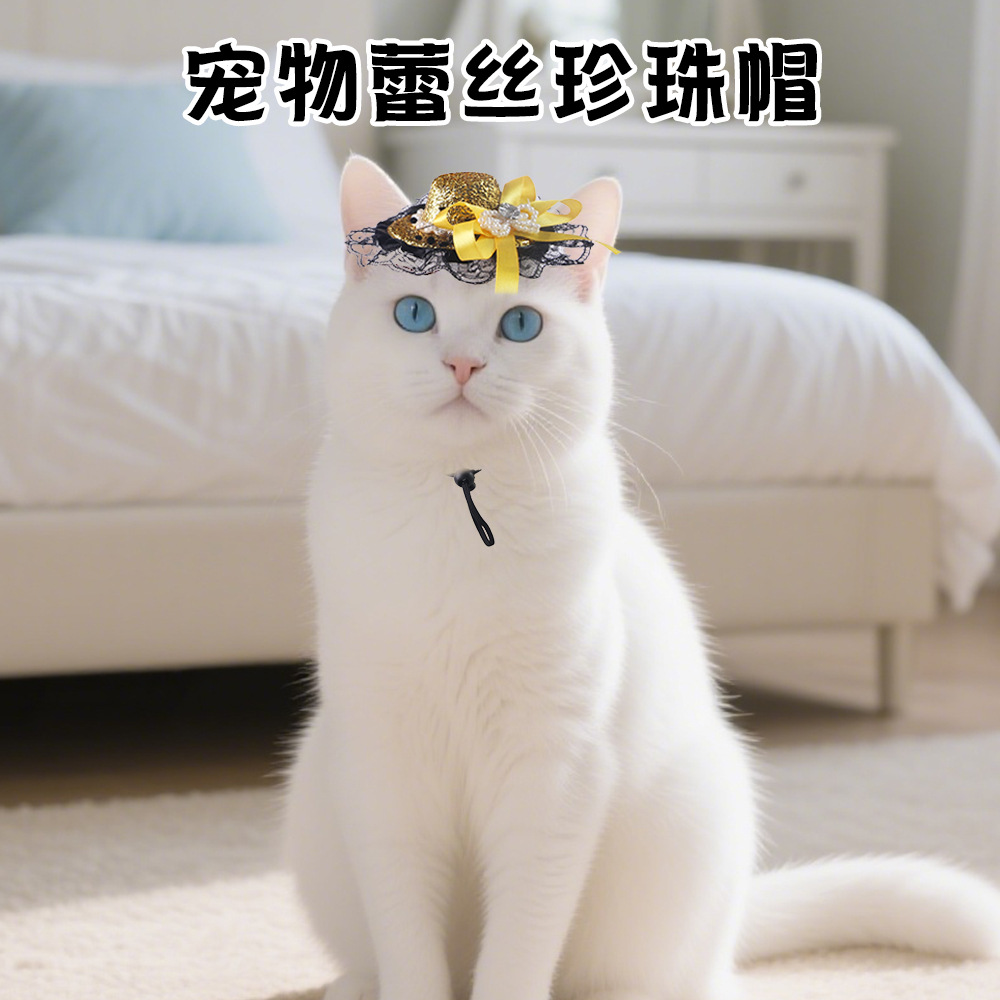 Трансграничные домашние животные кружева шляпа в британском стиле кошачья жемчужная шляпа фото одеваются кошачья шляпа с блестками