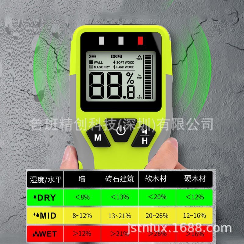 Измеритель влажности древесины, тестер влажности стен, детектор влажности картона, измеритель влажности цемента, кирпича