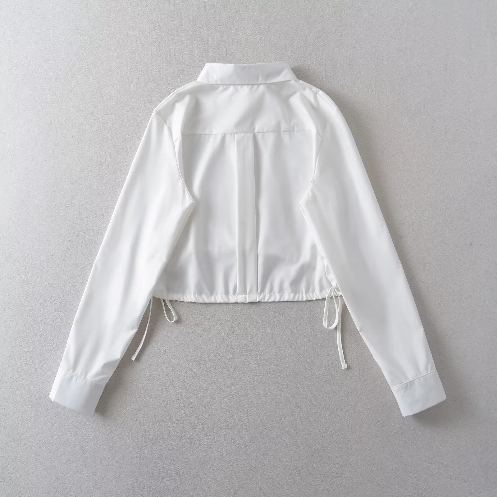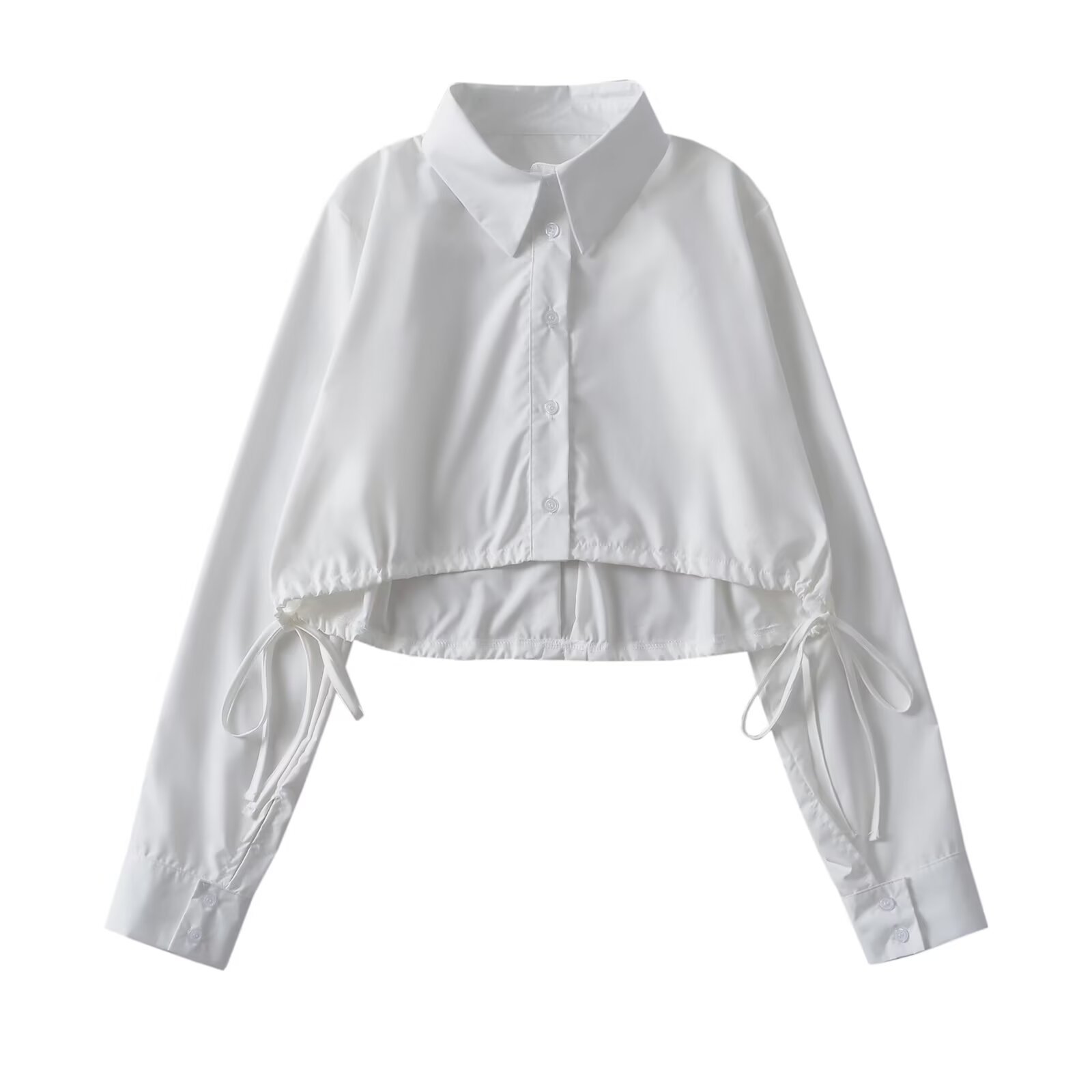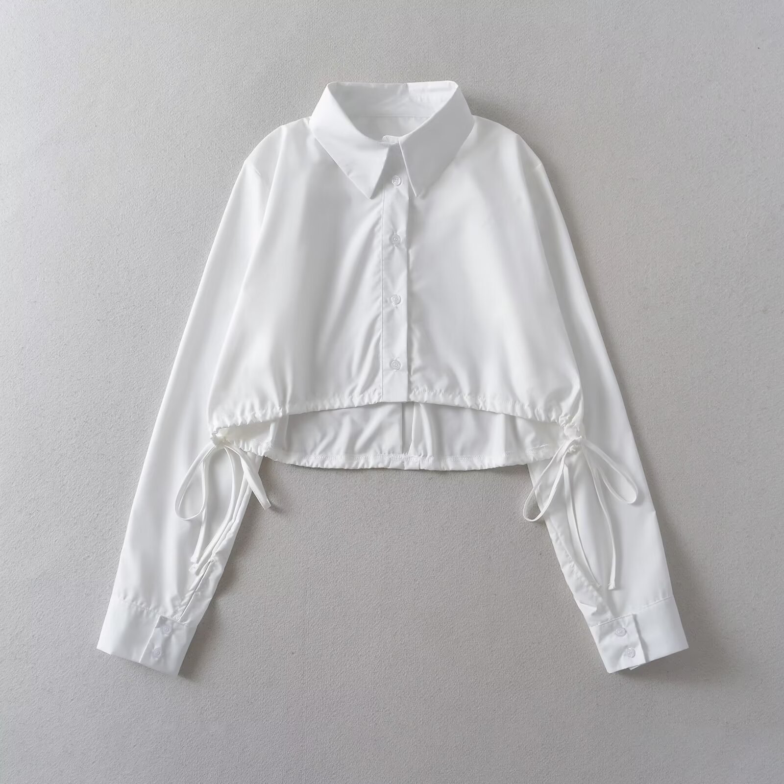 Трансграничная женская одежда оптом в европейском и американском стиле с ремешками, свободные рубашки с длинными рукавами нестандартной формы, короткие рубашки нишевого дизайна