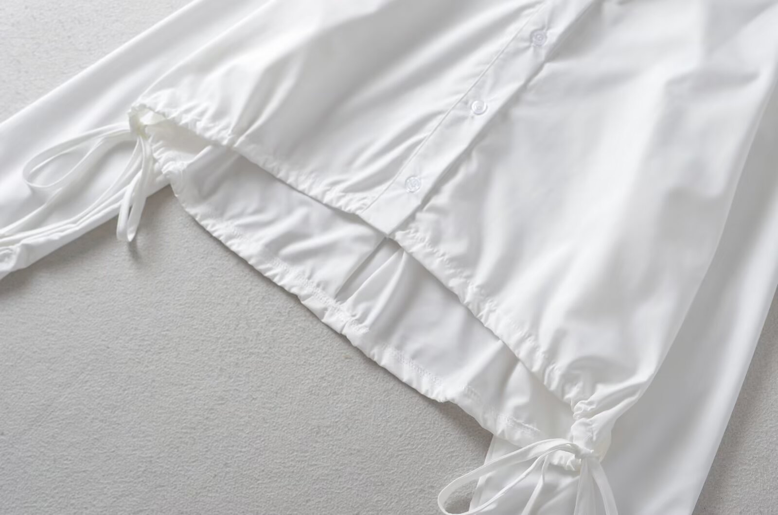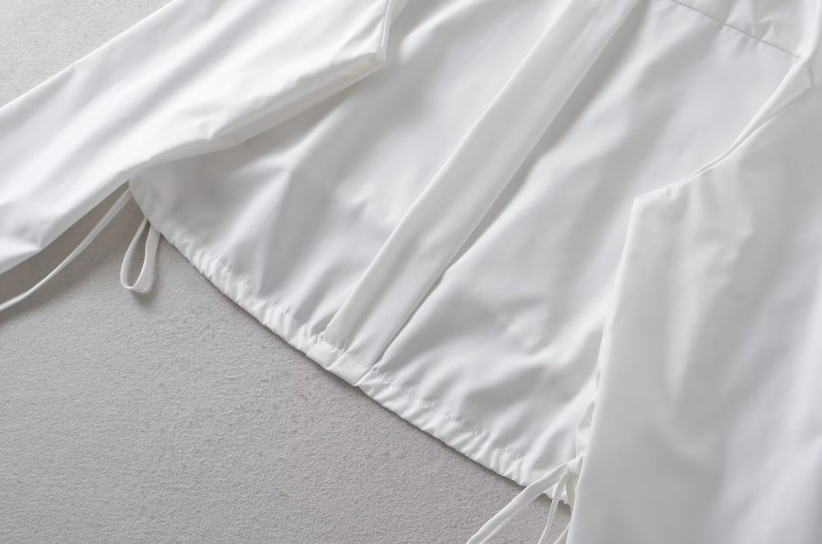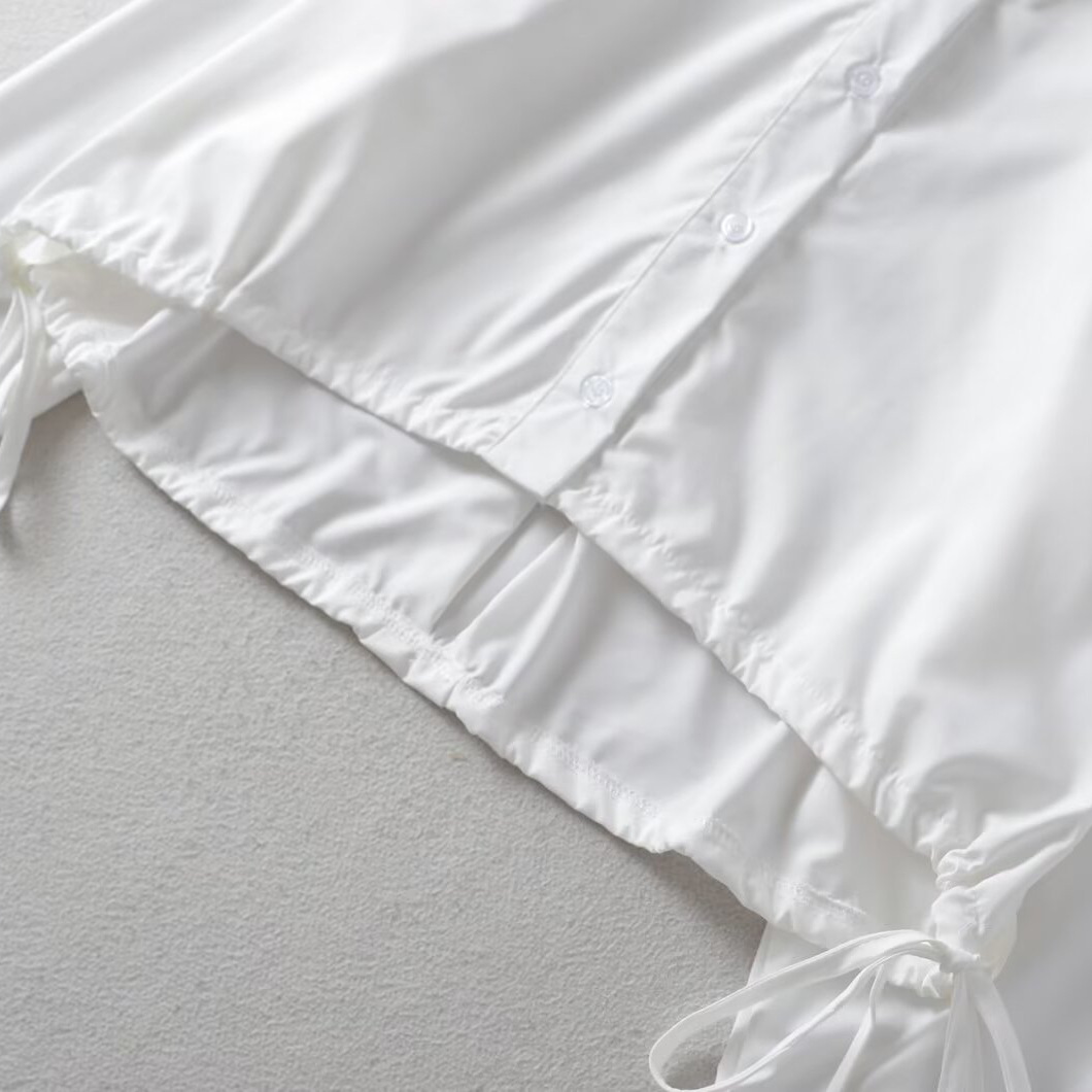 Трансграничная женская одежда оптом в европейском и американском стиле с ремешками, свободные рубашки с длинными рукавами нестандартной формы, короткие рубашки нишевого дизайна