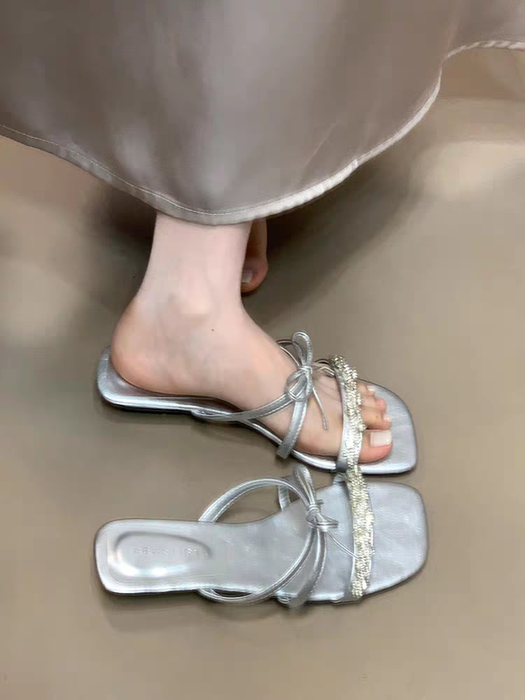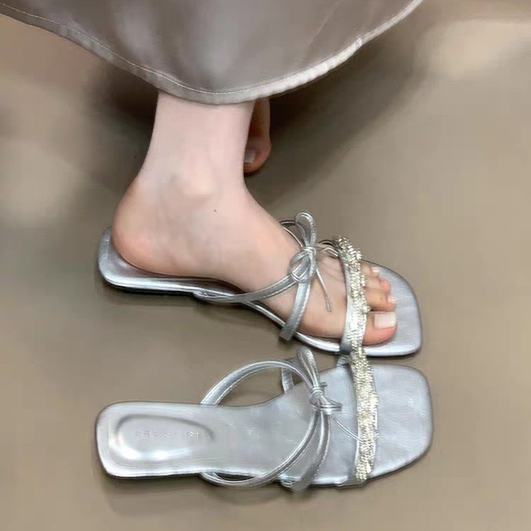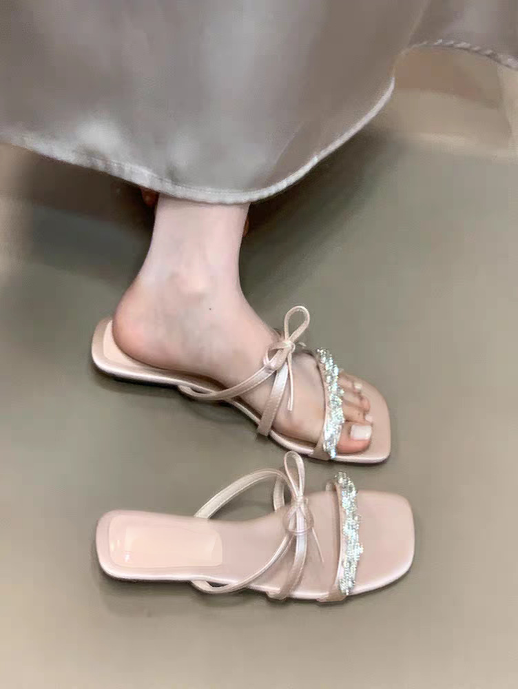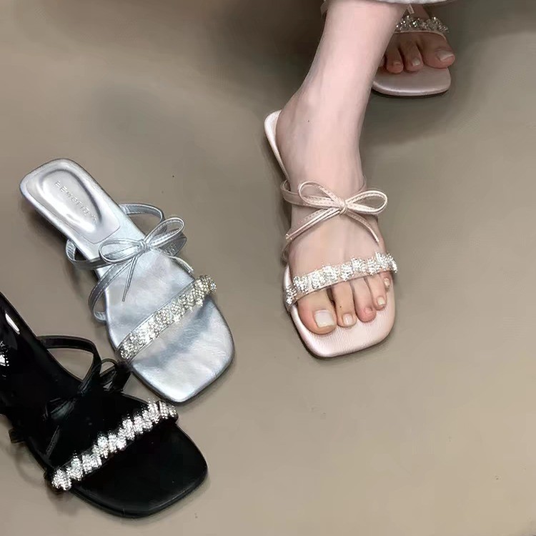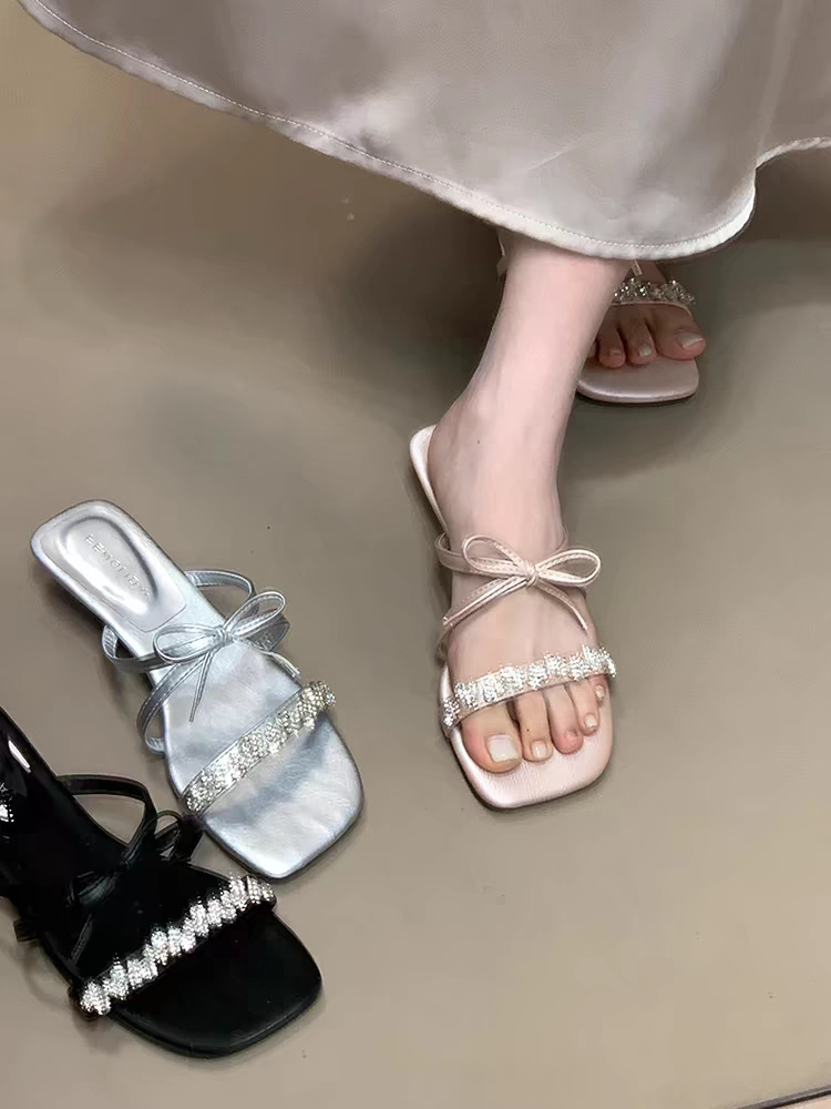 2025 года носить лук на улице сандалии тонкие шлепанцы со стразами фея новый ветер слово холодные тапочки женщина