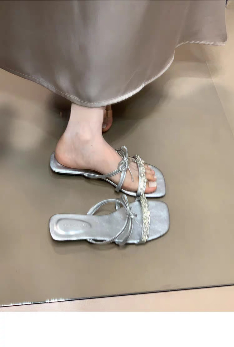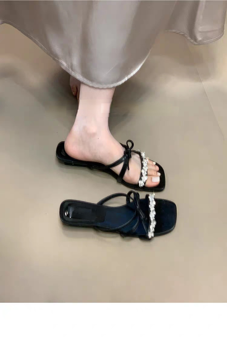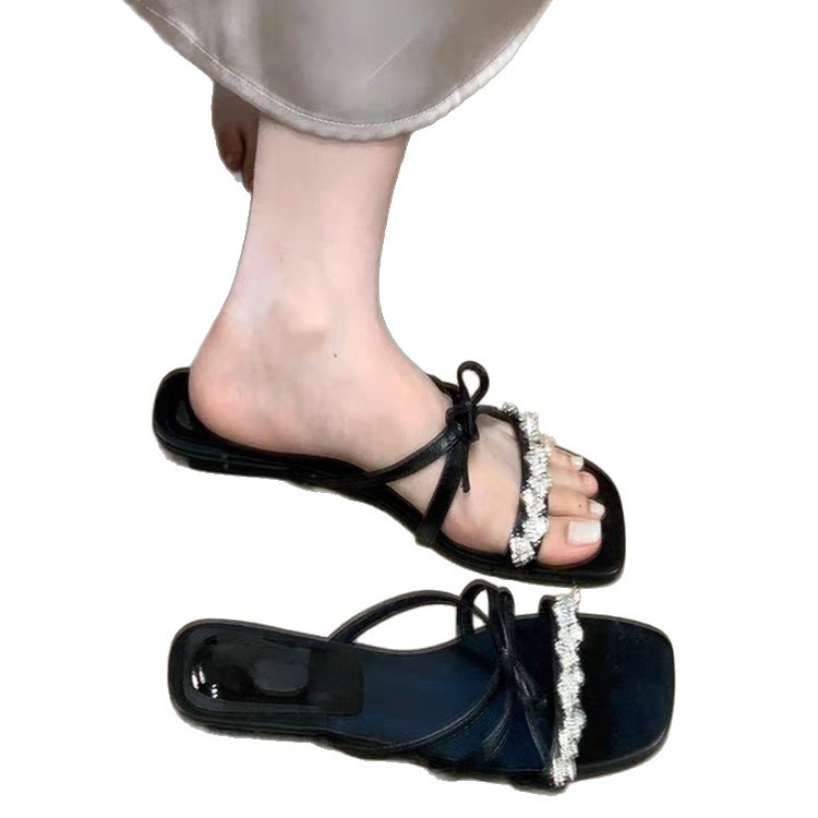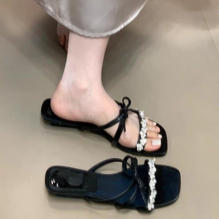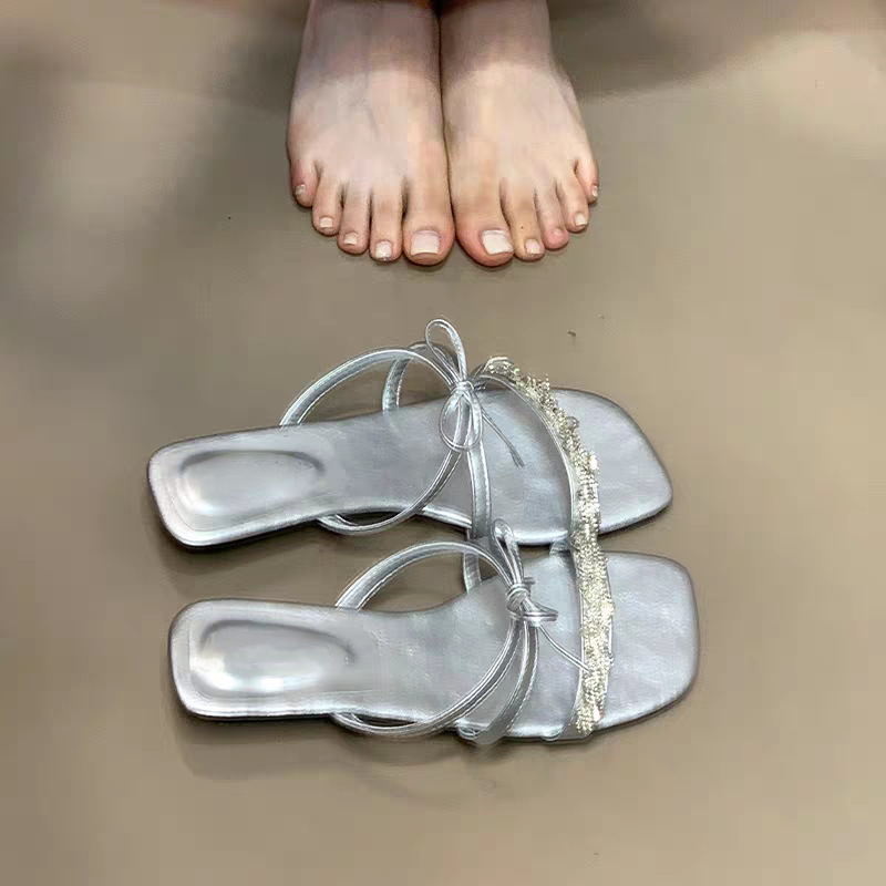 2025 года носить лук на улице сандалии тонкие шлепанцы со стразами фея новый ветер слово холодные тапочки женщина