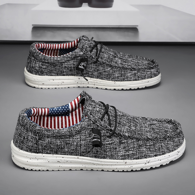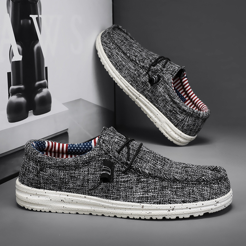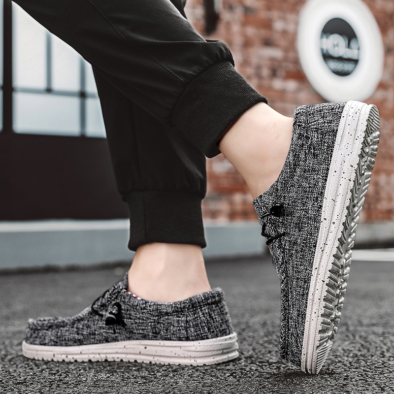 Мужская обувь большого размера, лоферы, модные повседневные модные мужские дышащие легкие легкие парусиновые туфли без шнуровки в корейском стиле.