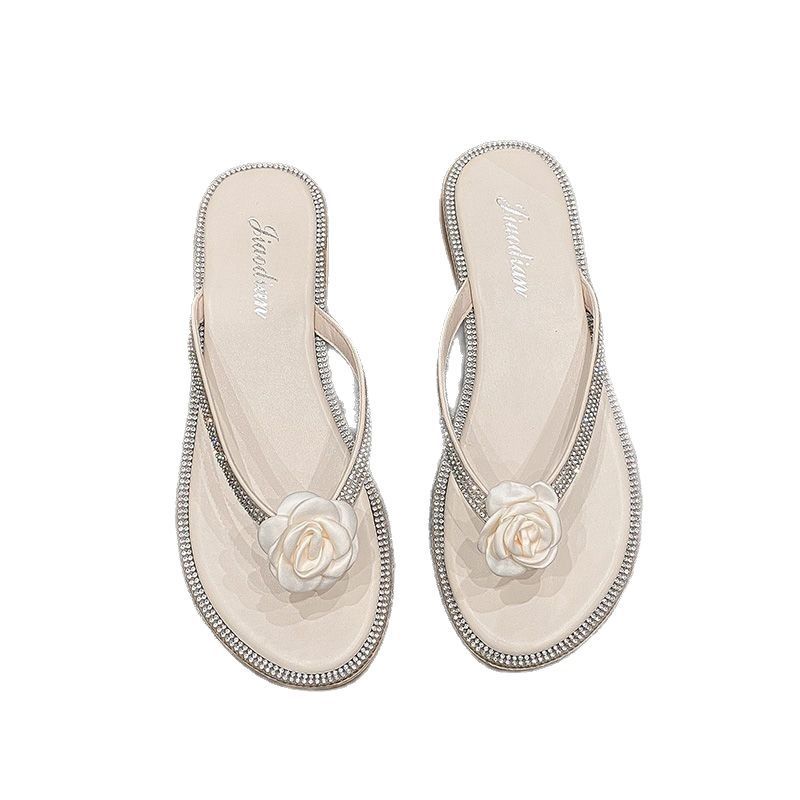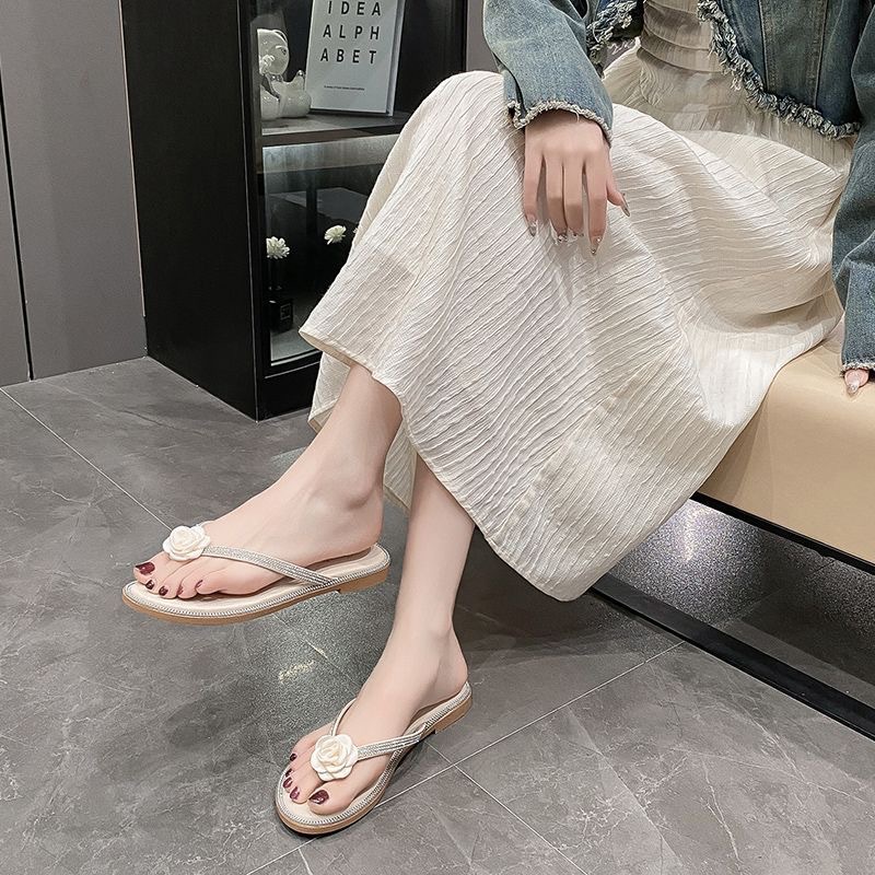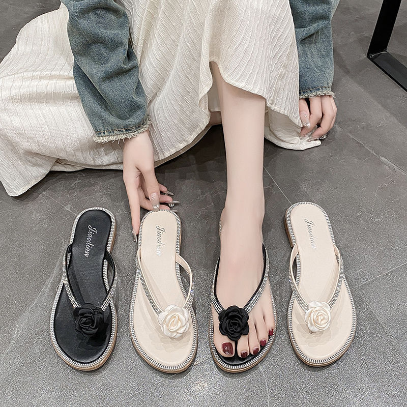 Французские сандалии 2025, новые летние мягкие с плоской подошвой, с камелиями, модные популярные шлепанцы для женщин, универсальные в стиле ins.