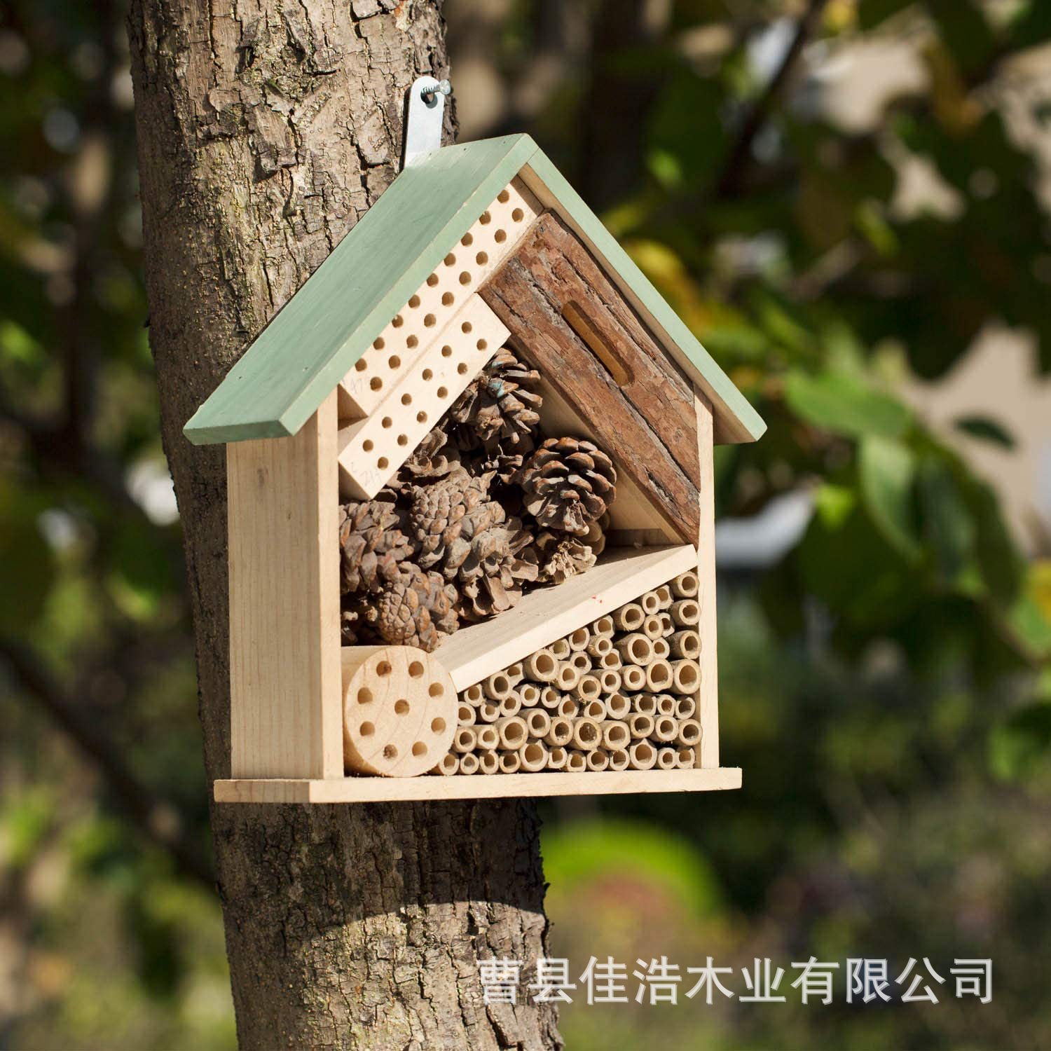 Домик для насекомых, деревянный уличный подвесной маленький домик для пчел, украшение для двора и сада, отель для насекомых, пчелиное гнездо, комплект материалов