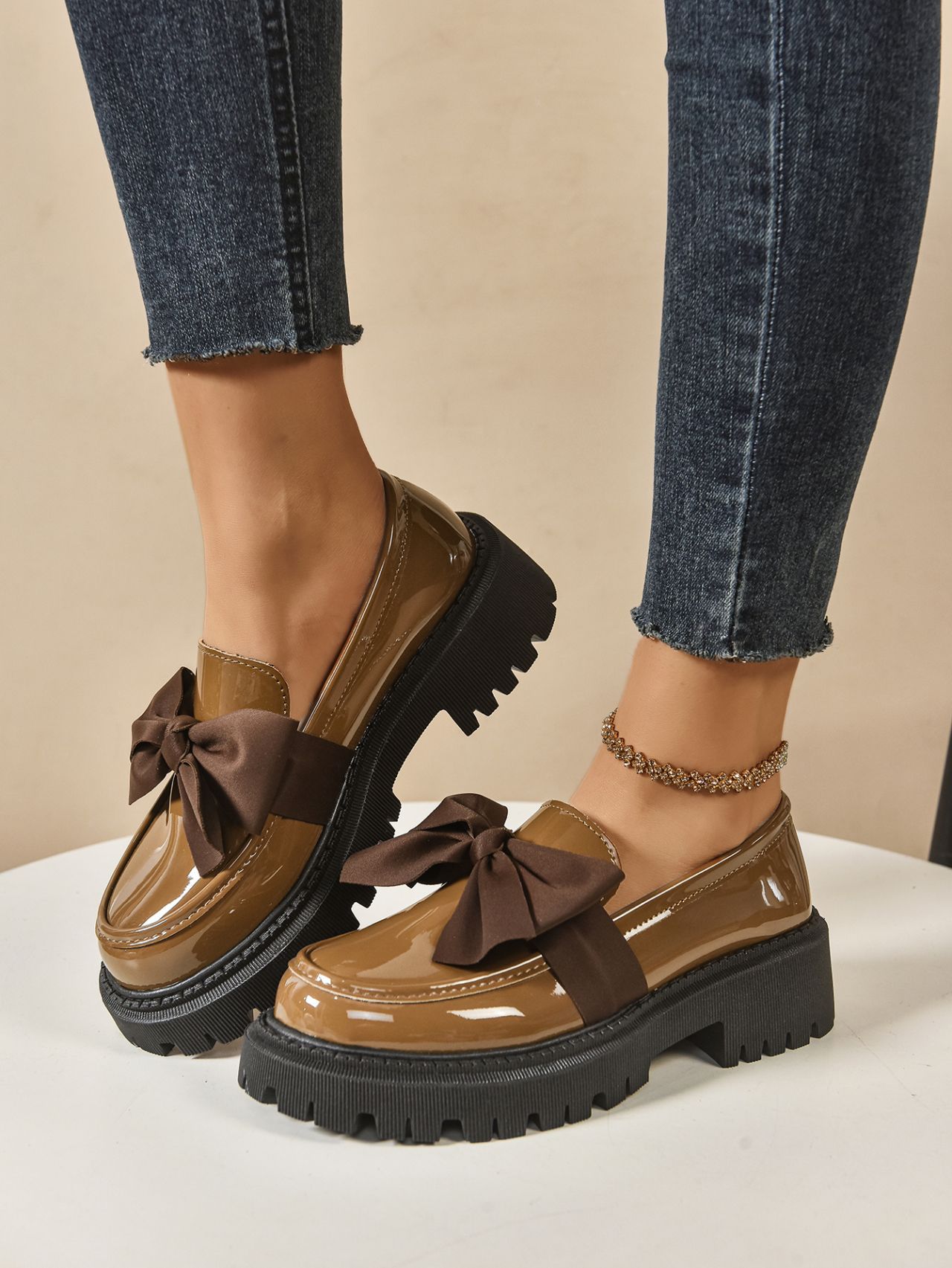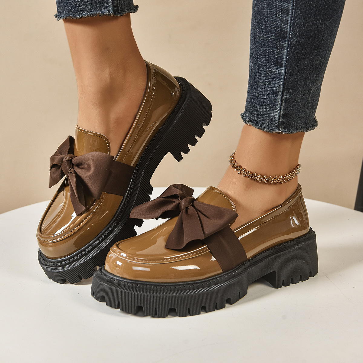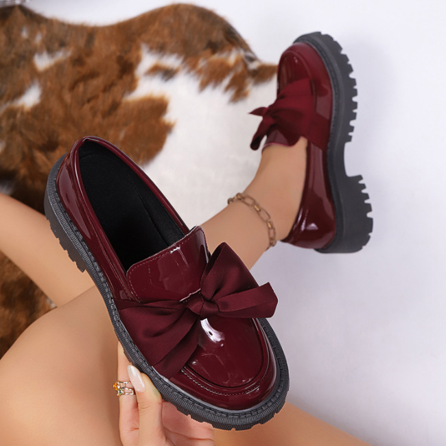 Женские лоферы с бантом, экспорт 2025 года, корейский стиль, на толстой подошве, средний каблук, ленивый британский стиль, ретро, маленькие кожаные туфли