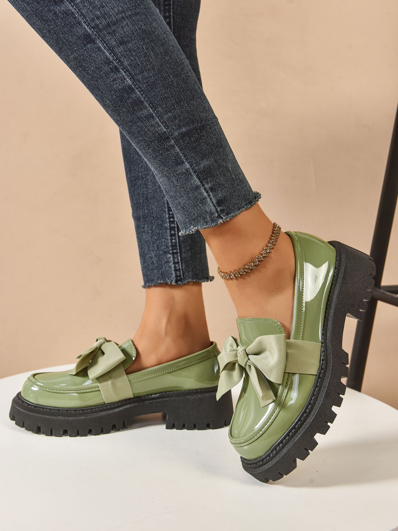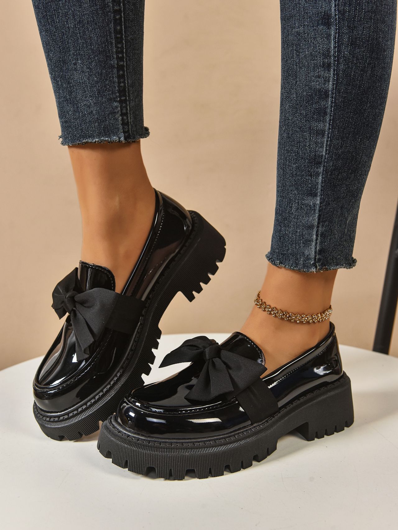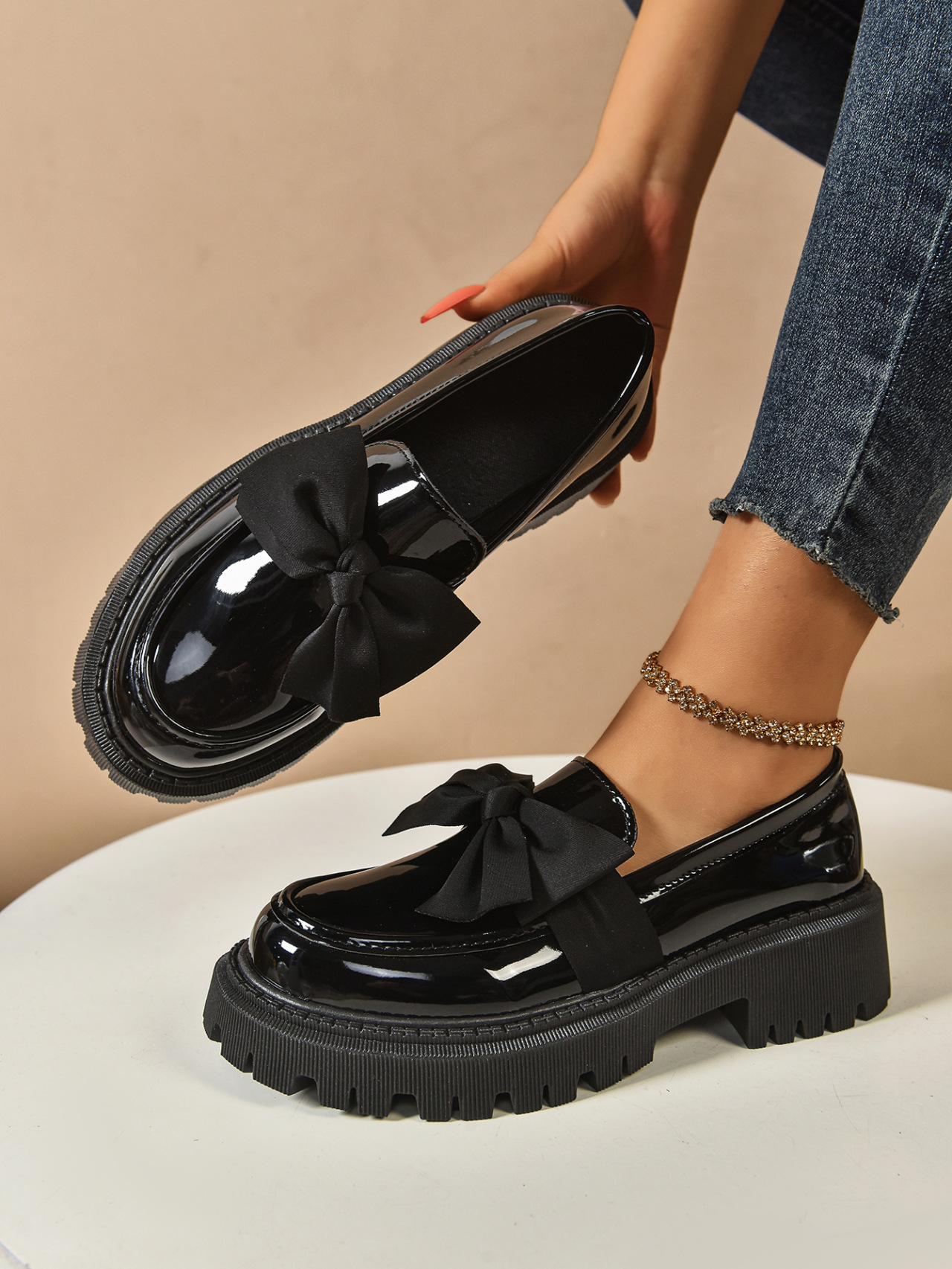 Женские лоферы с бантом, экспорт 2025 года, корейский стиль, на толстой подошве, средний каблук, ленивый британский стиль, ретро, маленькие кожаные туфли