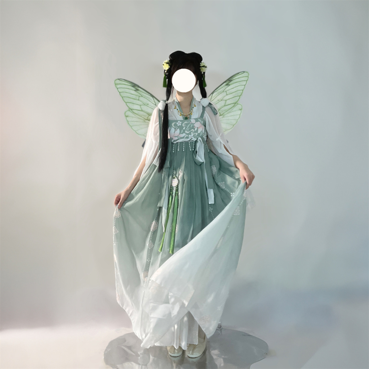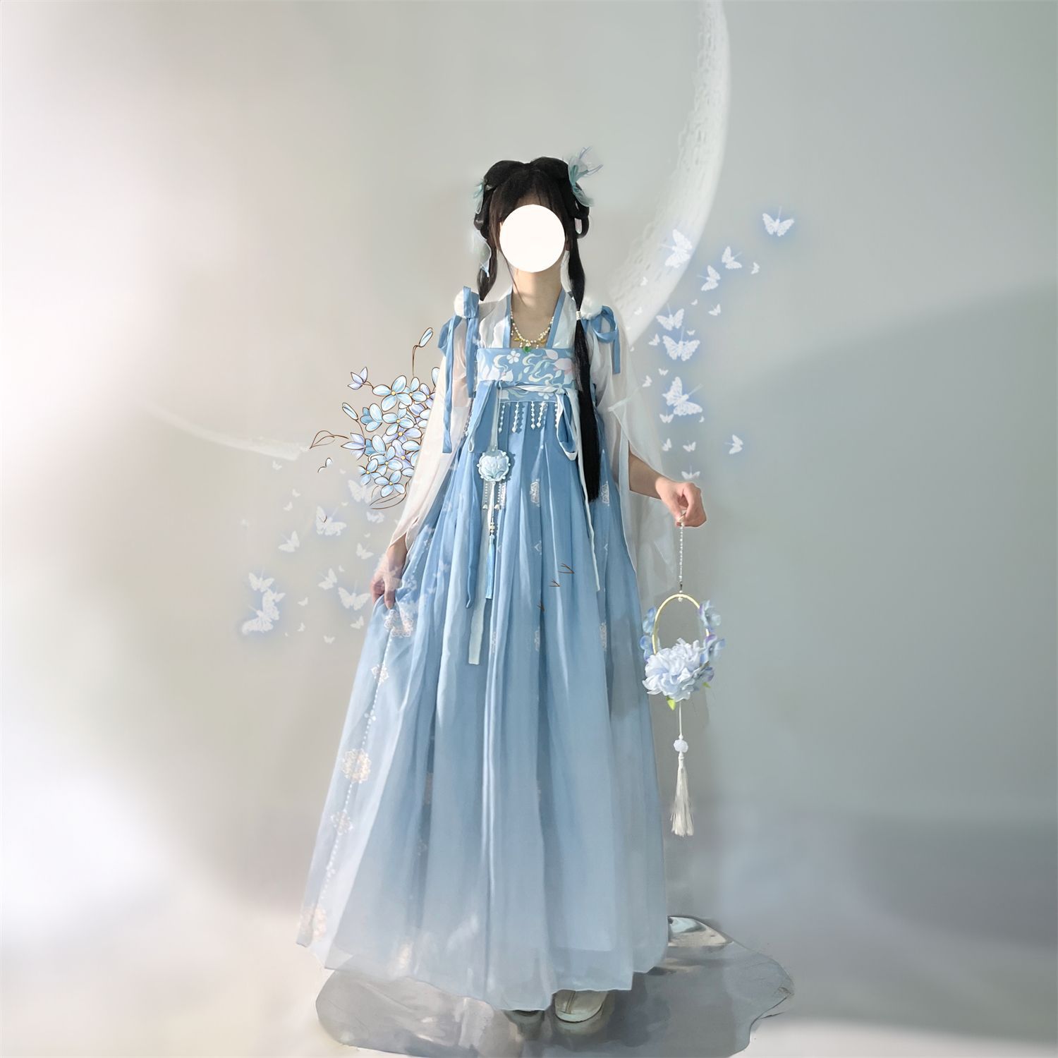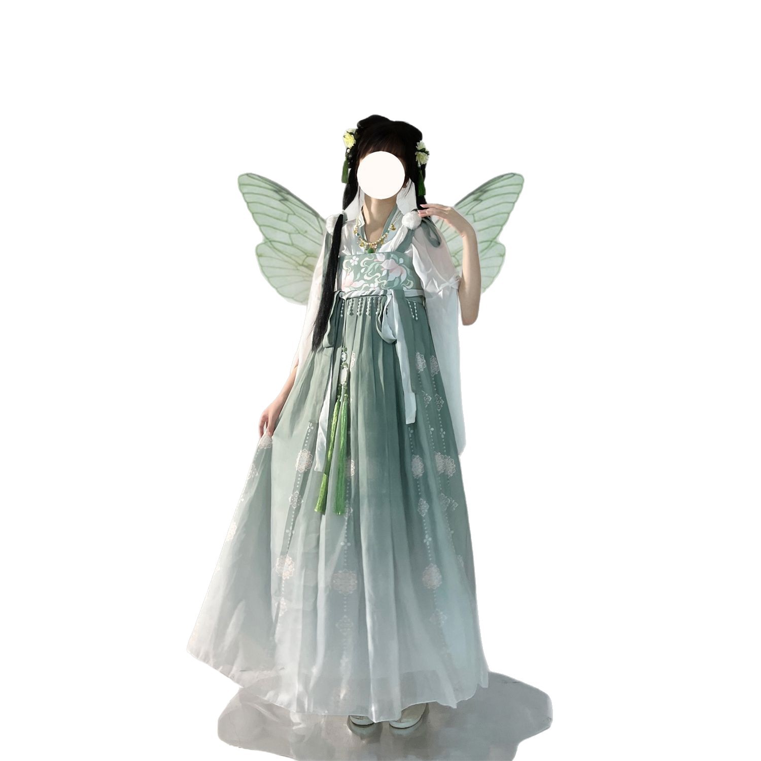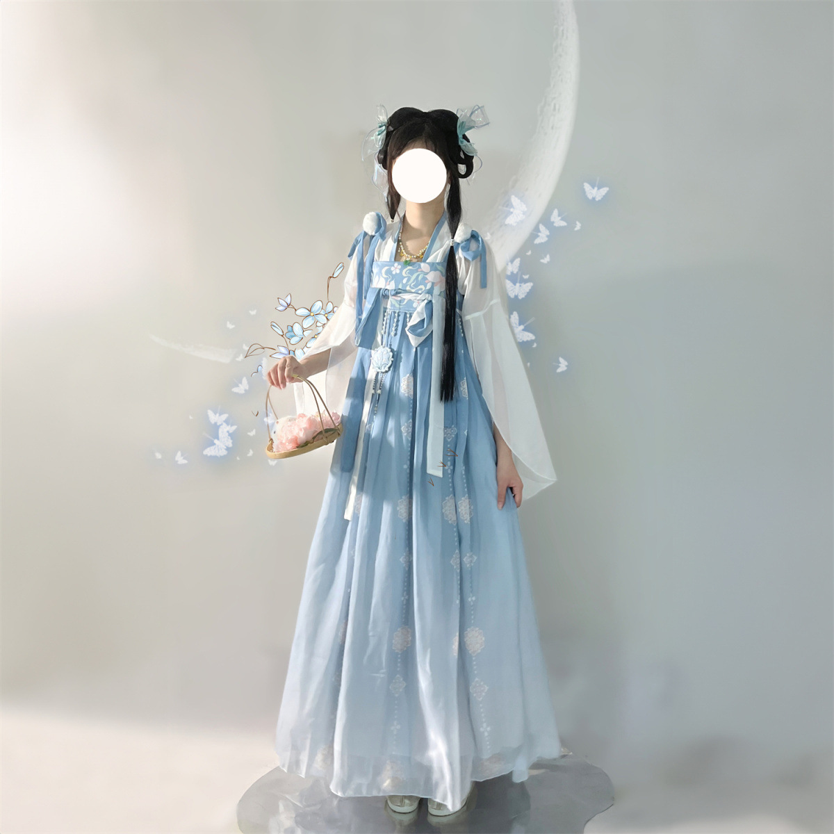 Лето 2025 г., тонкий оригинальный ханьфу для женщин, древний стиль, длина до груди, с элементами хань, полный комплект, новинка весны, лета, осени, аутентичный.