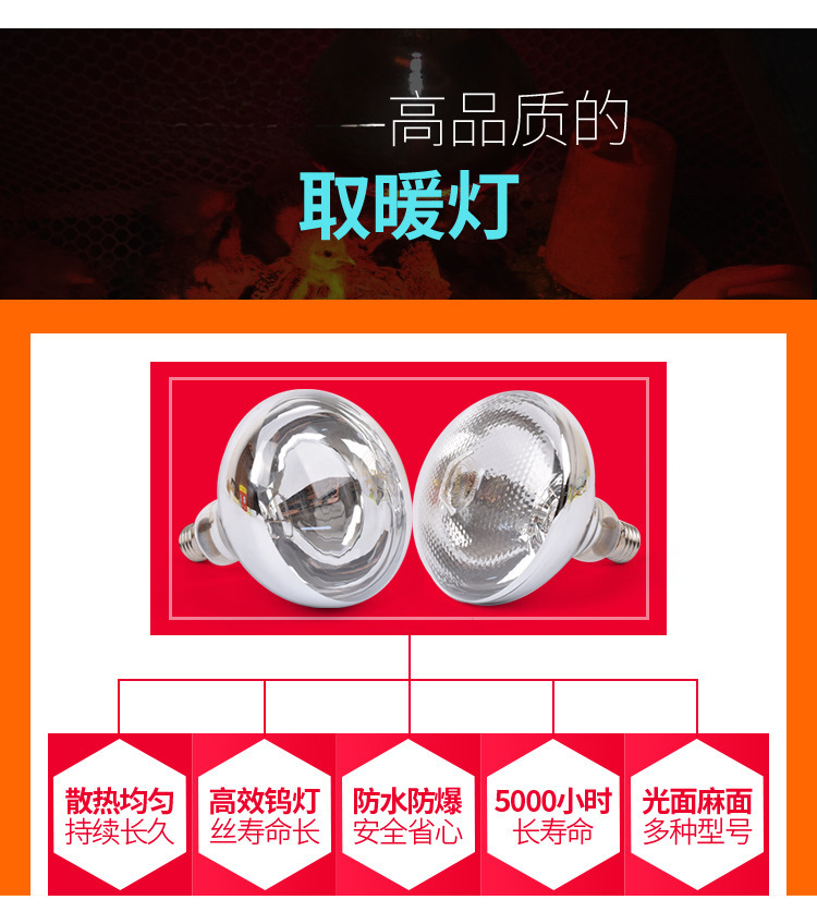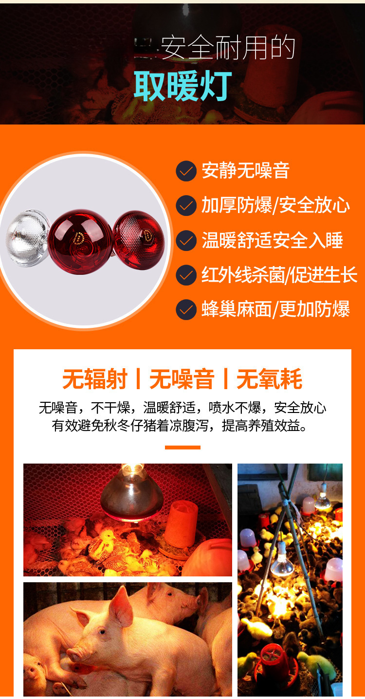 Изолированная лампа для свиней, лампа для обогрева поросят, лампа для выпечки, утолщенная нагревательная лампа для разведения кур, уток, скота, свинарников, энергосбережение для домашних животных.