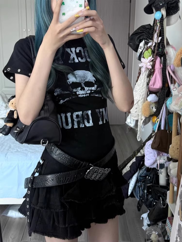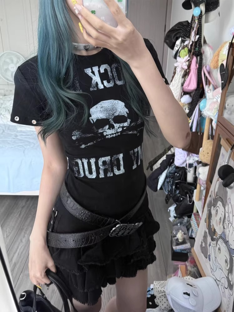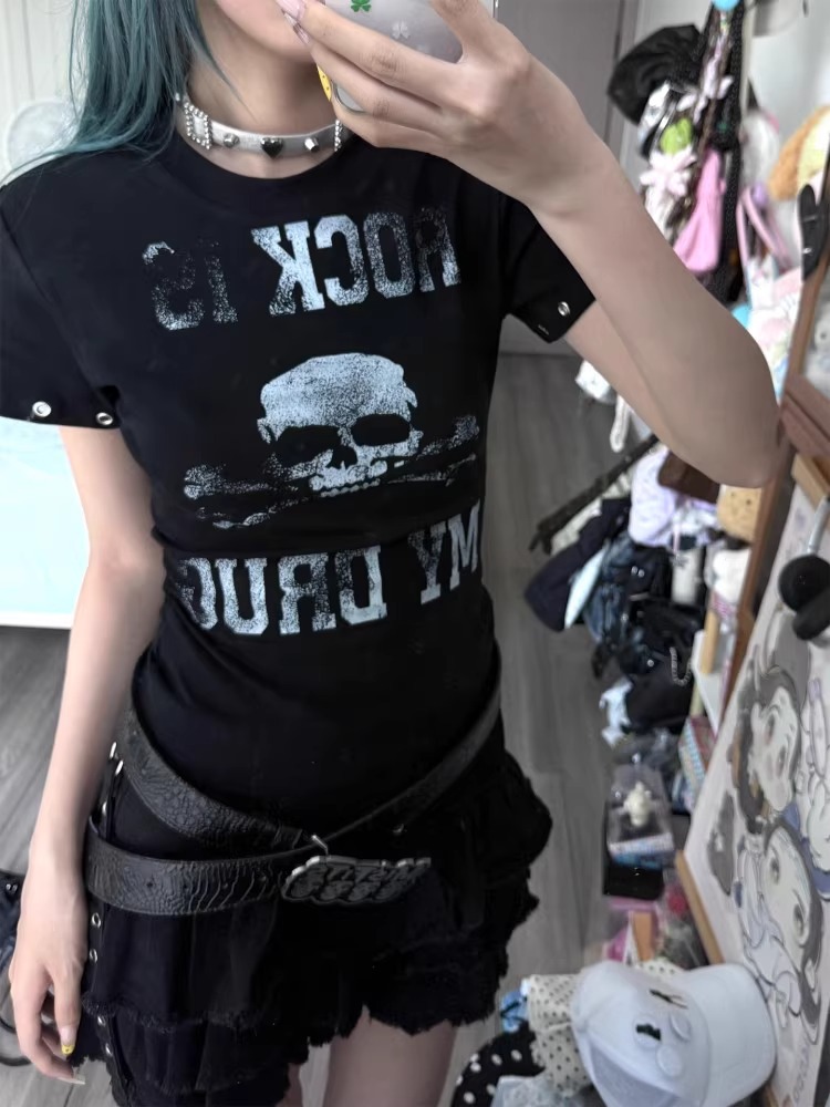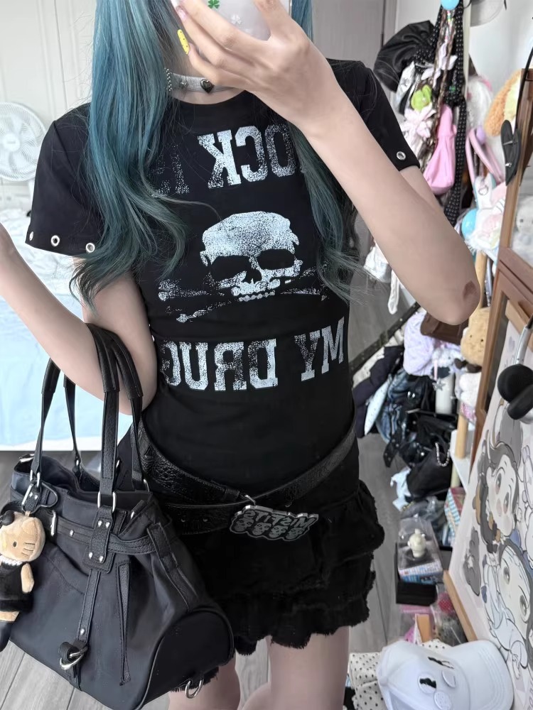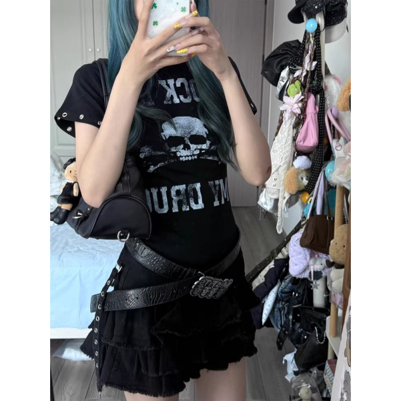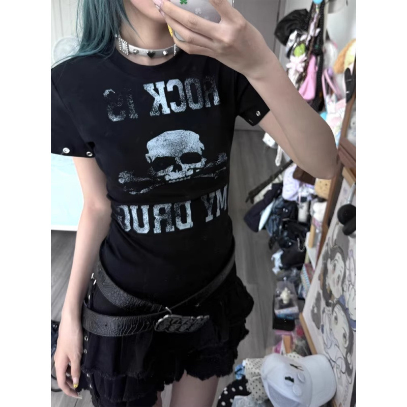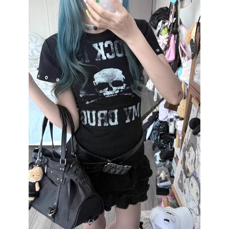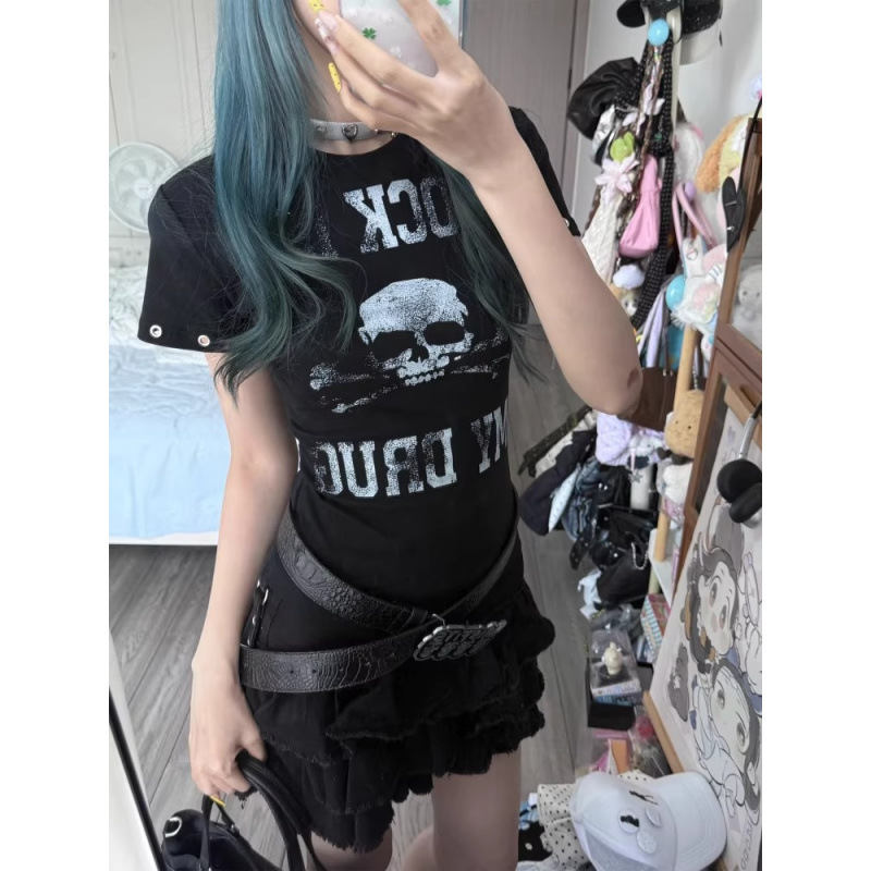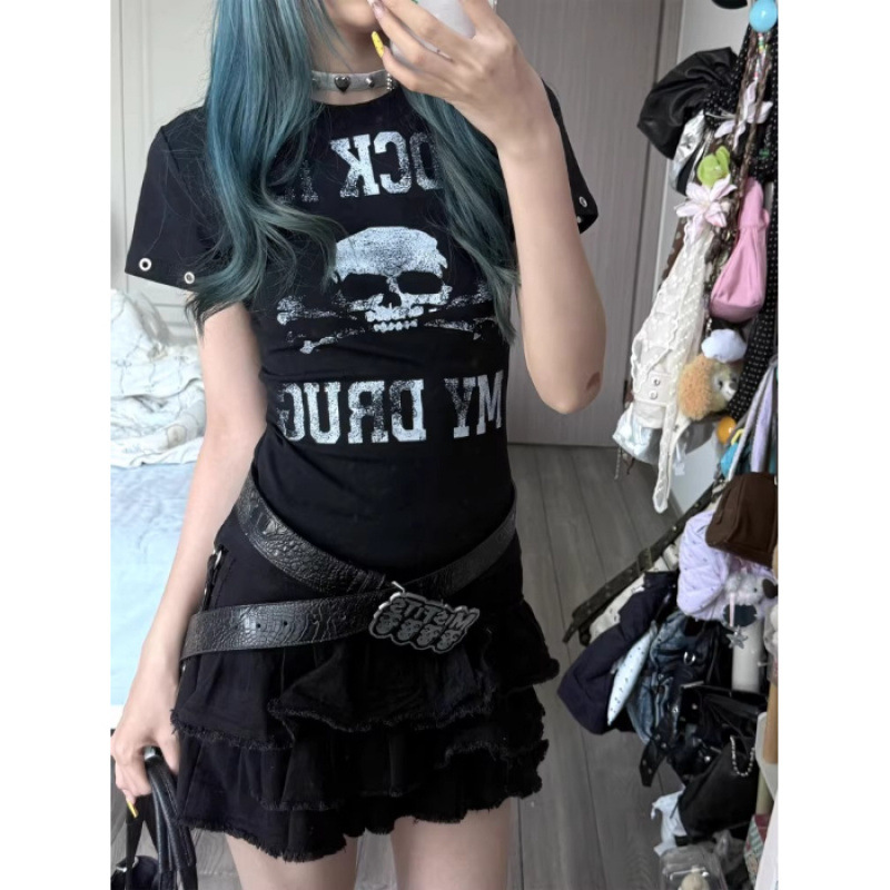 Корейская уличная футболка с принтом черепа из чистого хлопка с короткими рукавами, женская сексуальная футболка для похудения, летний топ y2k