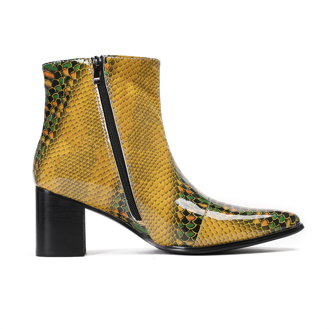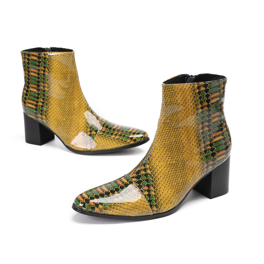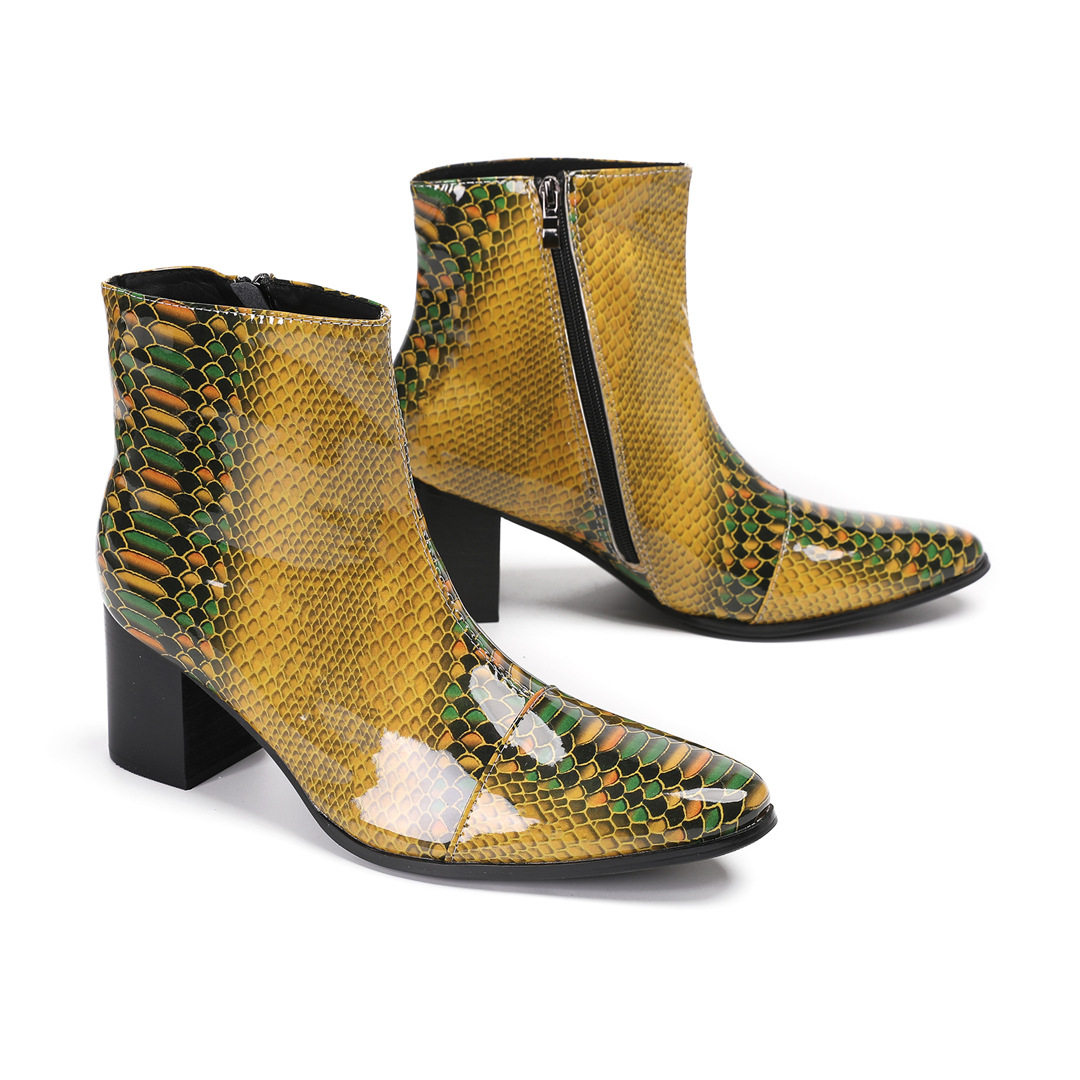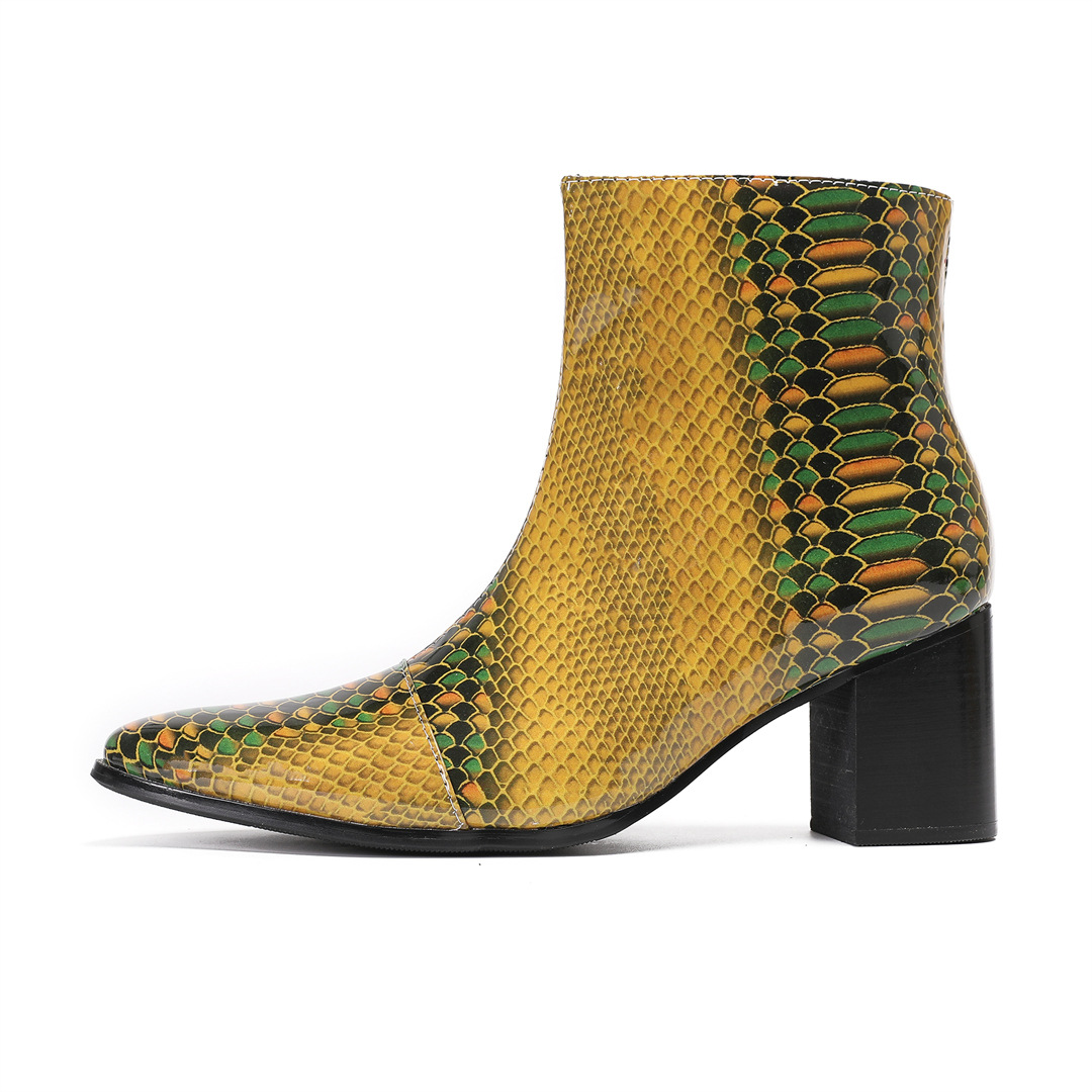 Внешняя торговля, модные французские ботинки из воловьей кожи, мужские осенне-зимние желтые модные ботинки средней длины с короткими трубками и квадратным носком, мужские ботинки на высоком каблуке