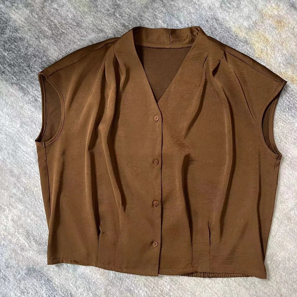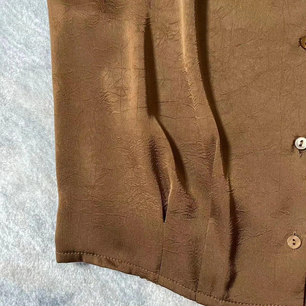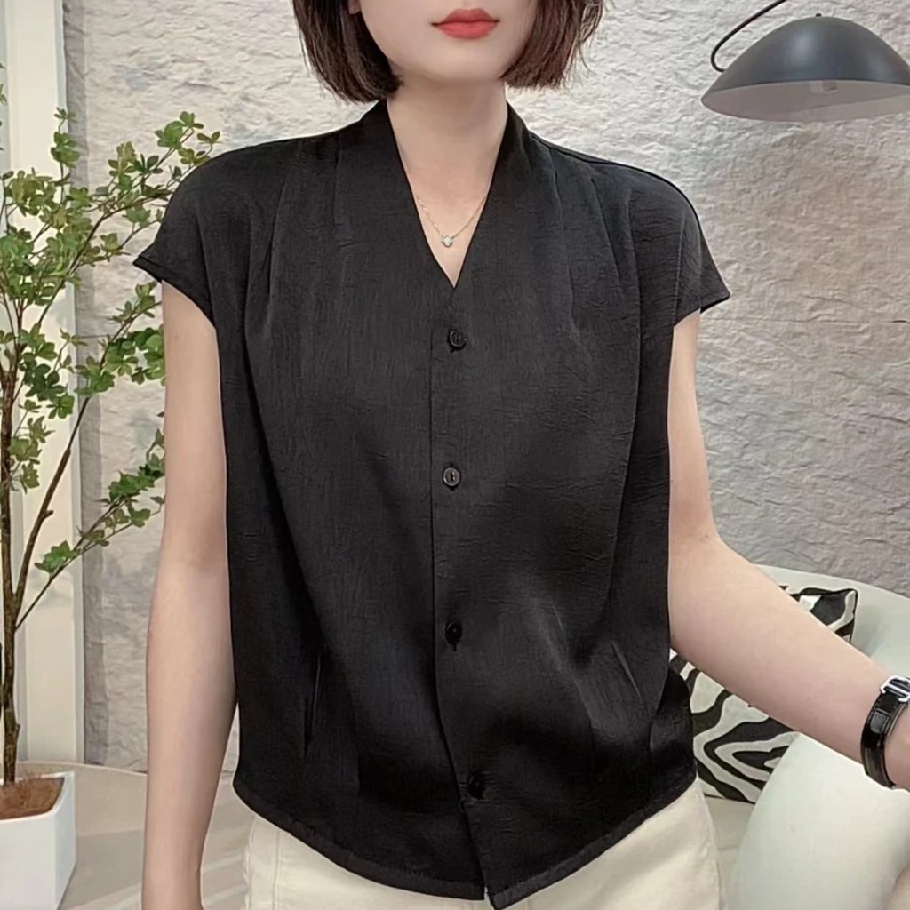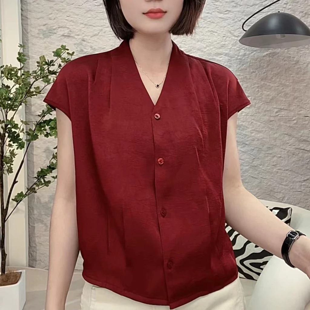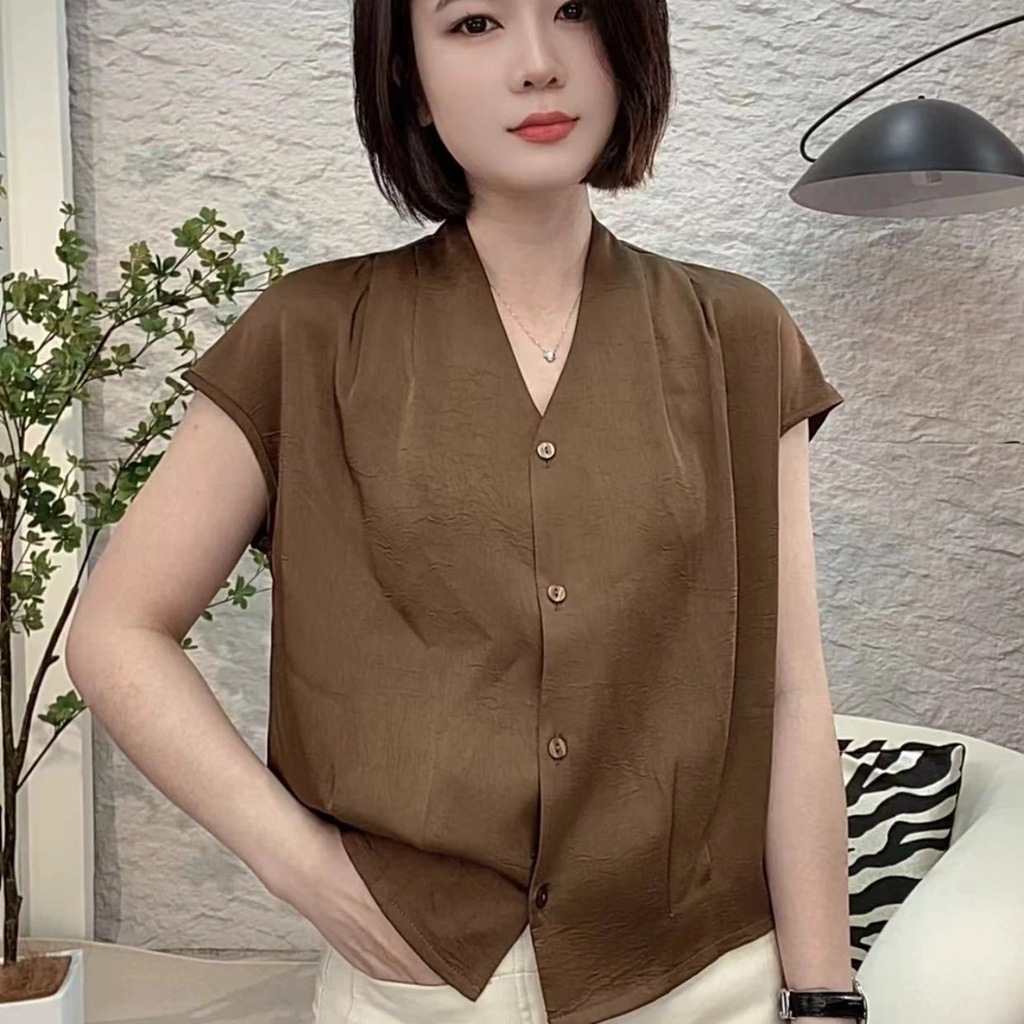 Женская рубашка из высококачественного атласа с V-образным вырезом, летняя новинка 2025 года, модный шелковистый топ, который не мнется.