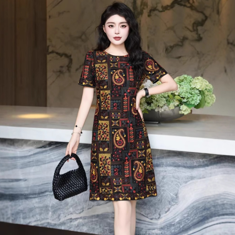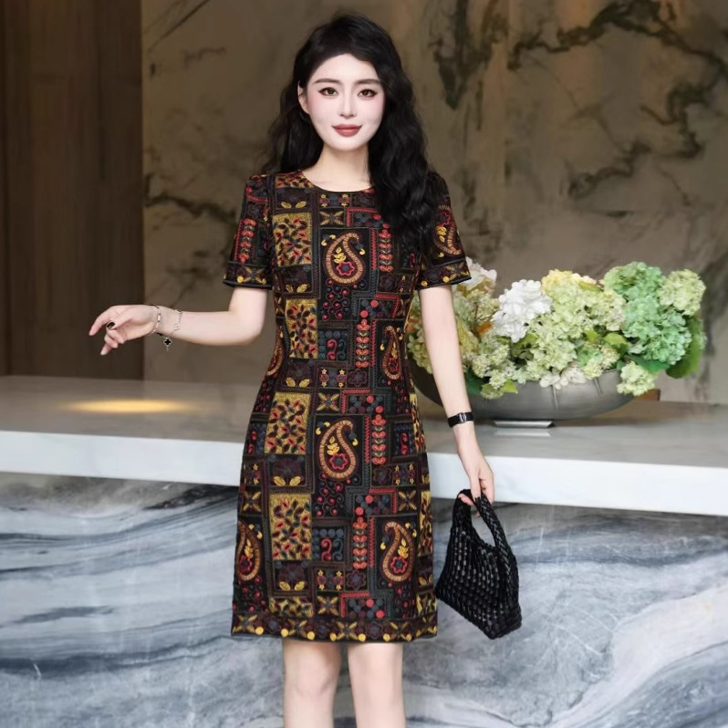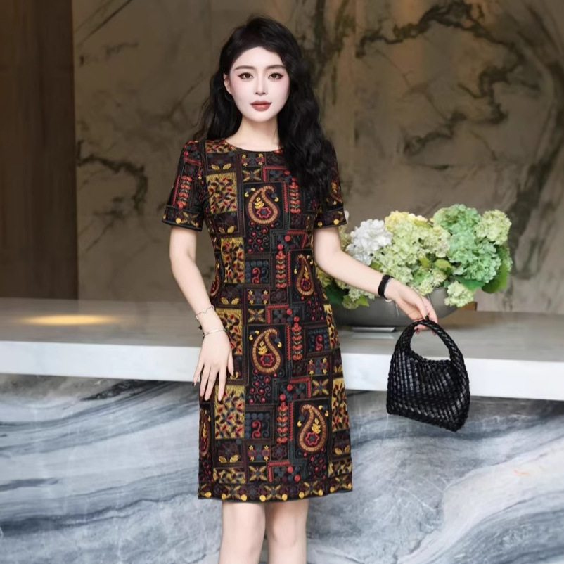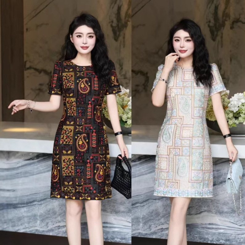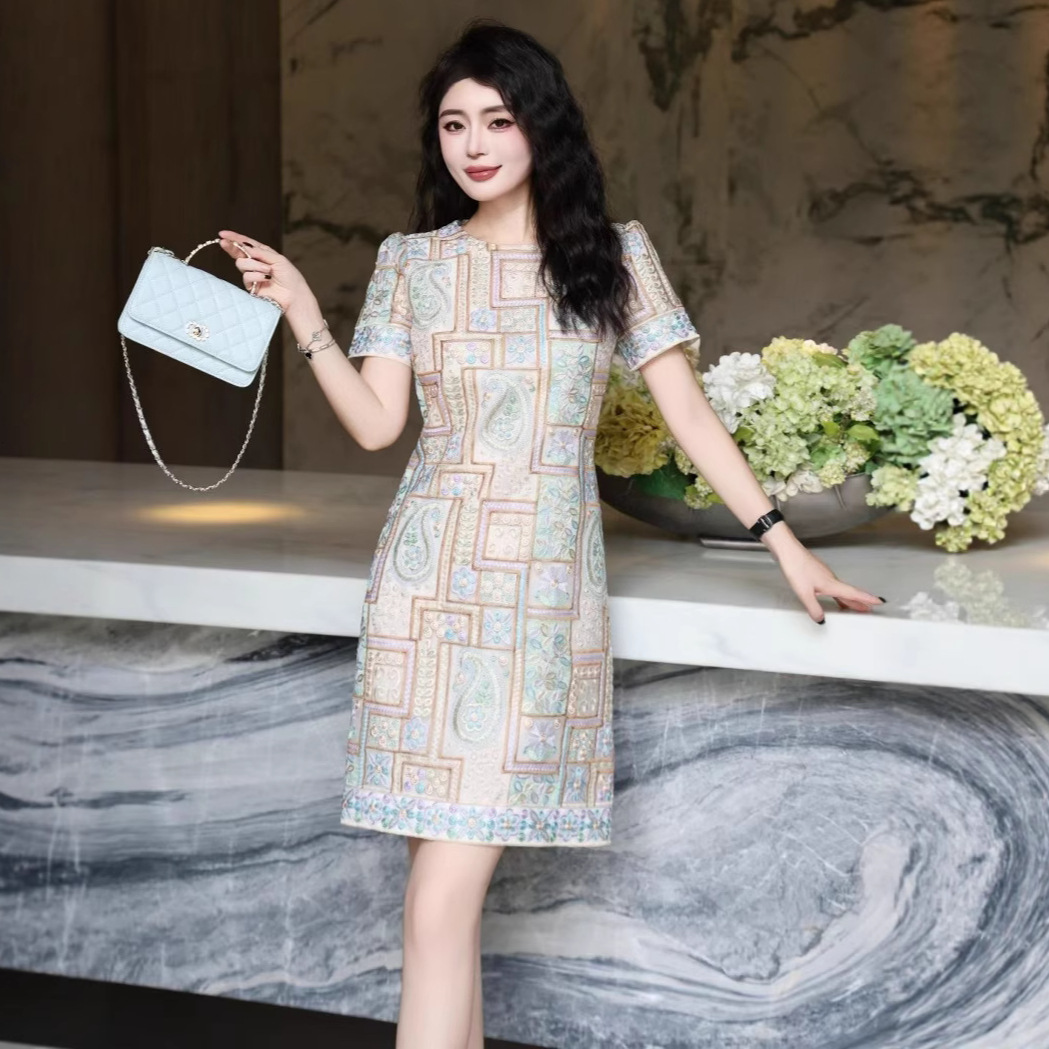 Летнее платье Nanyou 2025 года, элегантное, из плотной ткани, с тисненым жаккардовым узором в клетку, с короткими рукавами.
