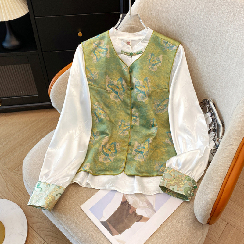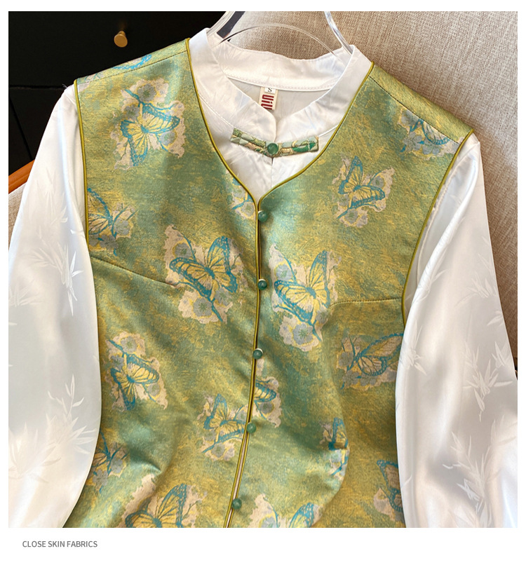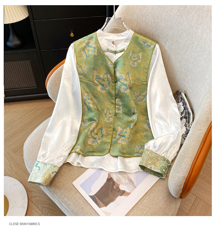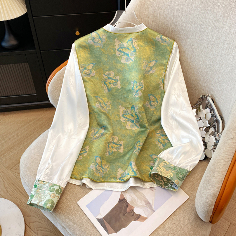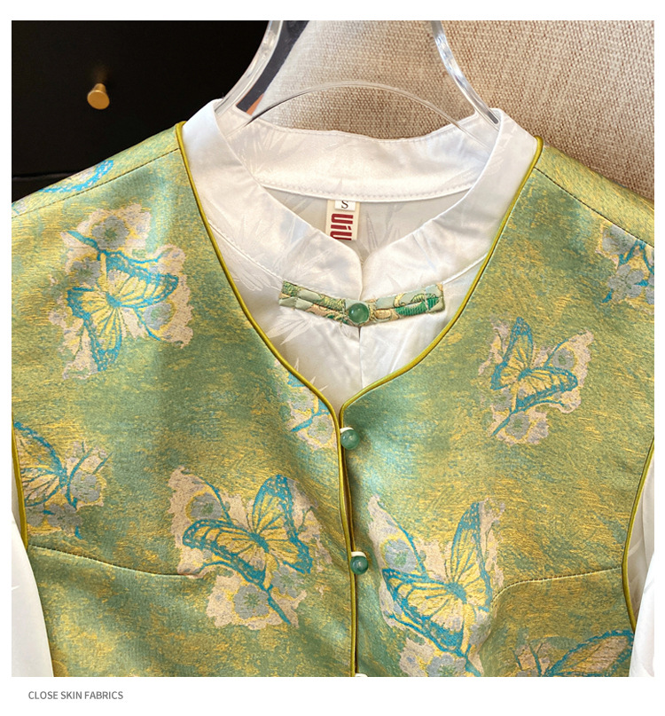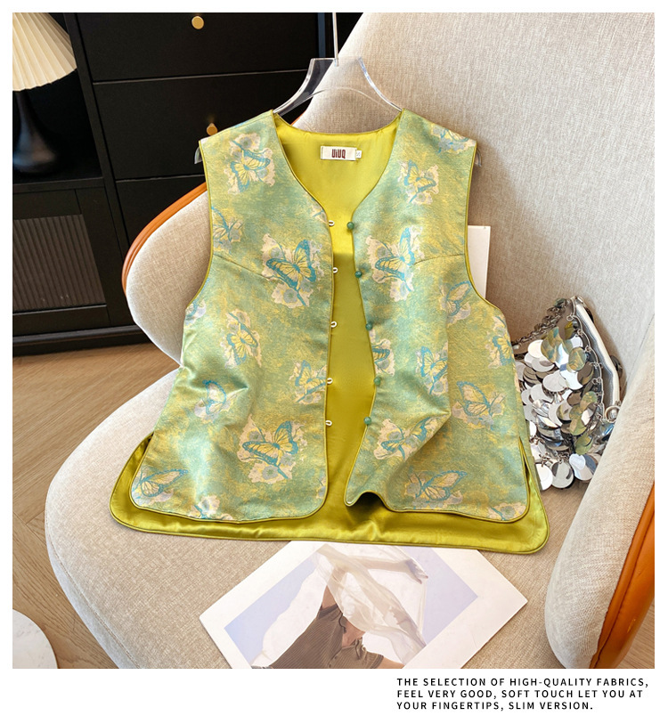 Новый китайский жаккардовый атласный топ ручной работы на пуговицах с воротником-стойкой, женственный нежный элегантный жилет Biedie
