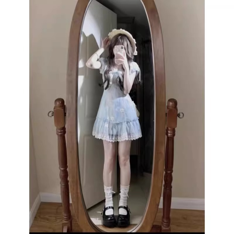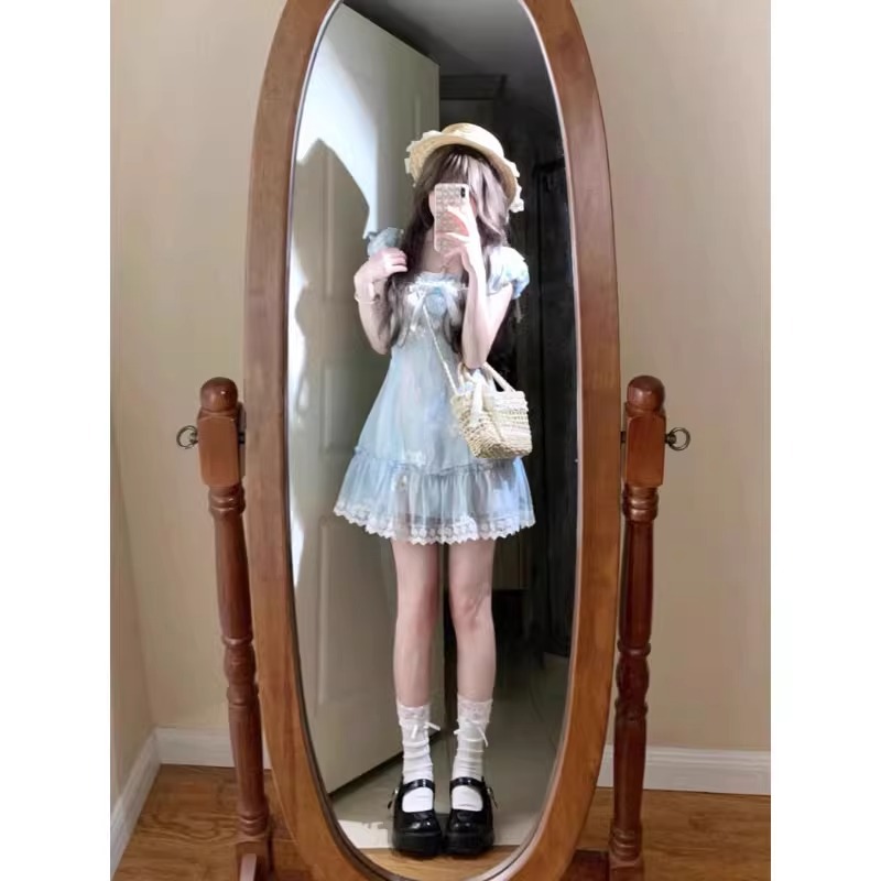 Кружевная юбка-пачка в студенческом стиле для женщин, летнее новое стильное короткое платье с бантом и цветочным принтом