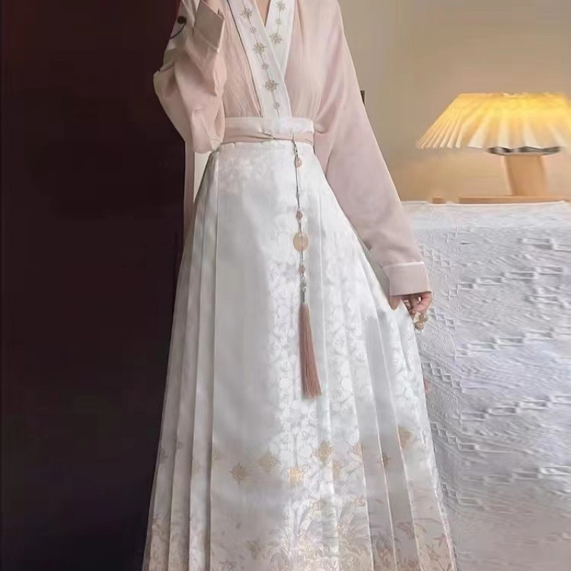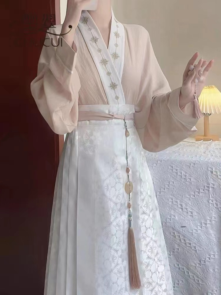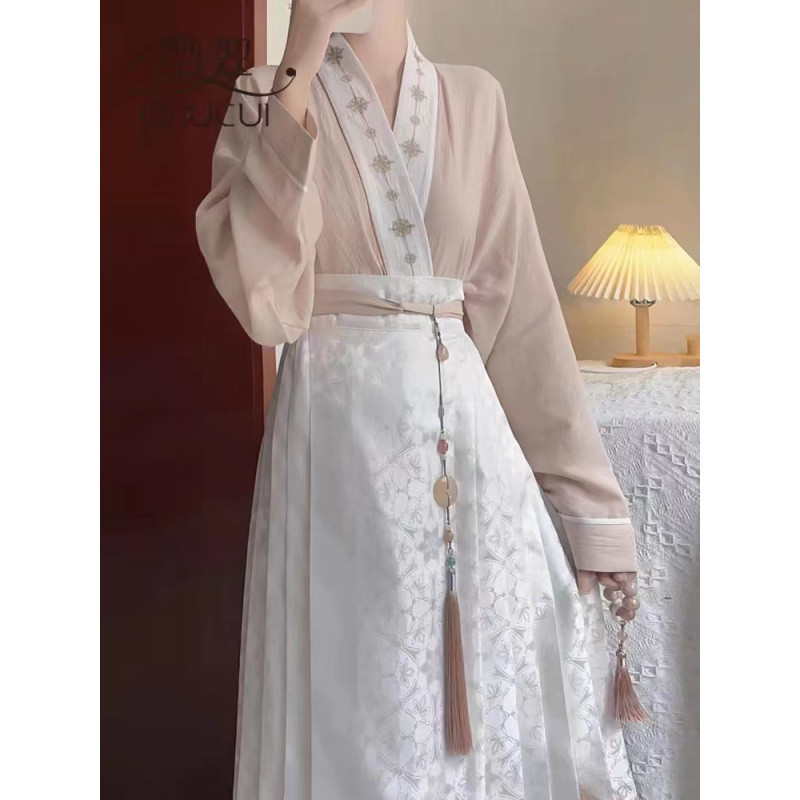 Новый комплект ханьфу в китайском стиле династии Мин с жаккардовым принтом, летний тонкий модифицированный повседневный комплект из двух предметов для взрослых.
