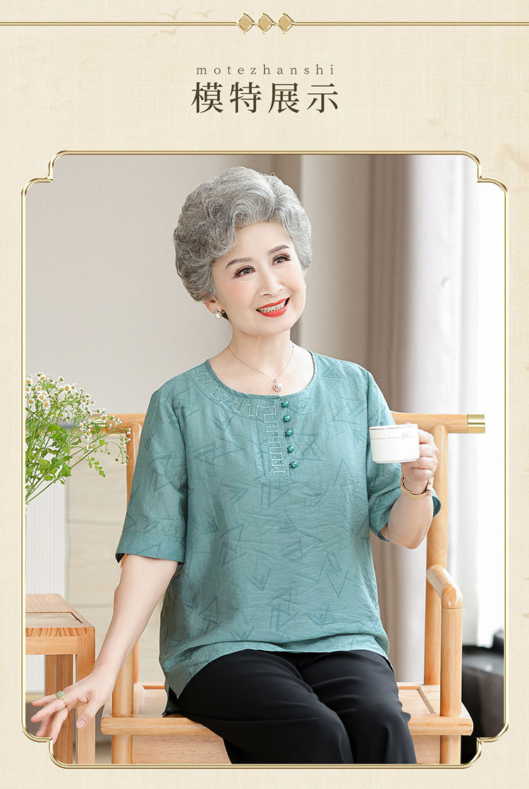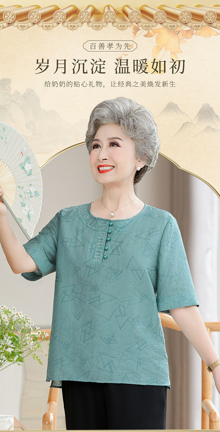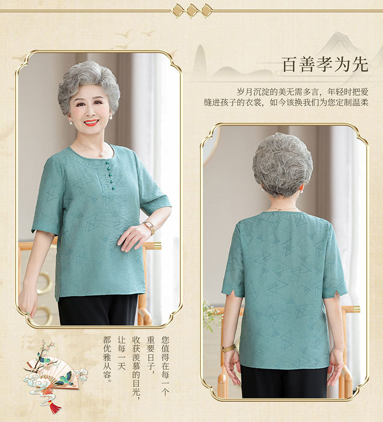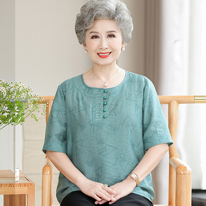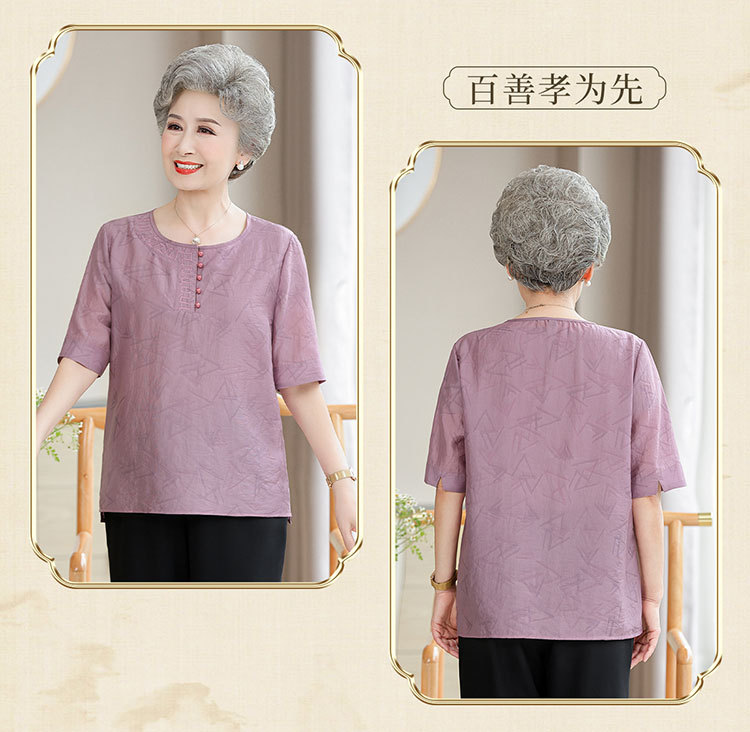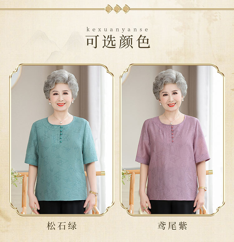 Летняя одежда для пожилых людей, женские футболки для бабушек с короткими рукавами, костюмы для мам из ледяного шелка, новые летние топы с половиной рукавов для людей среднего и пожилого возраста.