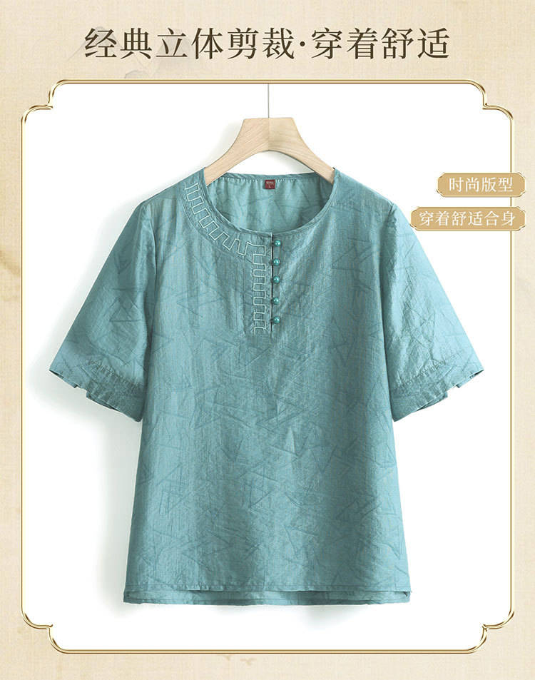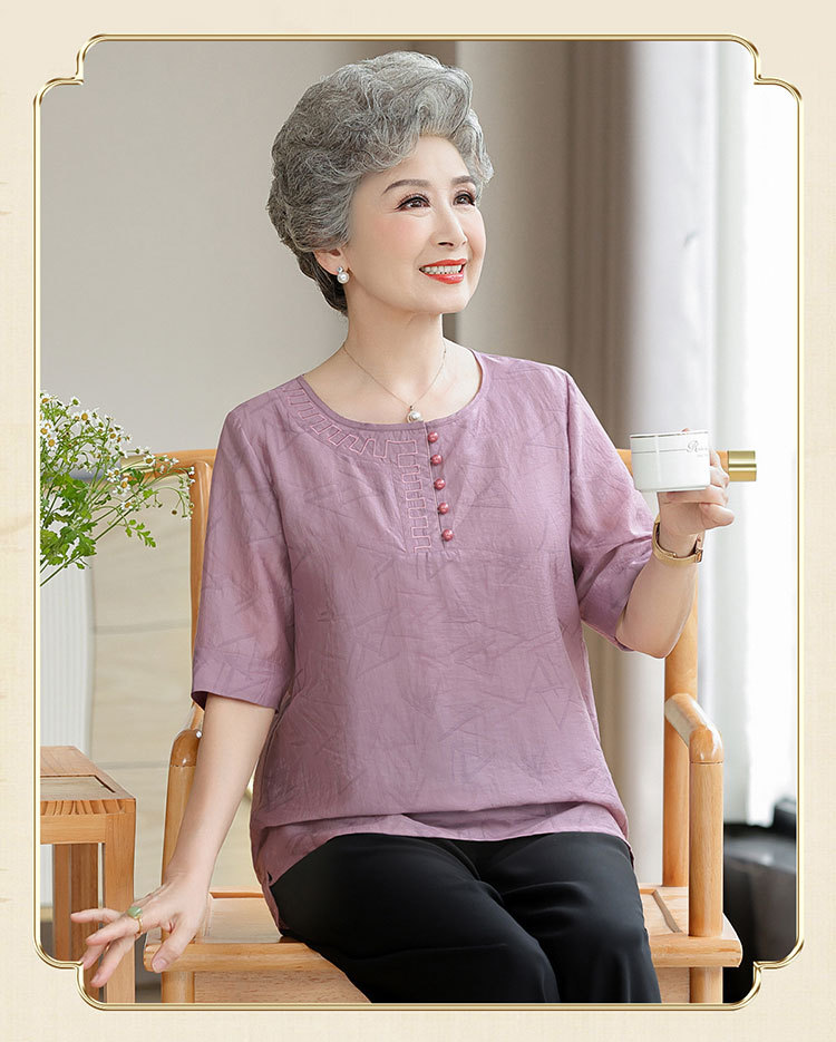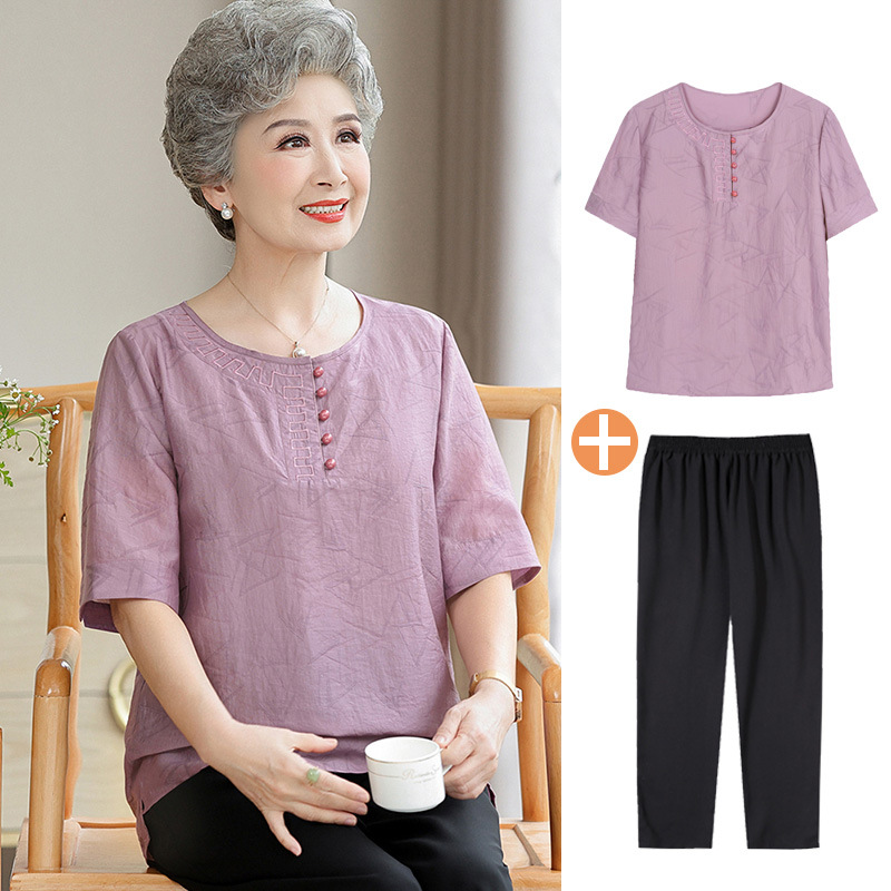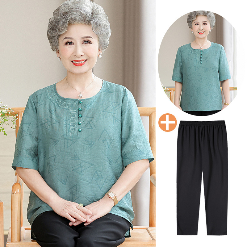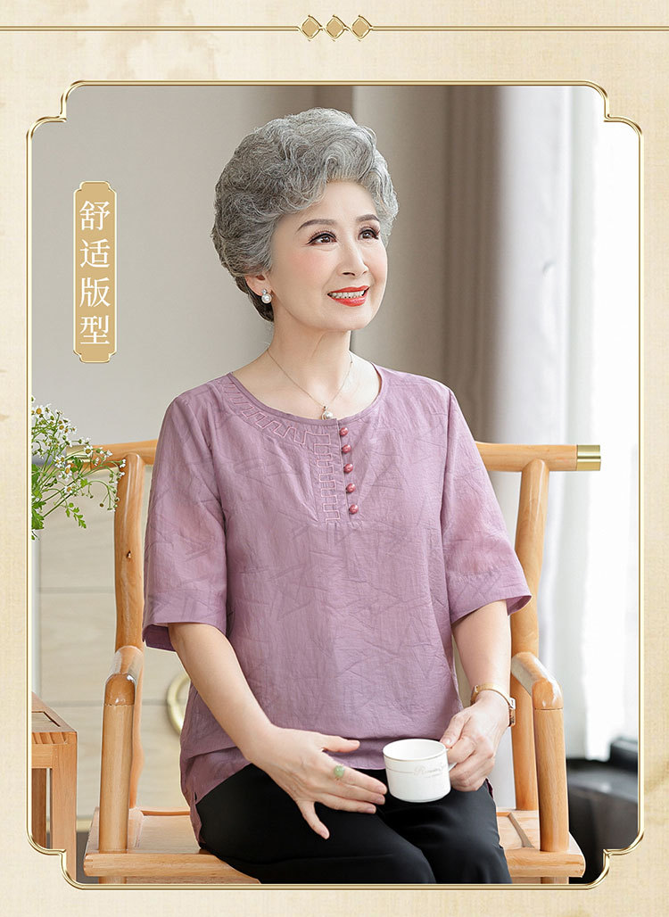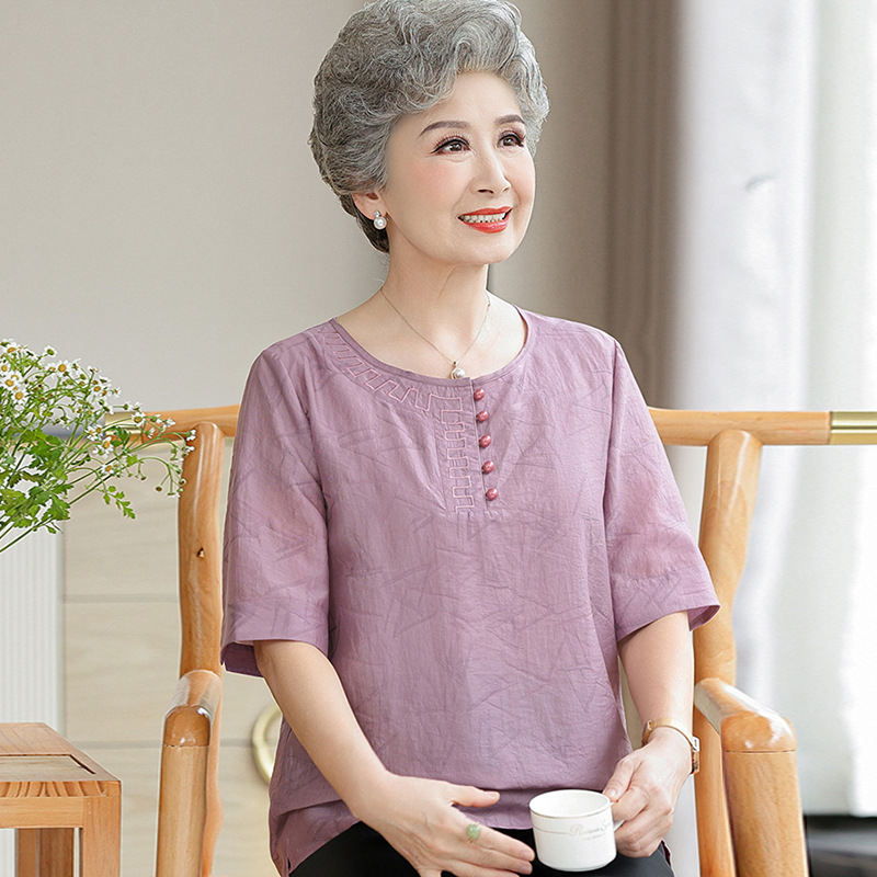 Летняя одежда для пожилых людей, женские футболки для бабушек с короткими рукавами, костюмы для мам из ледяного шелка, новые летние топы с половиной рукавов для людей среднего и пожилого возраста.