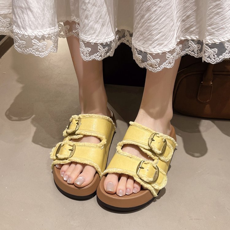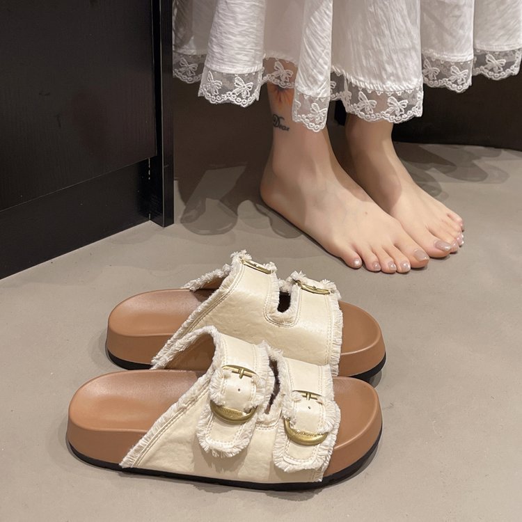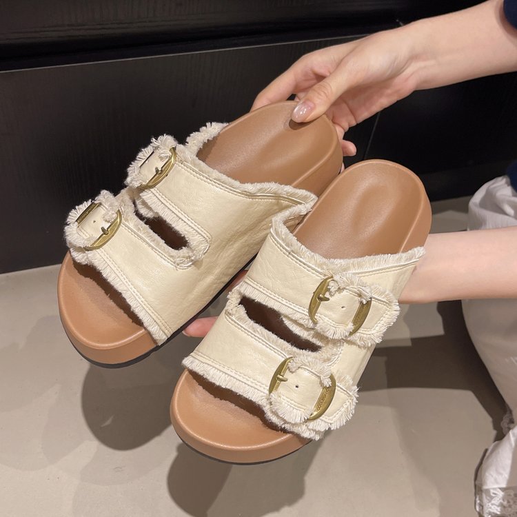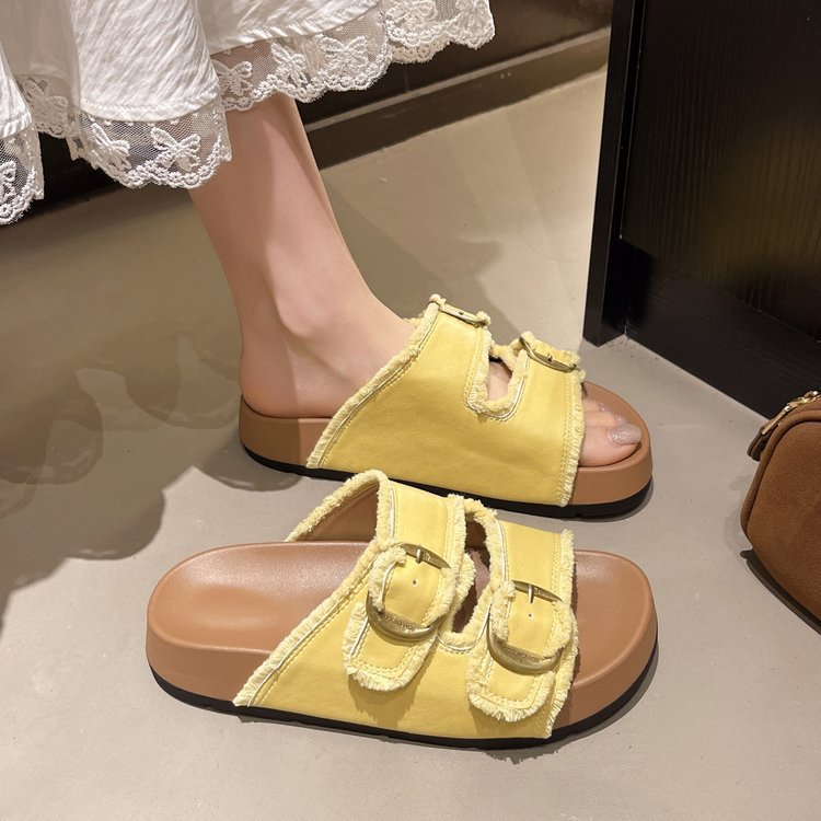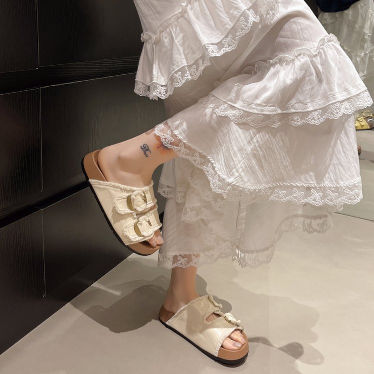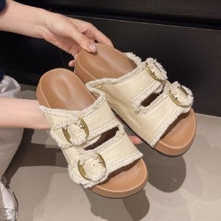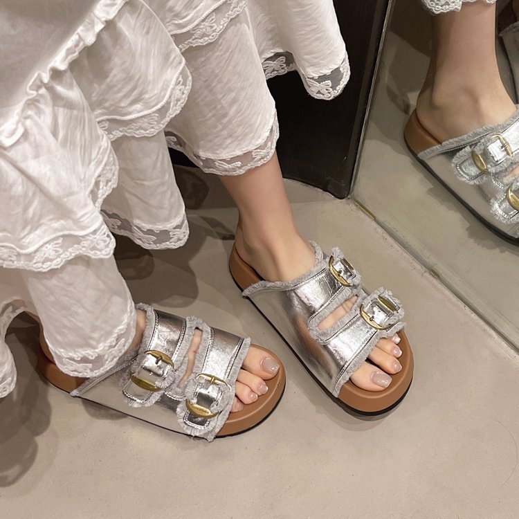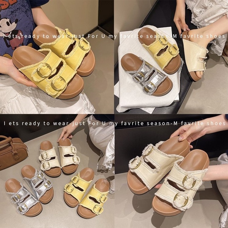 Модные плоские шлепанцы Birkenstock для женщин, летние пляжные сандалии с пряжкой, новинка 2025 года.