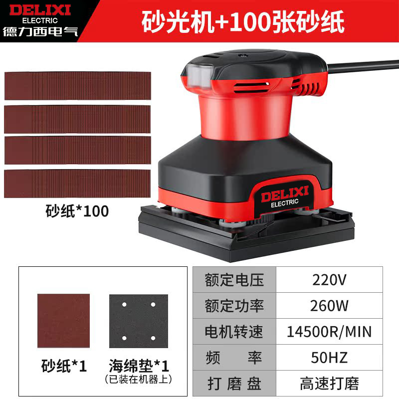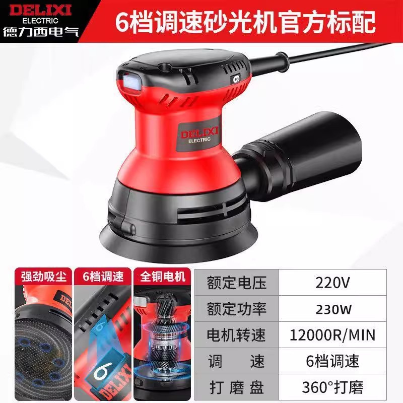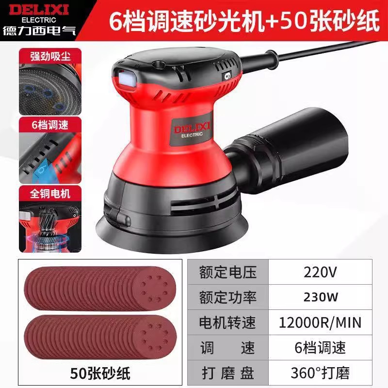 Шлифовальная машина Delixi, настенная шлифовальная машина, деревообрабатывающая доска, шпаклевка, наждачная бумага, электрическая вакуумная полировальная машина, шлифовальный станок