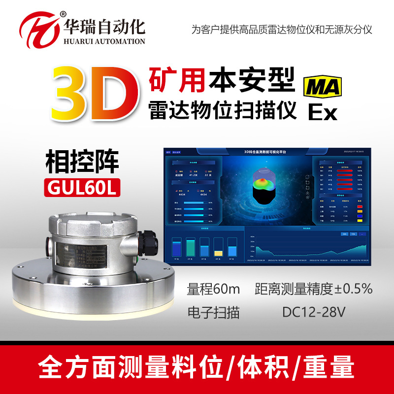 3D-радарный уровнемер для шахт, взрывозащищенный, безопасный для угольной промышленности, дальность действия 60 м, для угольных шахт, угольных промывочных заводов, зерновых силосов и цементных заводов.