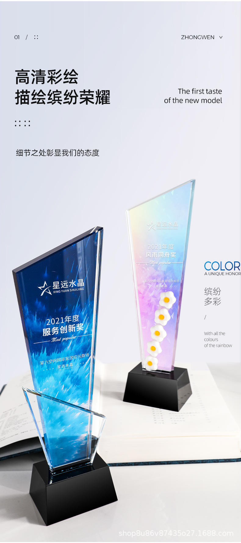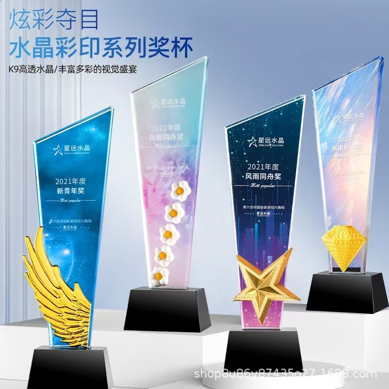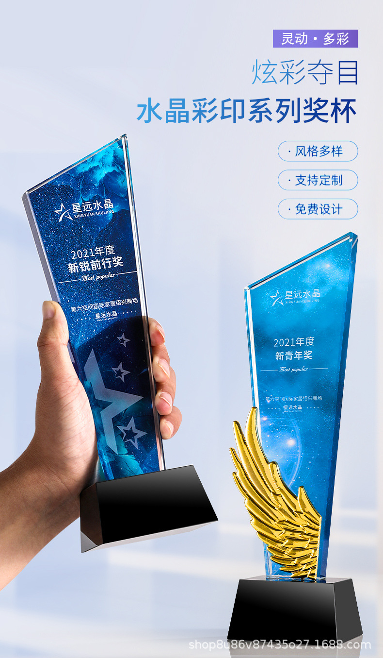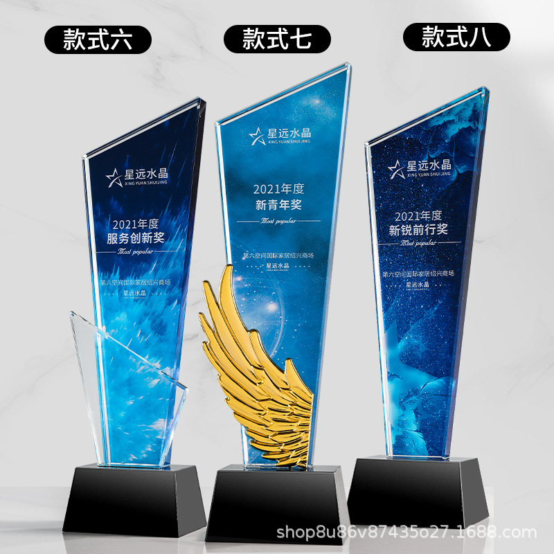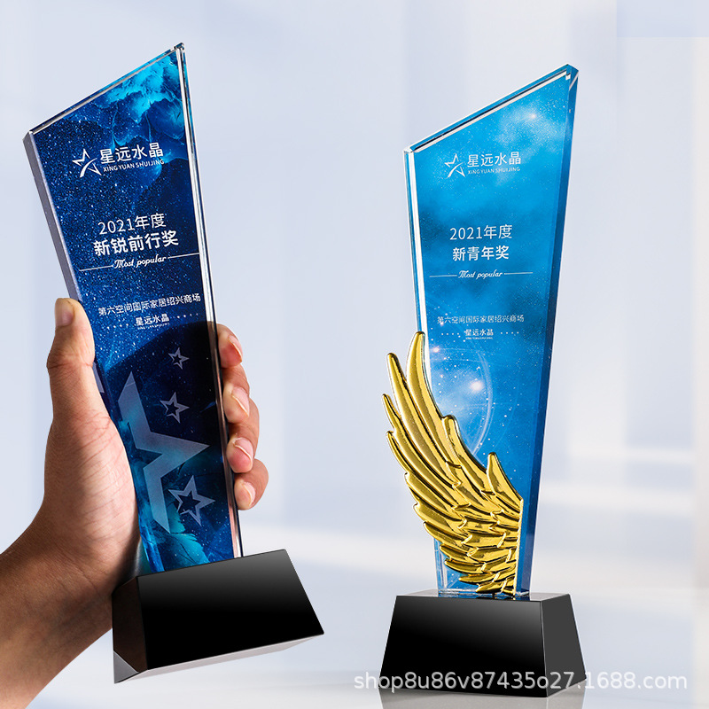 Новый хрустальный трофей с крыльями, награды для ежегодных корпоративных собраний сотрудников ручной работы, креативные высококачественные и атмосферные памятные подарки.