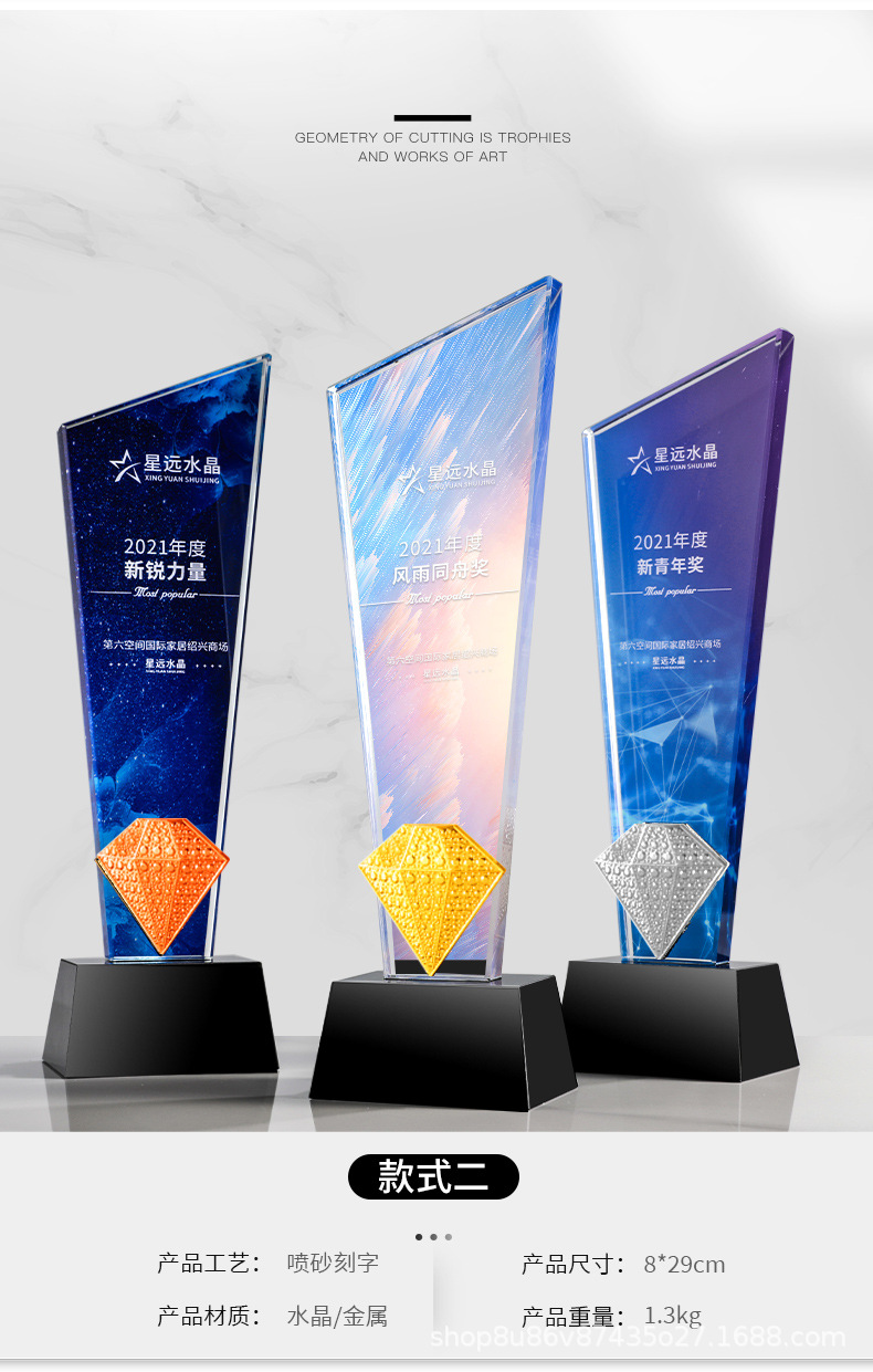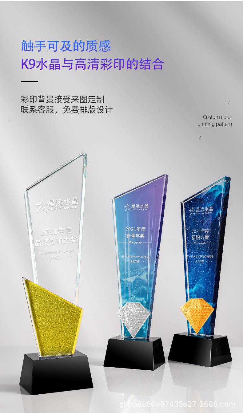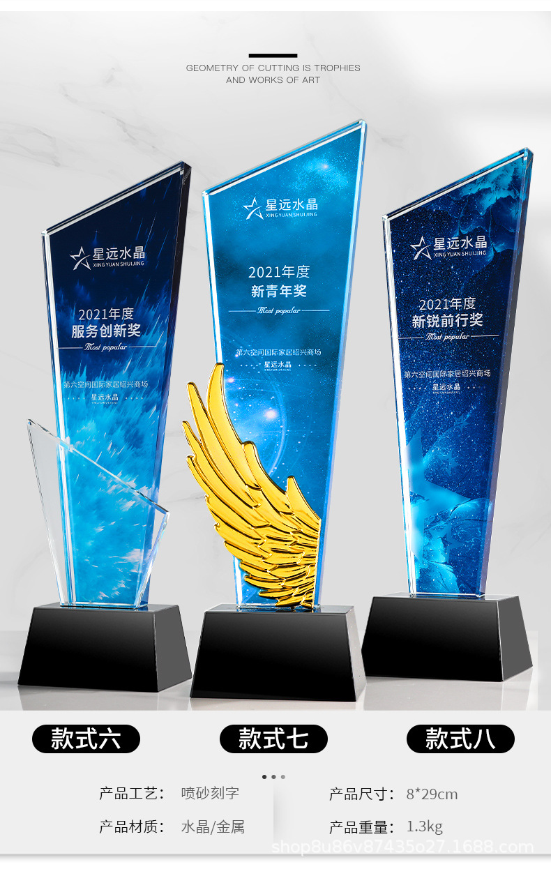 Новый хрустальный трофей с крыльями, награды для ежегодных корпоративных собраний сотрудников ручной работы, креативные высококачественные и атмосферные памятные подарки.