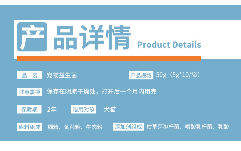 Новые пробиотики для здоровья домашних животных, 5 г * 10 пакетов, порошок для желудочно-кишечного тракта кошек, пищевые продукты для желудочно-кишечного тракта собак, оптовая продажа