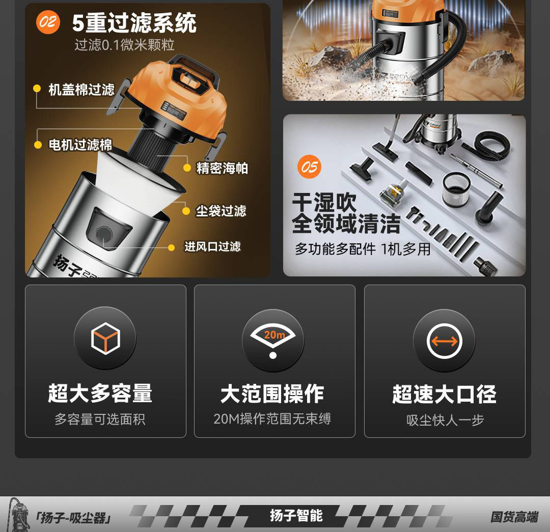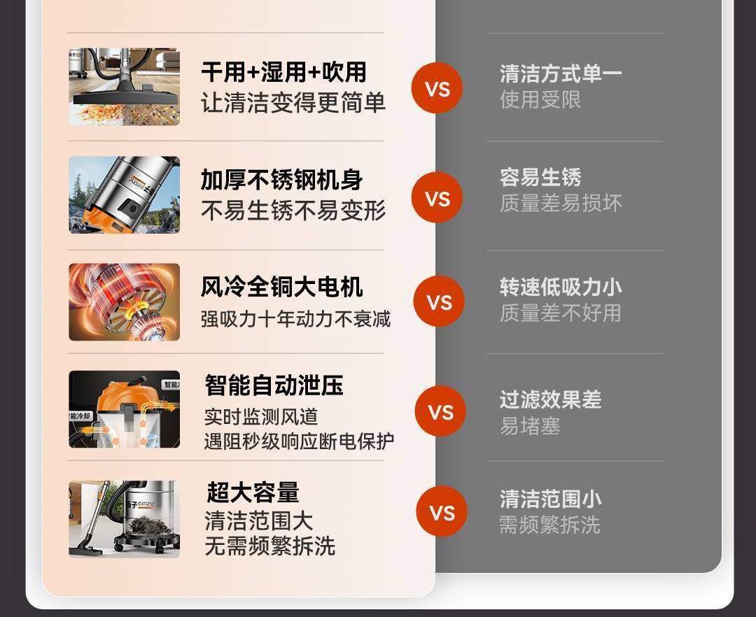 Бренд Yangzi/43 года мастерства/сертификация безопасности3C; Энергосберегающий двигатель с регулируемой частотой/менее 1 киловатт-часа электроэнергии в день/сильное всасывание; Тестирование/множественное шумоподавление/вероятность отказа каждого устройства перед отправкой с завода составляет менее 0,1%.; Утолщенная нержавеющая сталь/антикоррозийная и устойчивая к коррозии, устойчивая к некачественному производству и продаже по высоким ценам.; Литой ствол + мощность всасывания 99000 Па, базовая модель 18 л.; Утолщенный ствол + мощность всасывания 99000 Па, модернизированная модель 18 л.; Утолщенный ствол + мощность всасывания 99900 Па, базовая модель 23 л.; Утолщенный ствол + мощность всасывания 99900 Па, модернизированная модель объемом 23 л.; Двигатель с воздушным охлаждением + супервсасывание 100 000 Па, бытовая модель объемом 28 л.; Двигатель с воздушным охлаждением + супервсасывание 100 000 Па, модернизированная модель для дома объемом 28 л.; Двойной турбовентилятор + супервсасывание 100 000 Па, коммерческая модель объемом 28 л.; Двойной турбонагнетатель + супервсасывание 100 000 Па, верхняя версия объемом 28 л.; Двигатель с воздушным охлаждением + супервсасывание 110 000 Па, модель для дома объемом 35 л.; Двойной турбовентилятор + супервсасывание 110 000 Па, коммерческая модель объемом 35 л.; Двойной турбовентилятор + супервсасывание 110 000 Па, модернизированная коммерческая модель объемом 35 л.; Двойной турбовентилятор + супервсасывание 110 000 Па, верхняя версия объемом 35 л.; Двигатель промышленного класса + всасывающая способность 120 000 Па, коммерческая модель объемом 45 л.; Двигатель промышленного класса + всасывающая мощность 120 000 Па, коммерческая модернизированная модель объемом 45 л.; Двигатель промышленного класса + всасывание шторма 120 000 Па, верхняя версия объемом 45 л.; Двигатель военного класса + ураганное всасывание 130 000 PA, коммерческая модель объемом 55 л.; Двигатель военного класса + ураганное всасывание 130 000 PA, модернизированная коммерческая модель объемом 55 л.; Двигатель военного класса + ураганное всасывание 130 000 PA, верхняя версия объемом 55 л.; Двойной двигатель штормового уровня + промышленный утолщенный стальной барабан, коммерческая модель 85 л.; Мотор ураганного уровня трех + промышленный утолщенный стальной барабан, коммерческая модель 85 л.