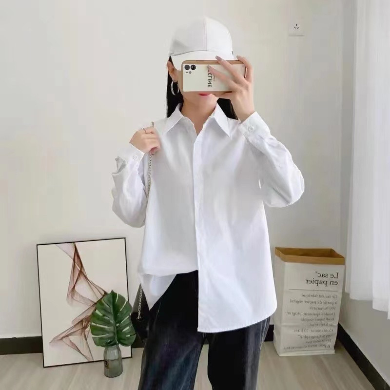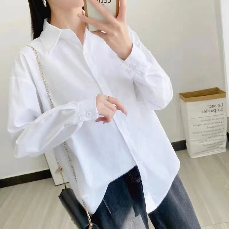 Весенние и осенние топы для женщин 2025 Новые длинные рукава белая рубашка Женский дизайн Нишевая летняя свободная внутренняя рубашка