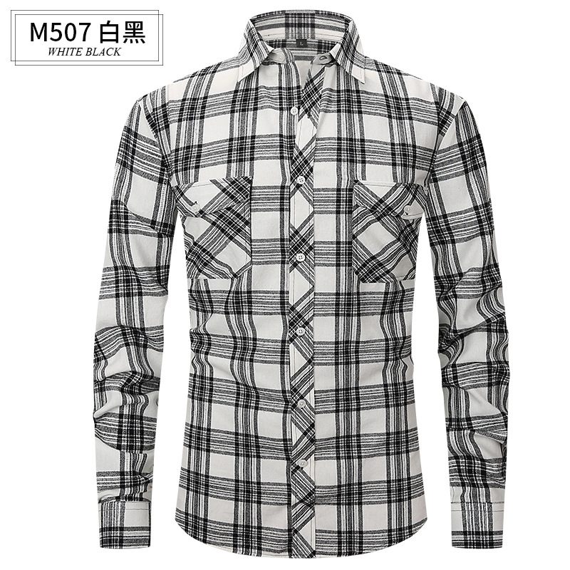 Новая повседневная рубашка в клетку с длинными рукавами, мужская рубашка с двумя карманами и двойной крышкой, мужская красная и черная большая клетчатая свободная подкладка большого размера