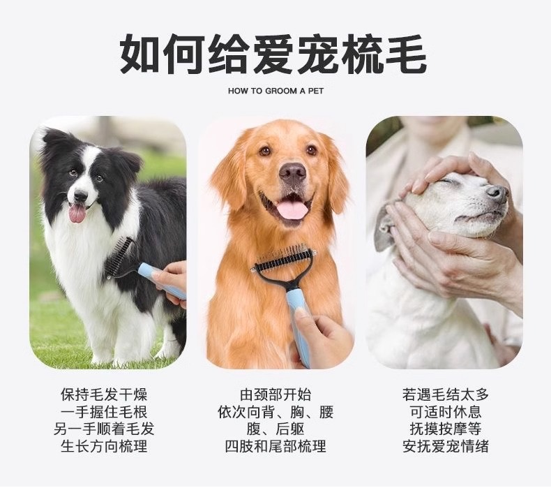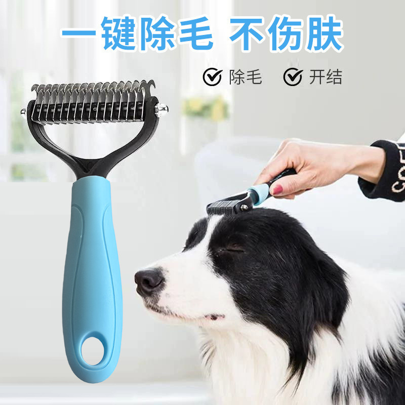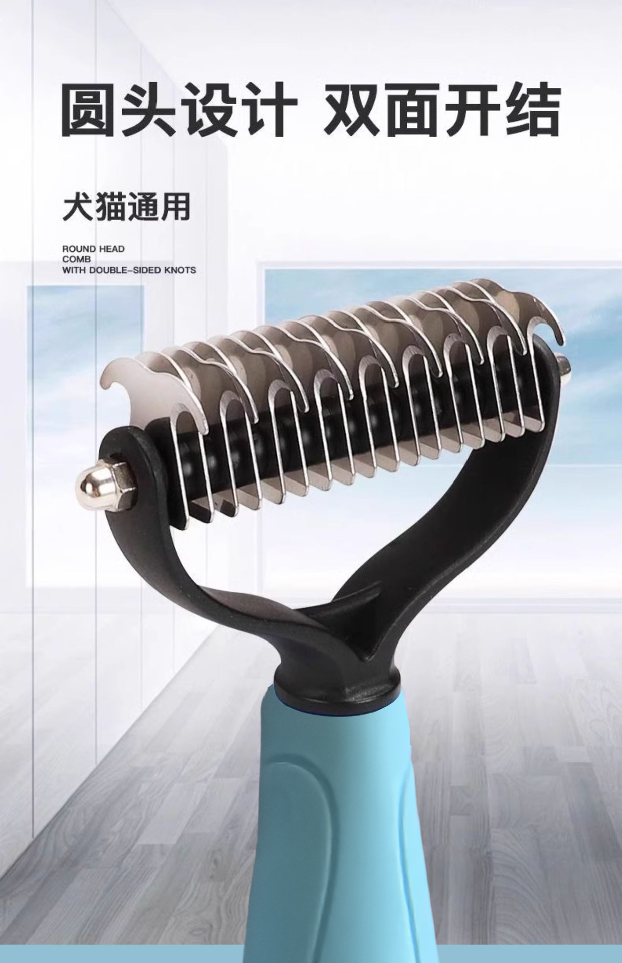 Синяя двусторонняя расческа для завязывания узлов для домашних животных; Розовая двусторонняя расческа для завязывания узлов для домашних животных