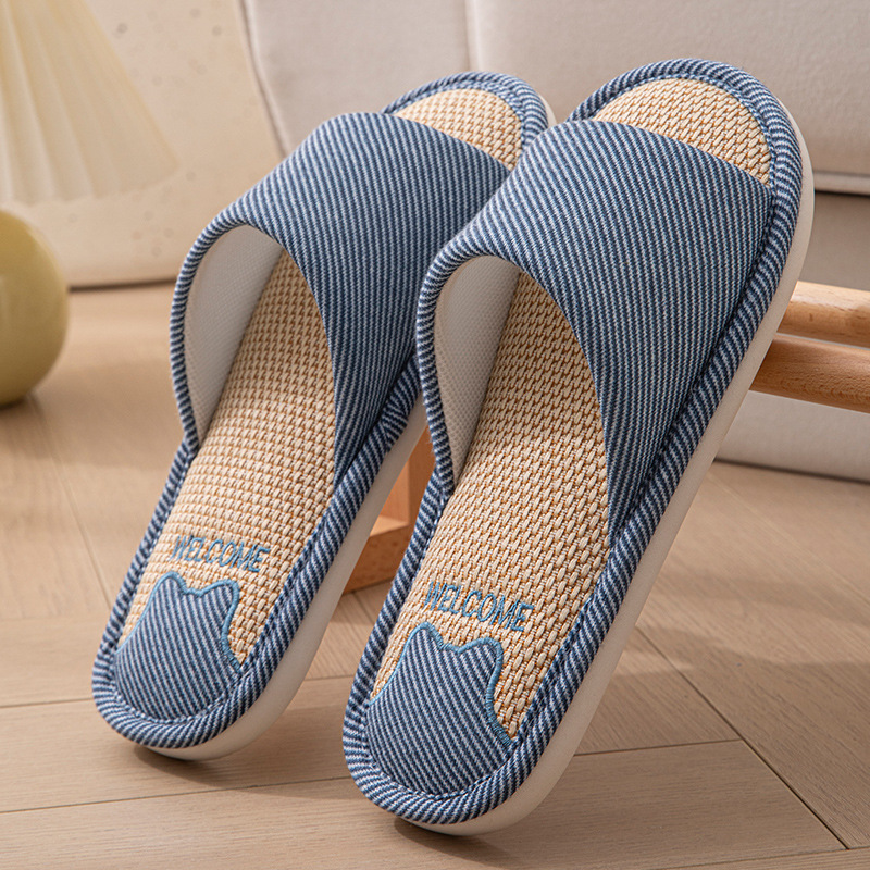 Японские льняные тапочки, семейный портрет, круглый год, нескользящие домашние тапочки с дезодорантом для пар, бесшумные домашние тапочки из хлопка и льна, мужские летние