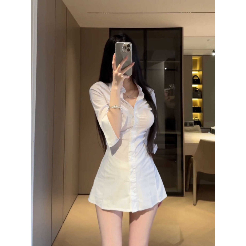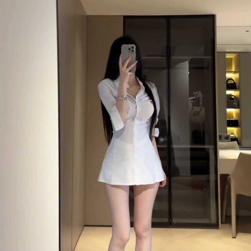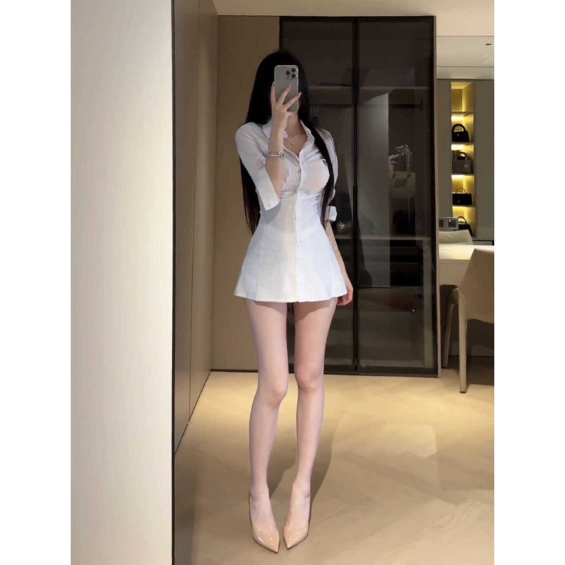 Pure Desire Royal Sister тонкая плиссированная сексуальная рубашка с лацканами короткая юбка женское платье средней длины с дизайном талии для горячих девушек