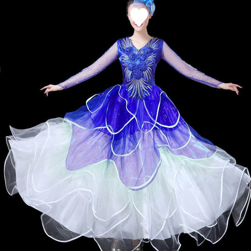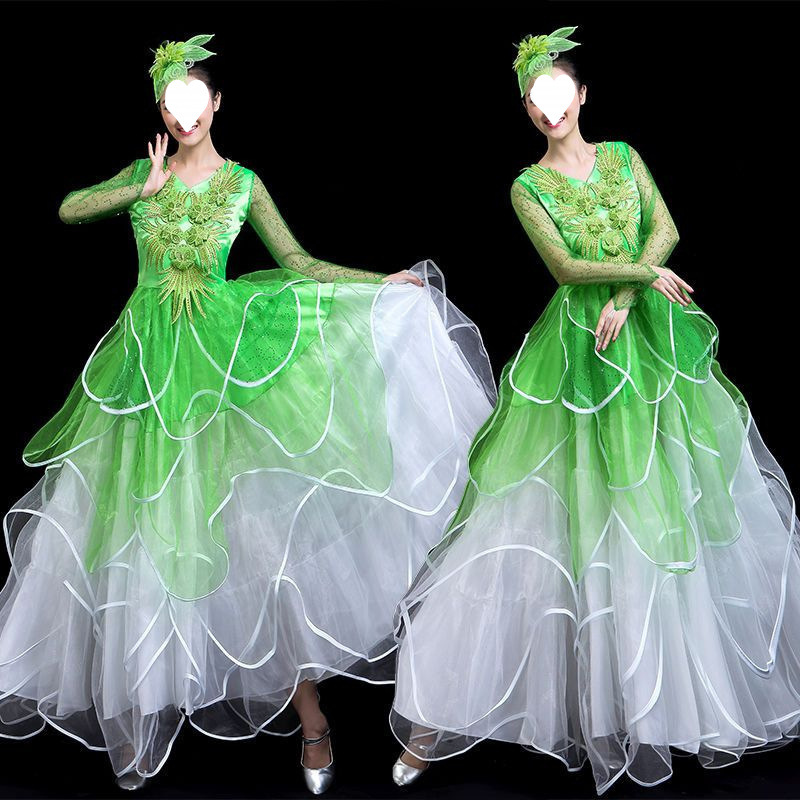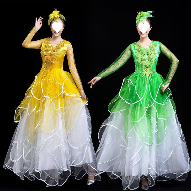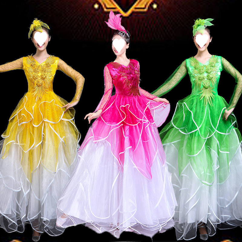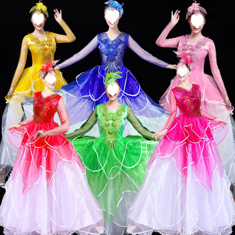 Костюмы для выступлений, большие танцевальные костюмы, национальные костюмы, новинка 2021 года, длинная юбка, современная юбка для хора, открывающая танец, качели