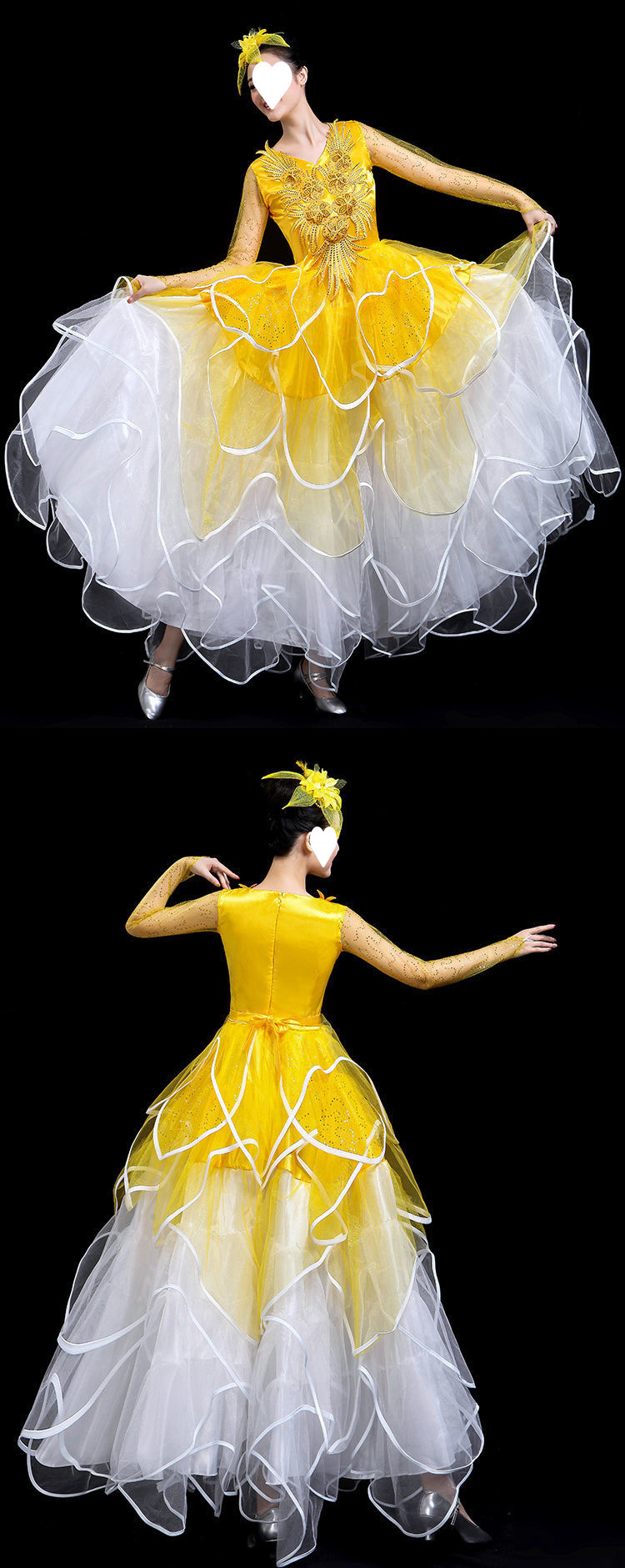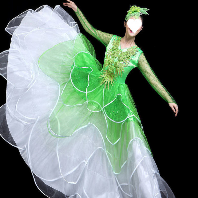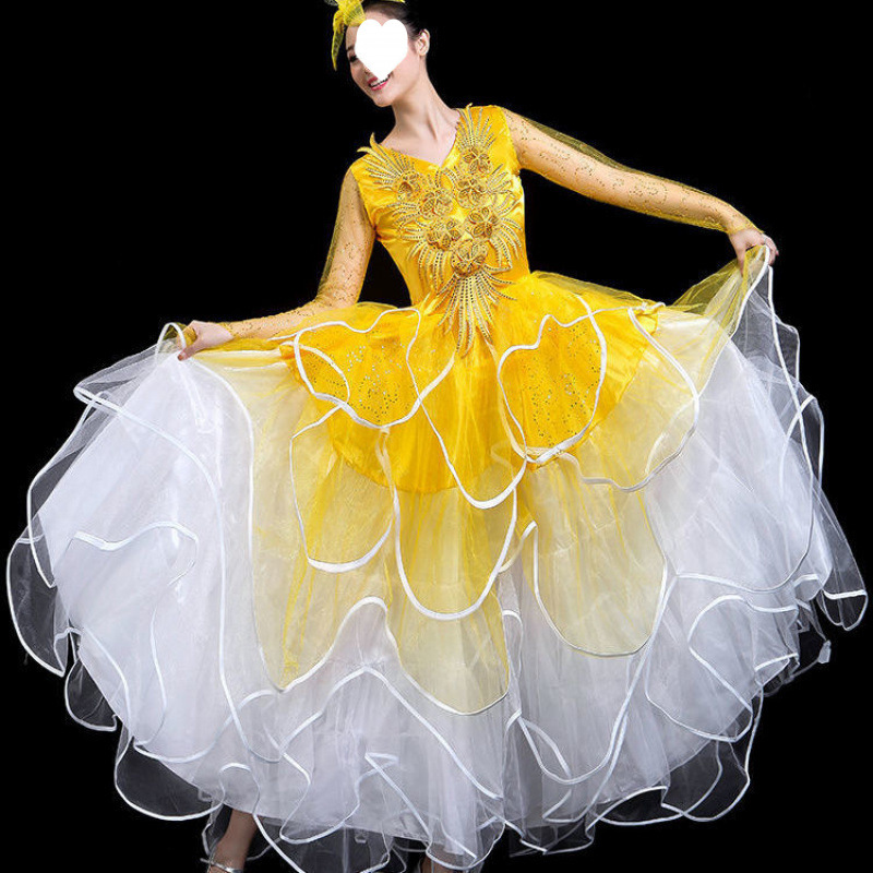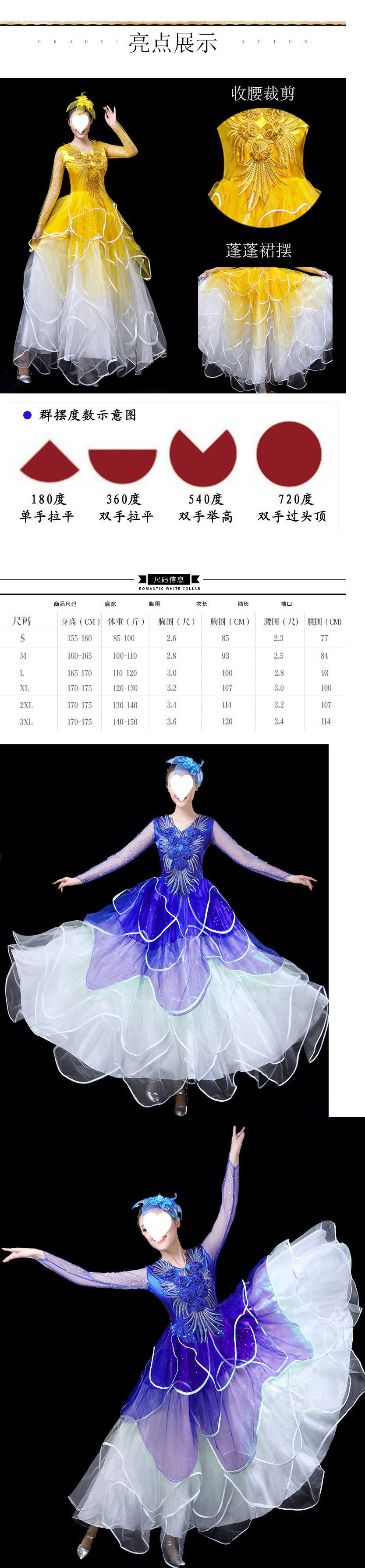 Костюмы для выступлений, большие танцевальные костюмы, национальные костюмы, новинка 2021 года, длинная юбка, современная юбка для хора, открывающая танец, качели