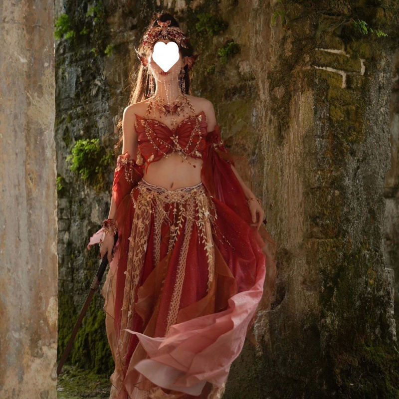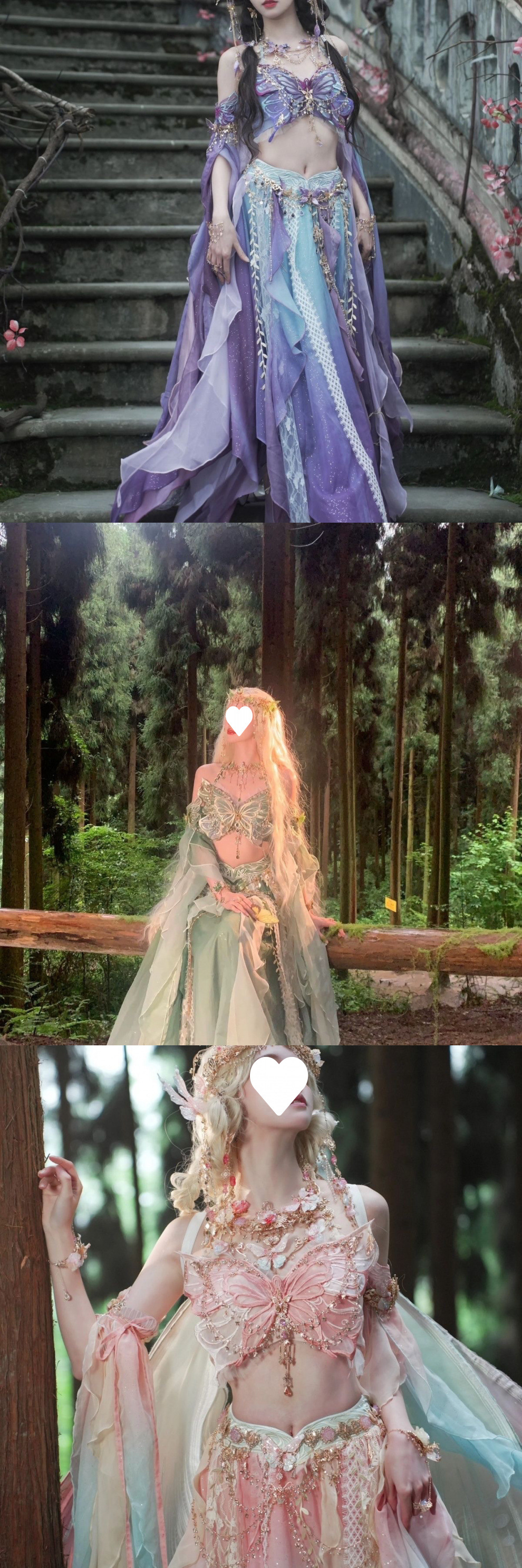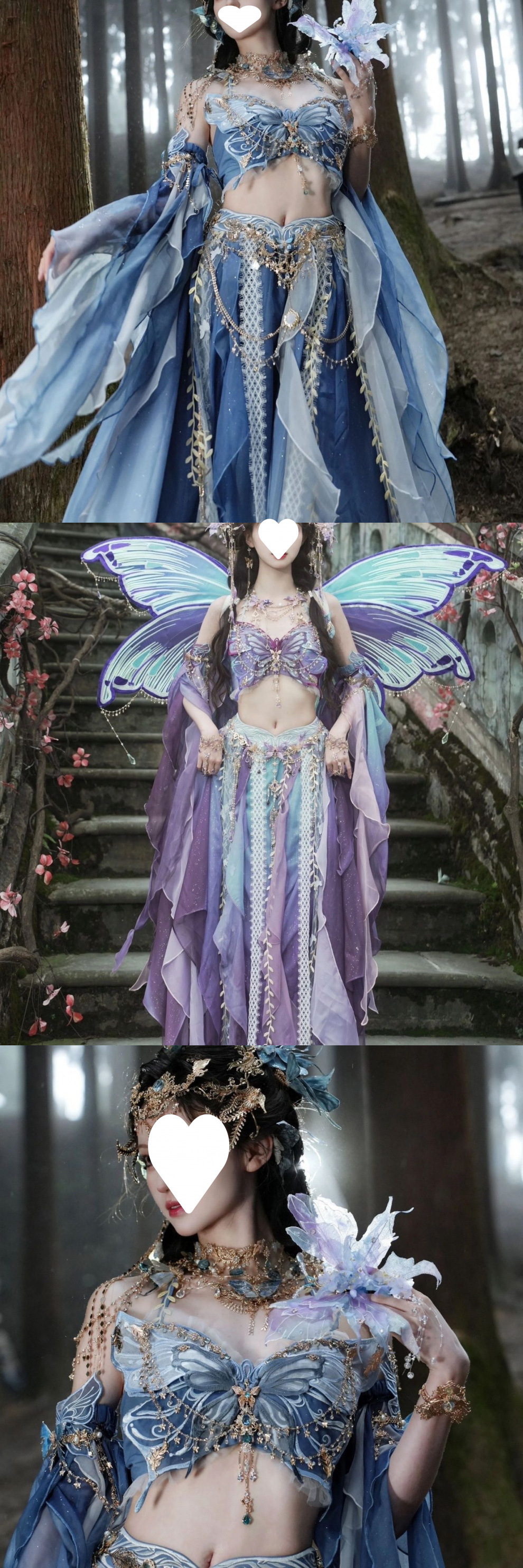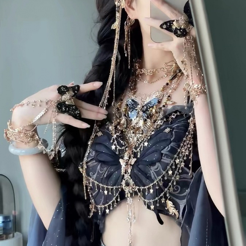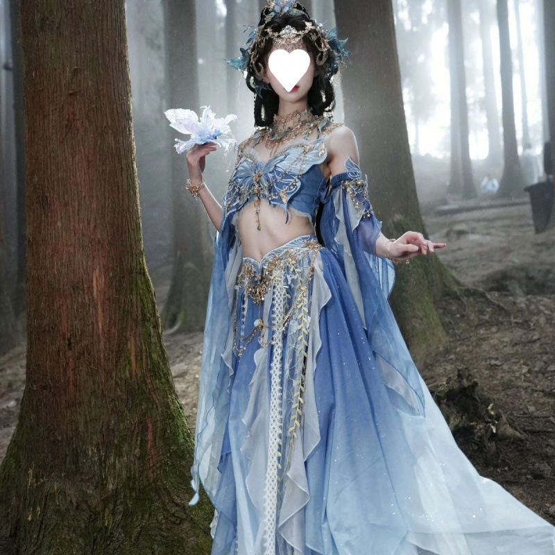 Летний комплект ханьфу 2025 года, оригинальный дизайн, бабочка, западный регион, девочка, экзотическая тяжелая вышивка, градиентный принт, фея, этнический стиль