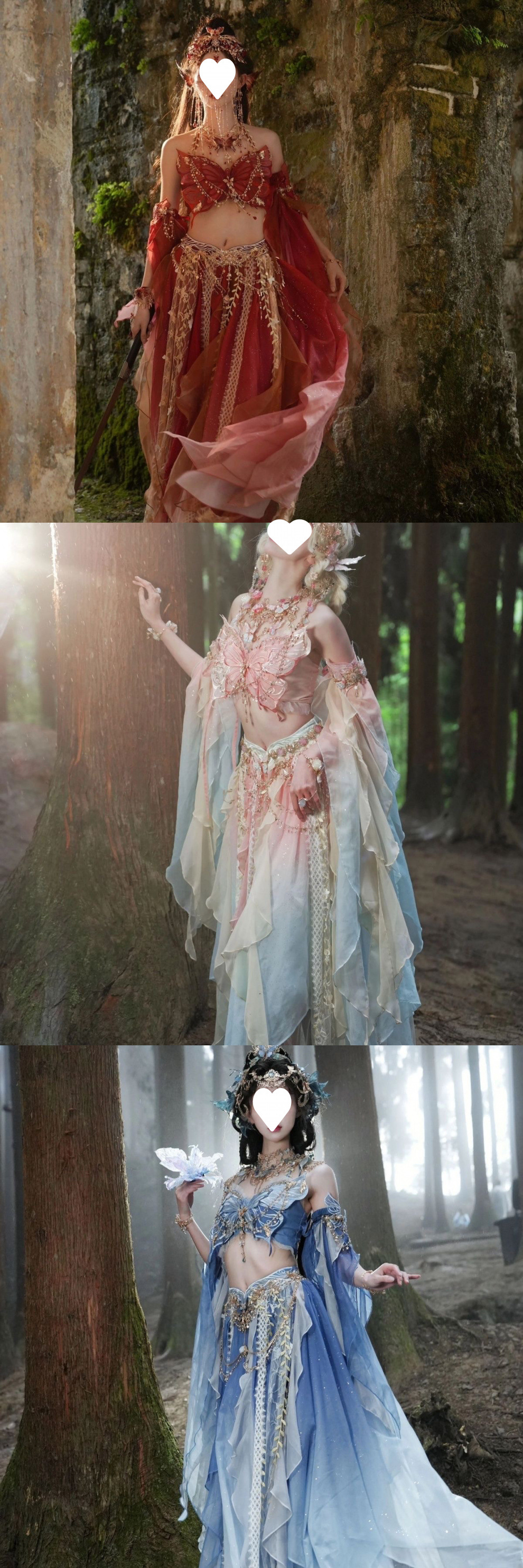 Синий топ + юбка + рукава с перьями + аксессуары для топа; Красный топ + юбка + рукава с перьями + аксессуары для топа; Фиолетовый топ + юбка + рукава с перьями + аксессуары для топа; Розовый топ + юбка + рукава с перьями + аксессуары для топа; Зеленый топ + юбка + рукава с перьями + аксессуары для топа; Черный топ + юбка + рукава с перьями + аксессуары для топа